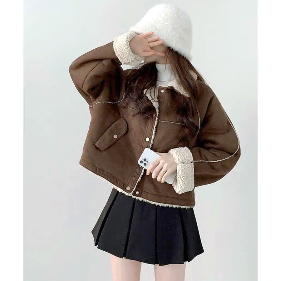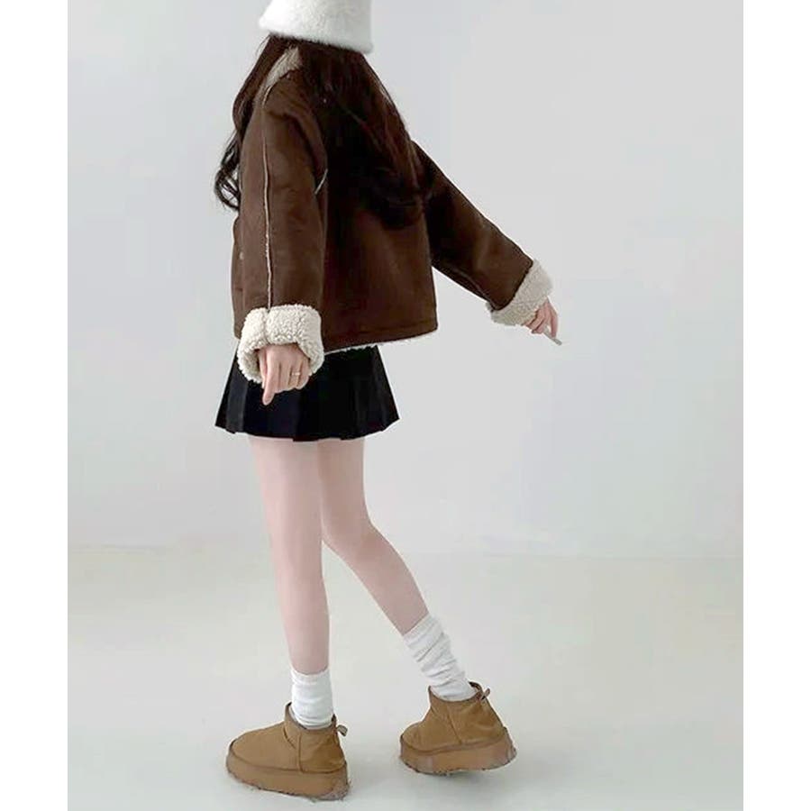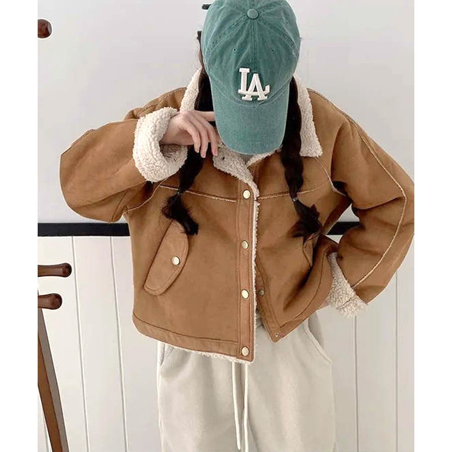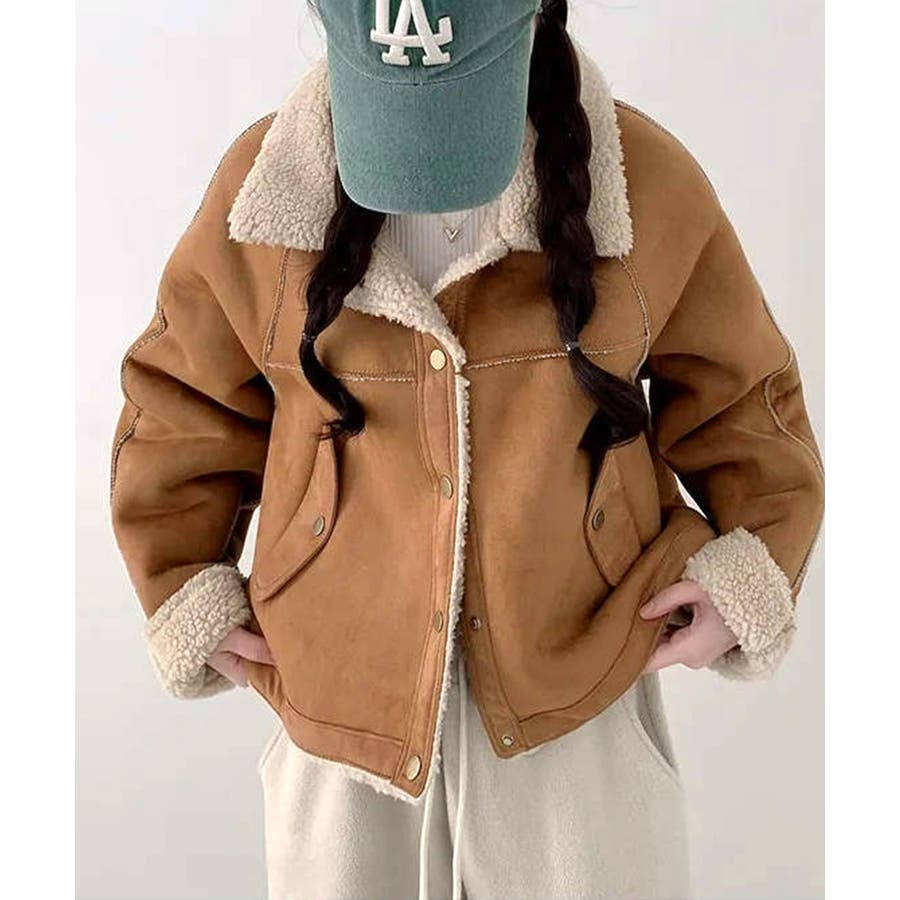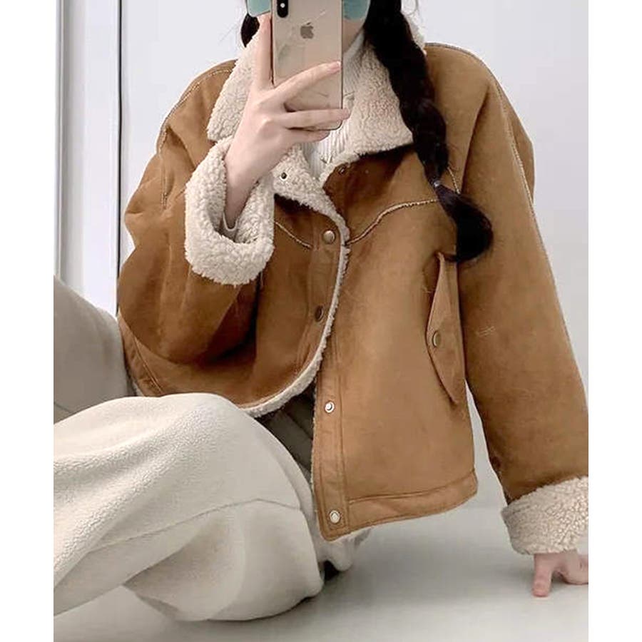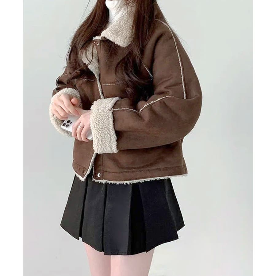 ・やわらかなフェイクムートンにボア裏地を合わせた、シーズンムード溢れるジャケット。