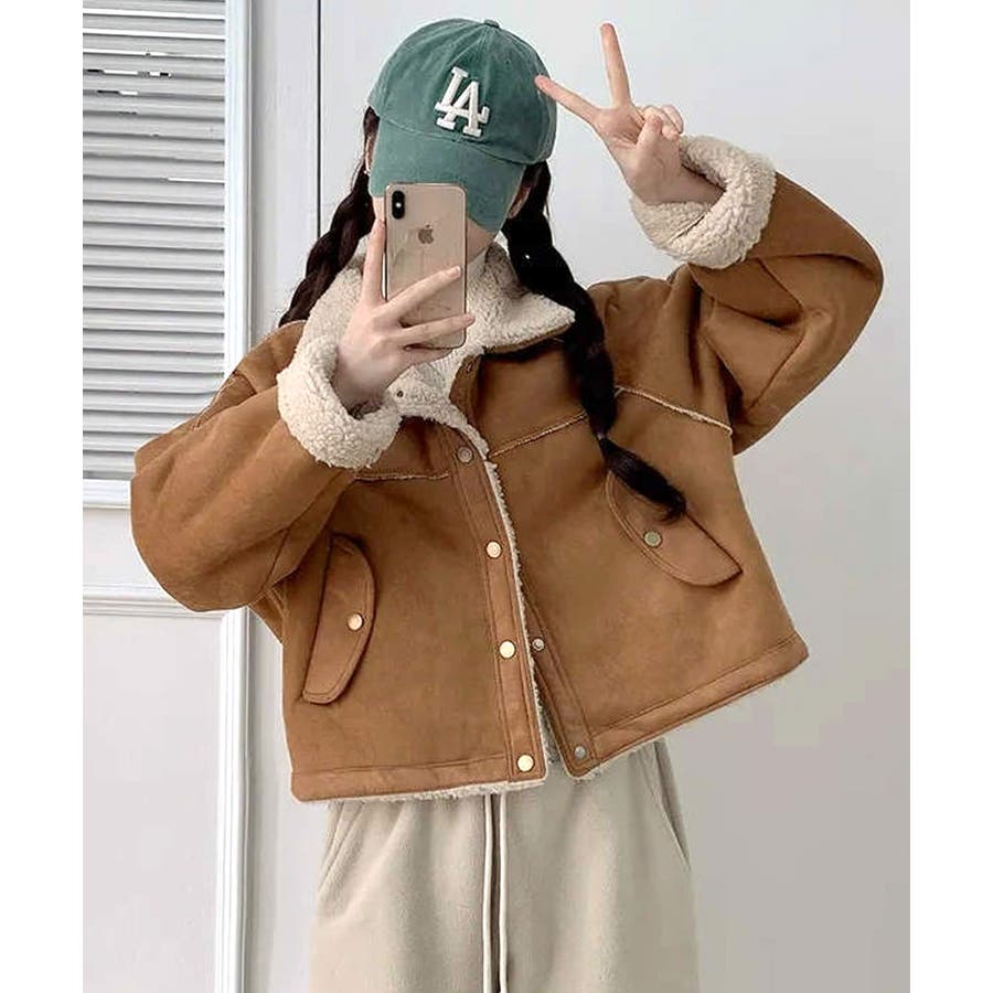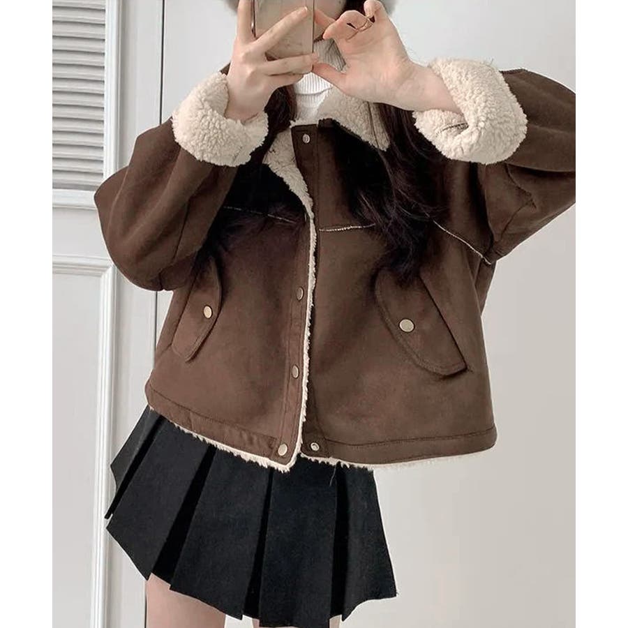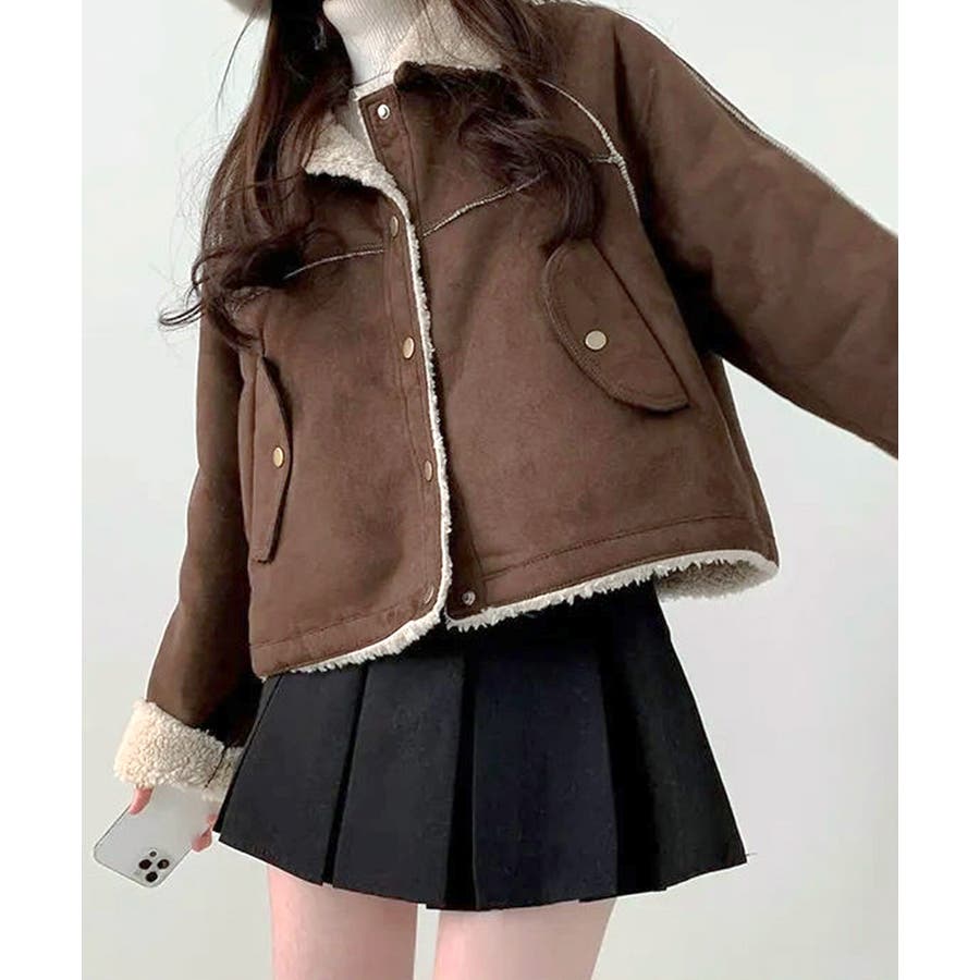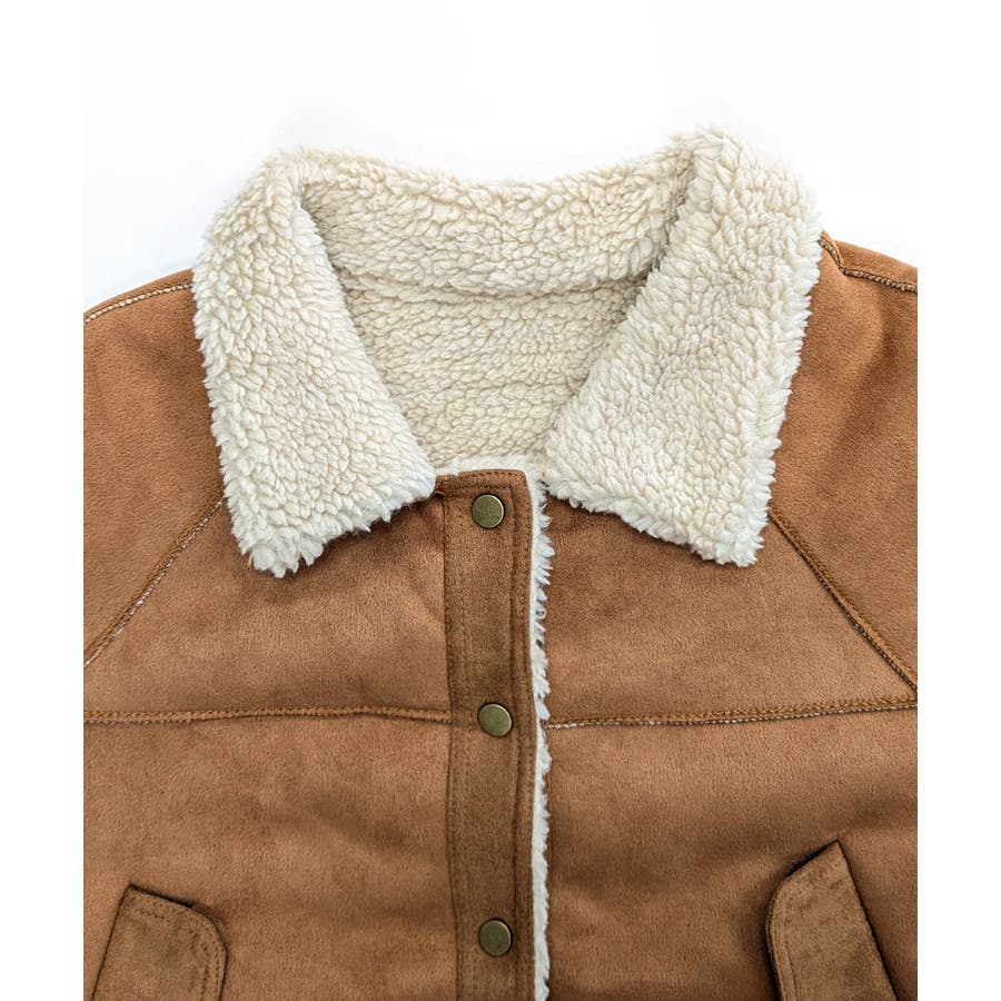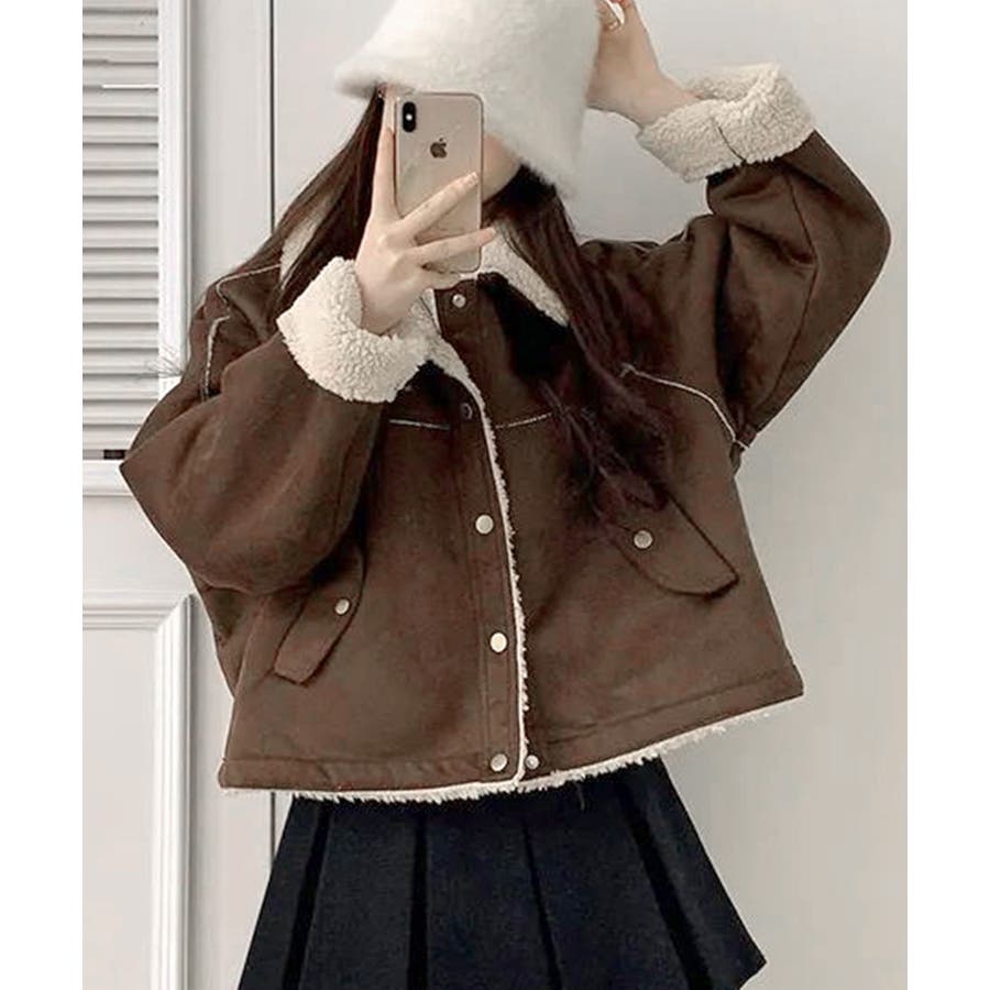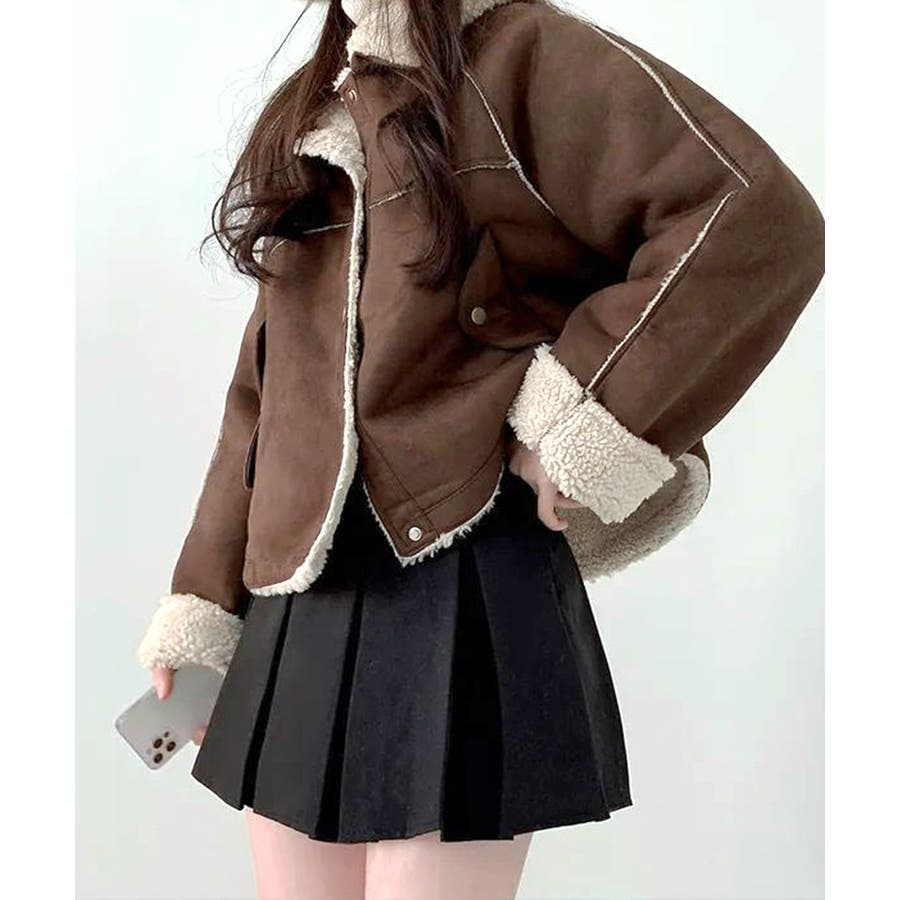 ・やわらかなフェイクムートンにボア裏地を合わせた、シーズンムード溢れるジャケット。