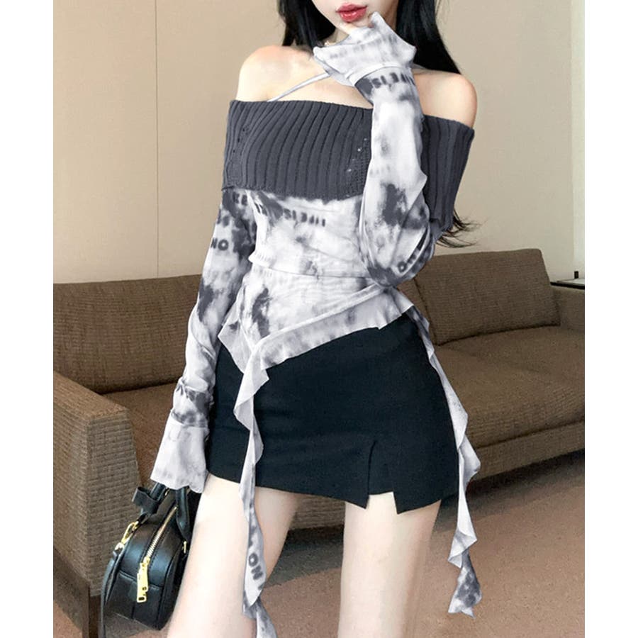 ・フリル付きイレギュラーヘムがレディな雰囲気。