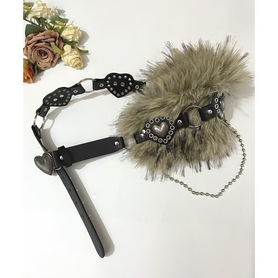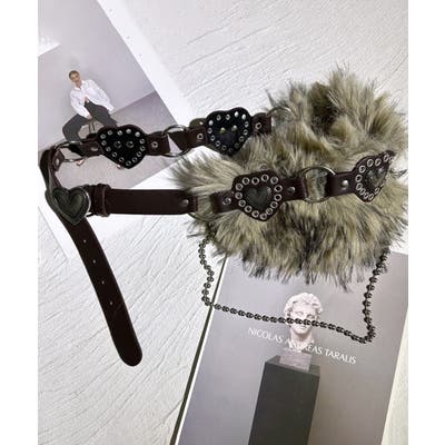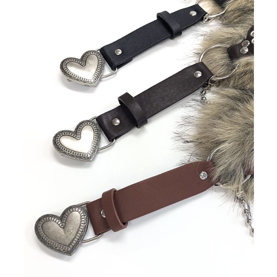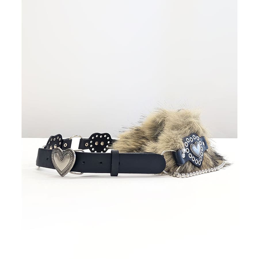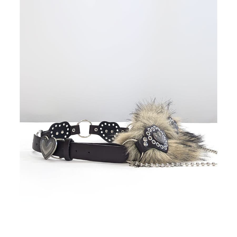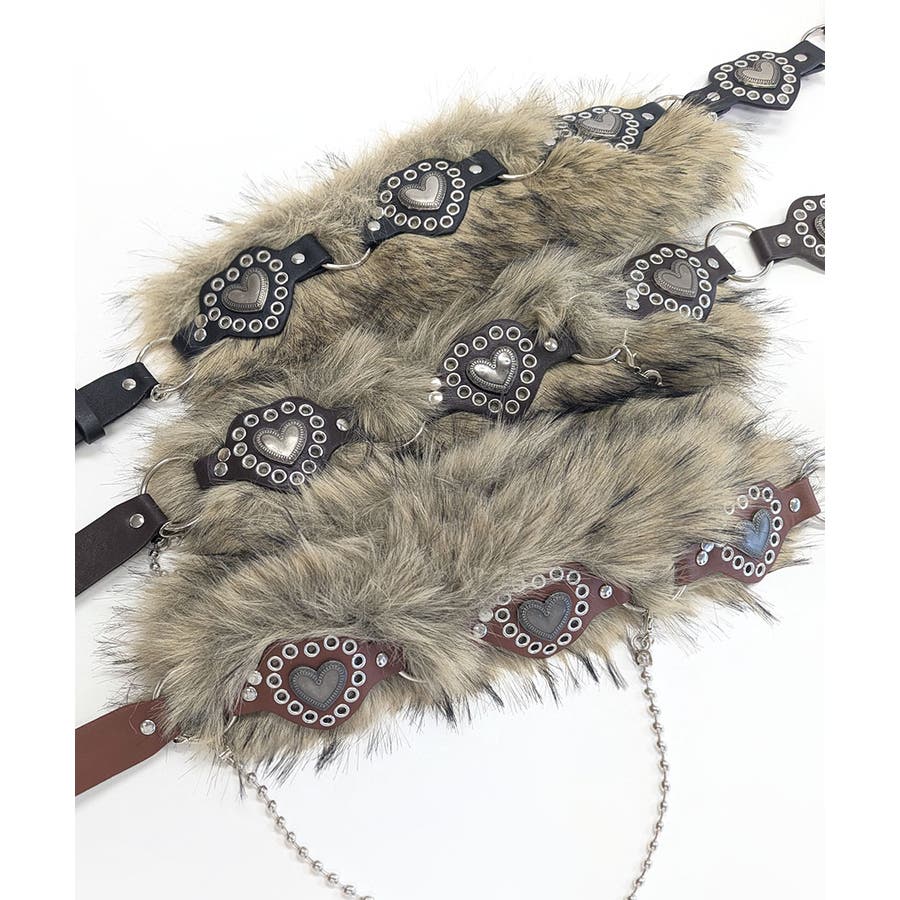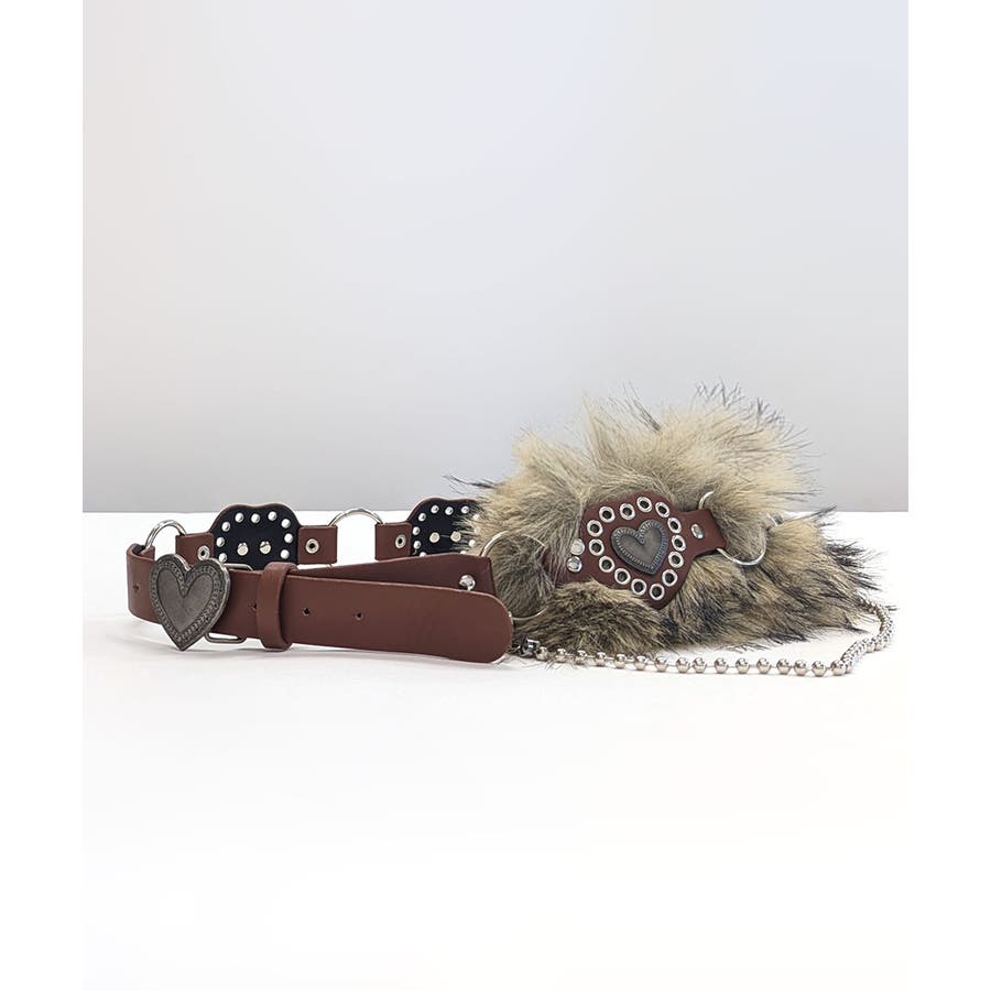 ハートバックルチェーン付きファーベルト
