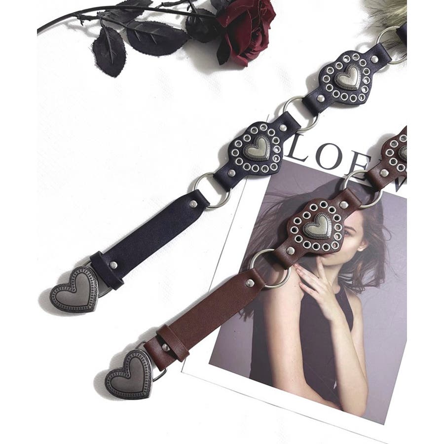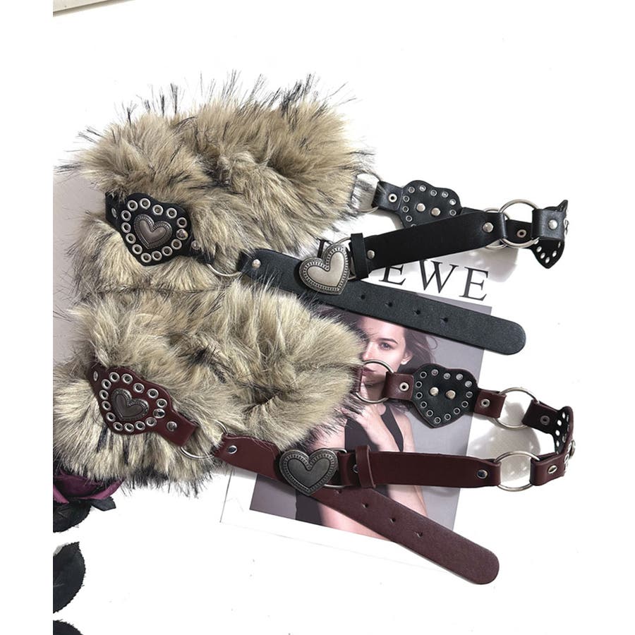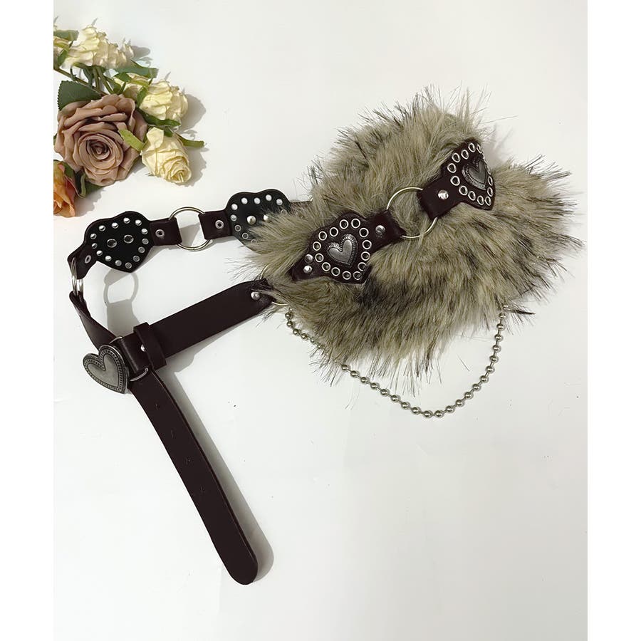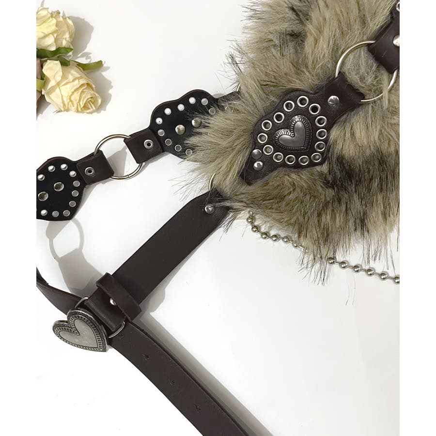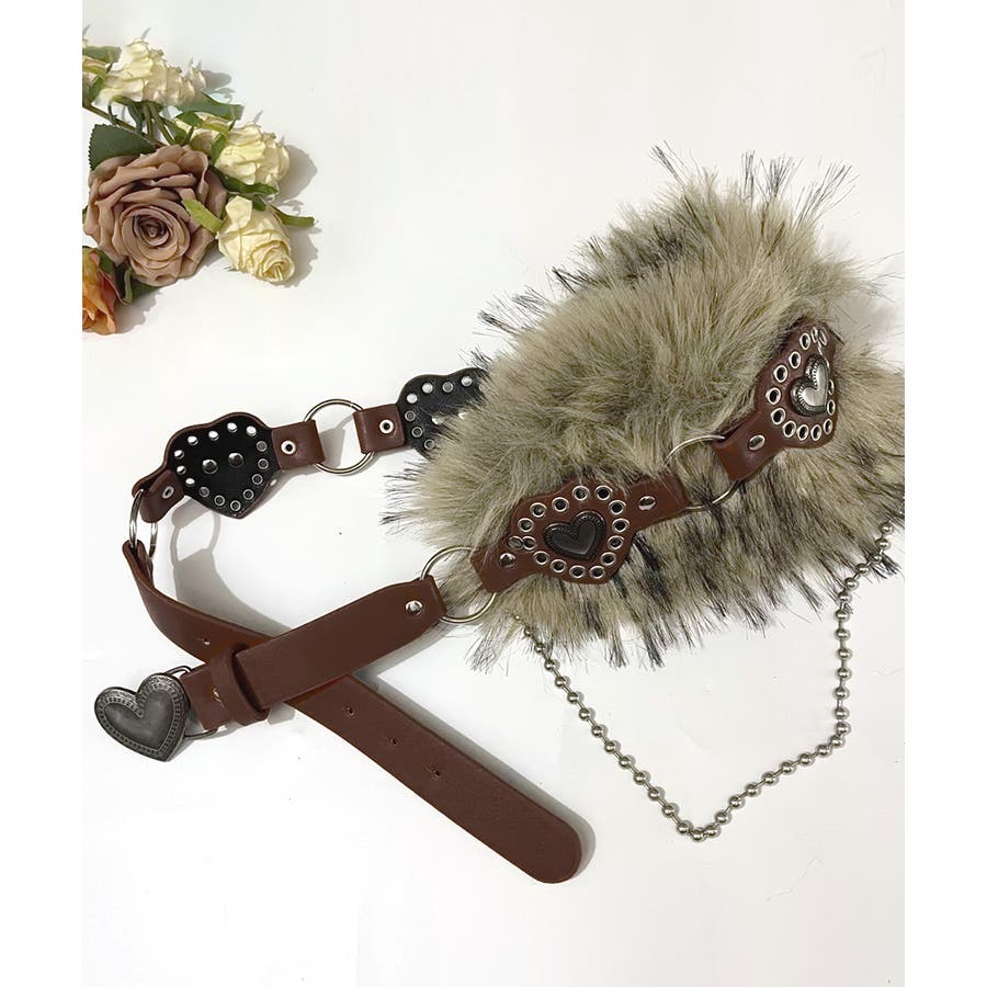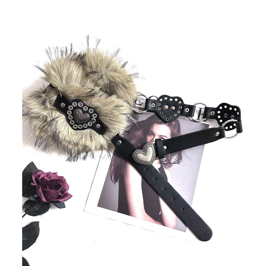 ハートバックルチェーン付きファーベルト