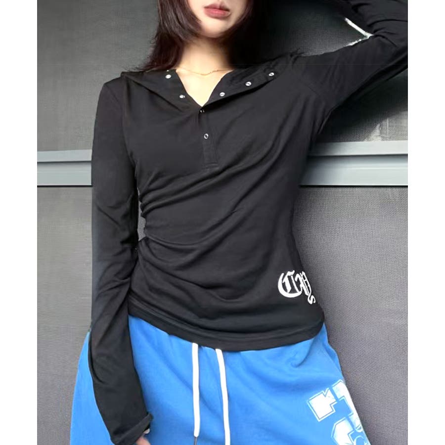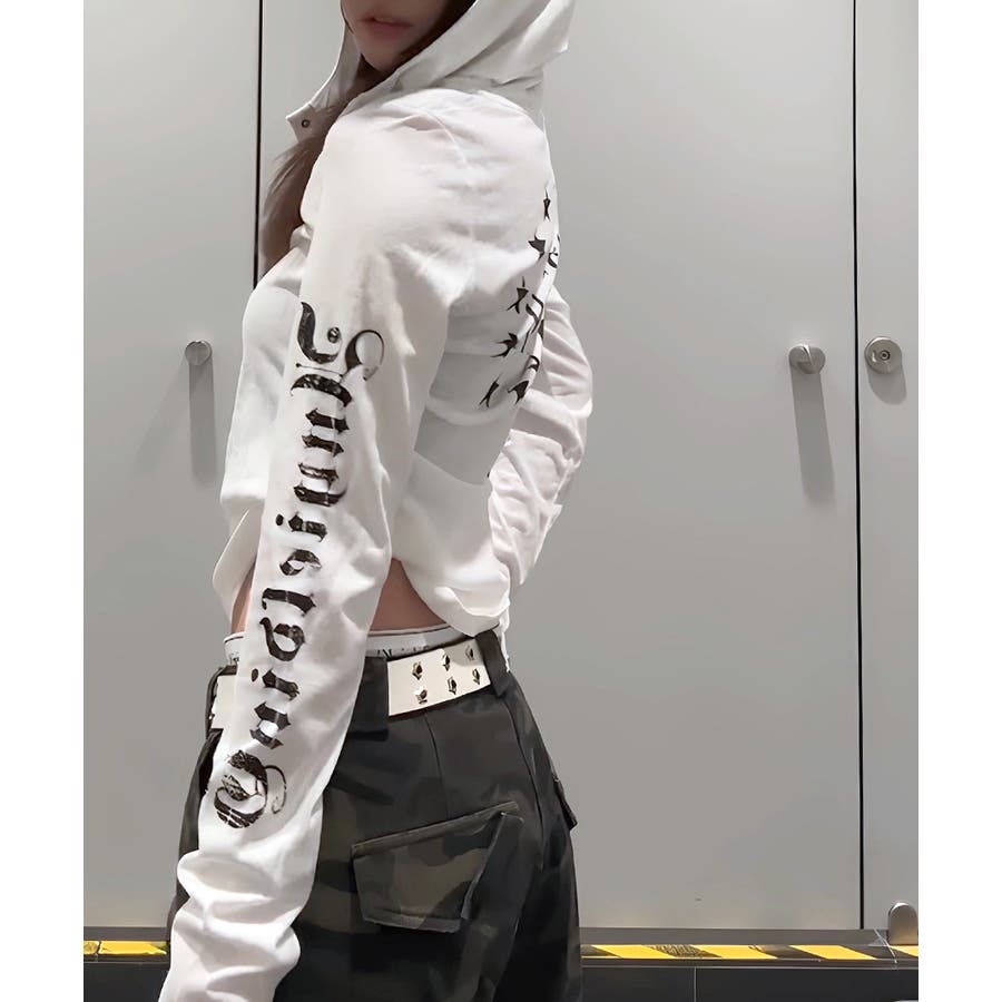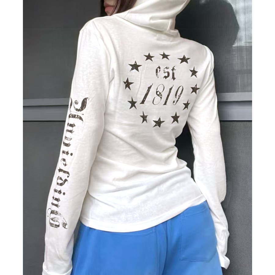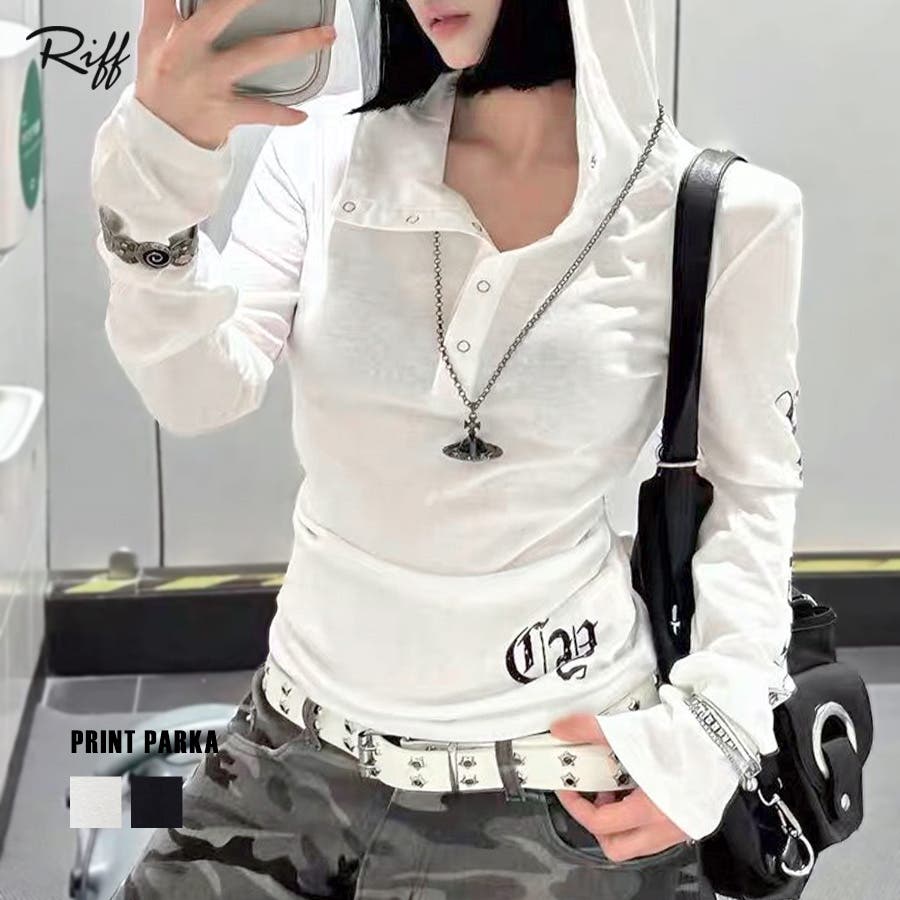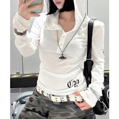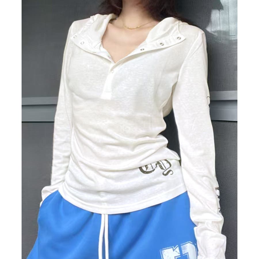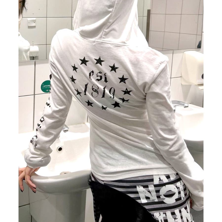 フード付き袖ロゴプリントパーカー ロンT 薄手パーカー