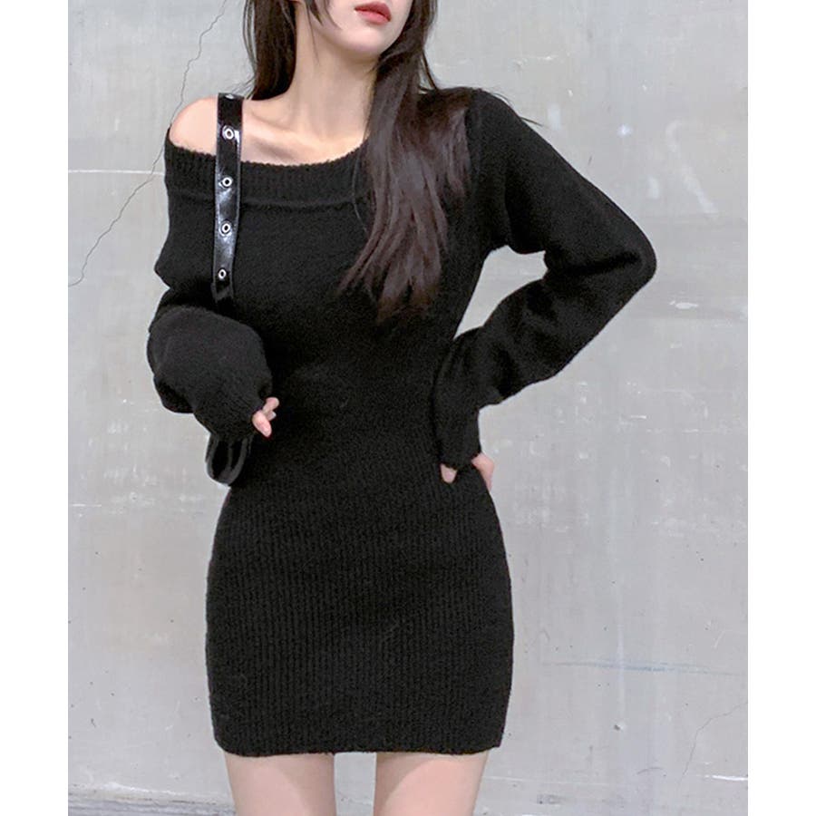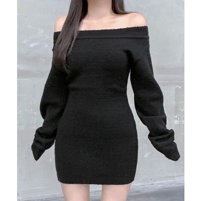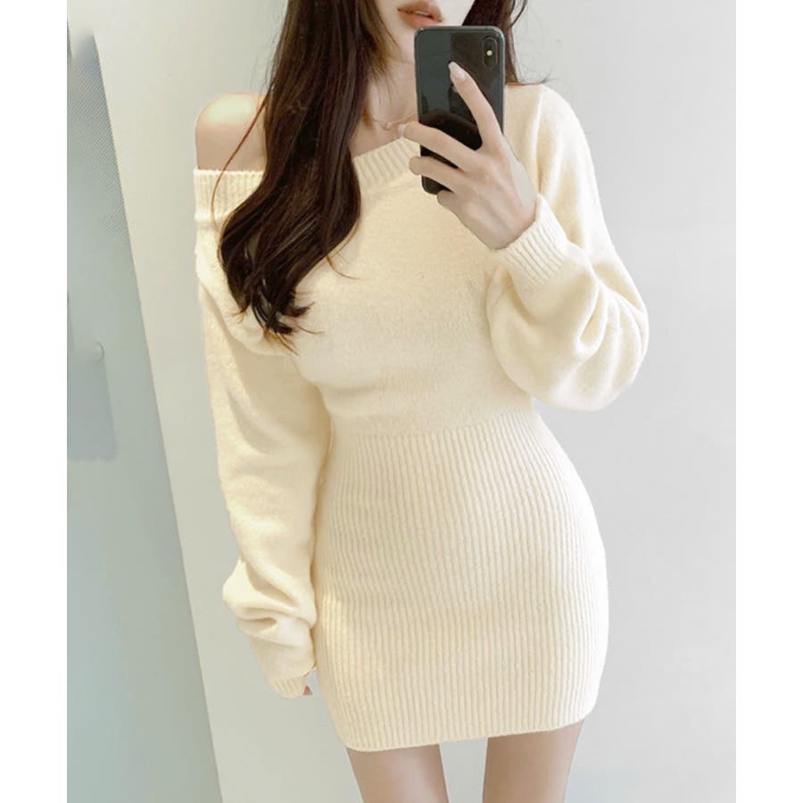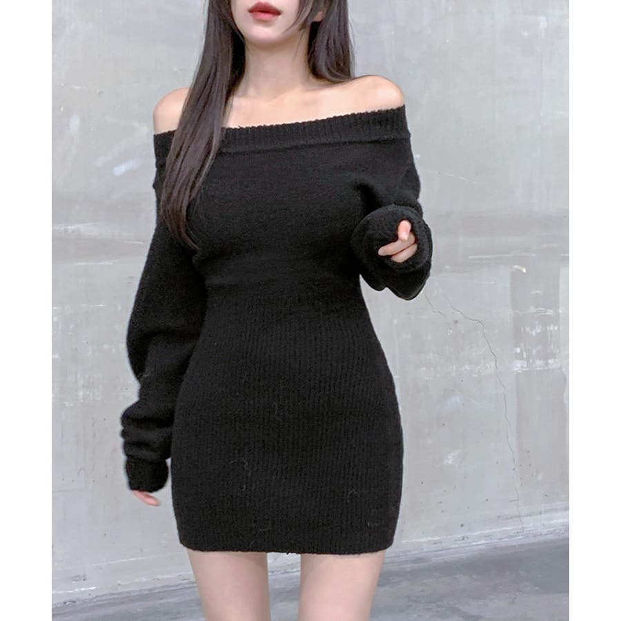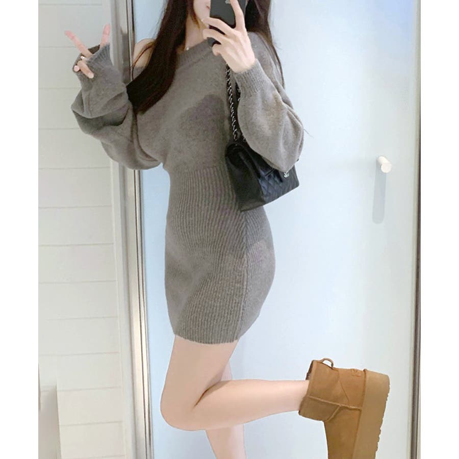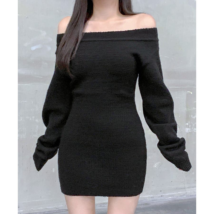 程よい肌見せが叶うワンショルニットミニワンピース。