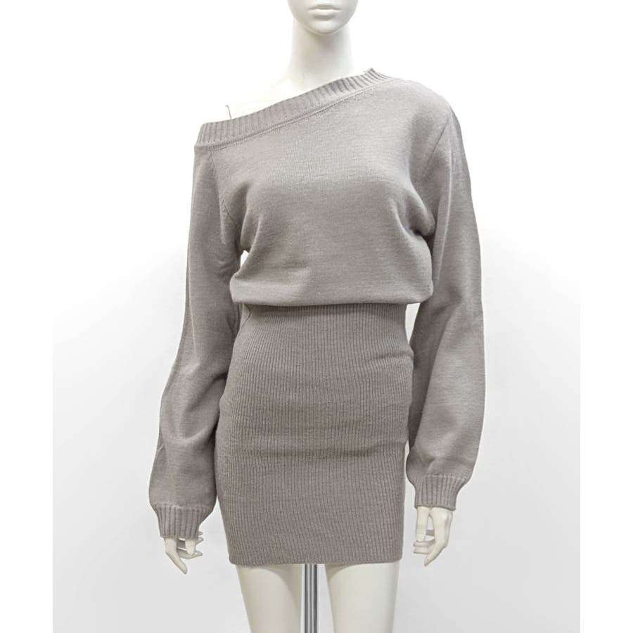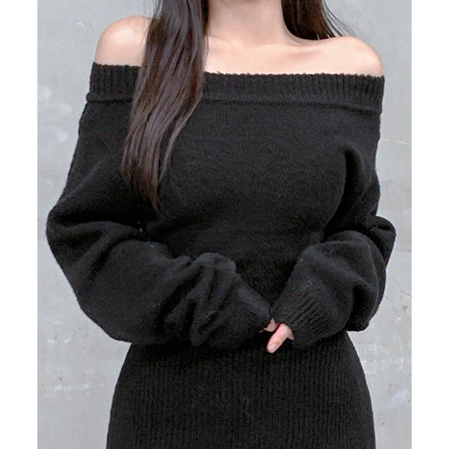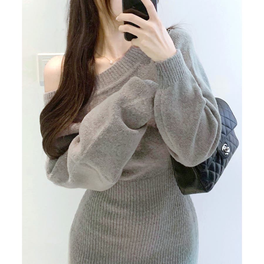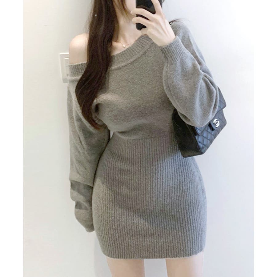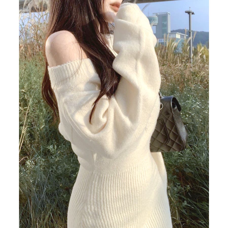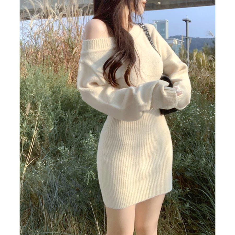 程よい肌見せが叶うワンショルニットミニワンピース。