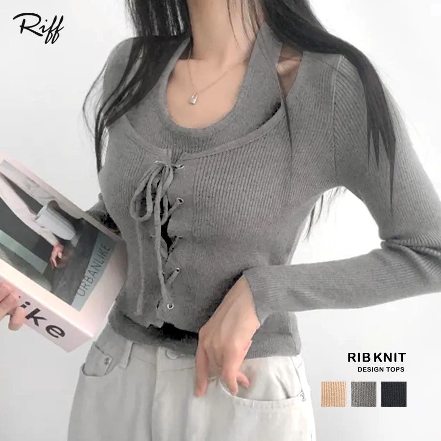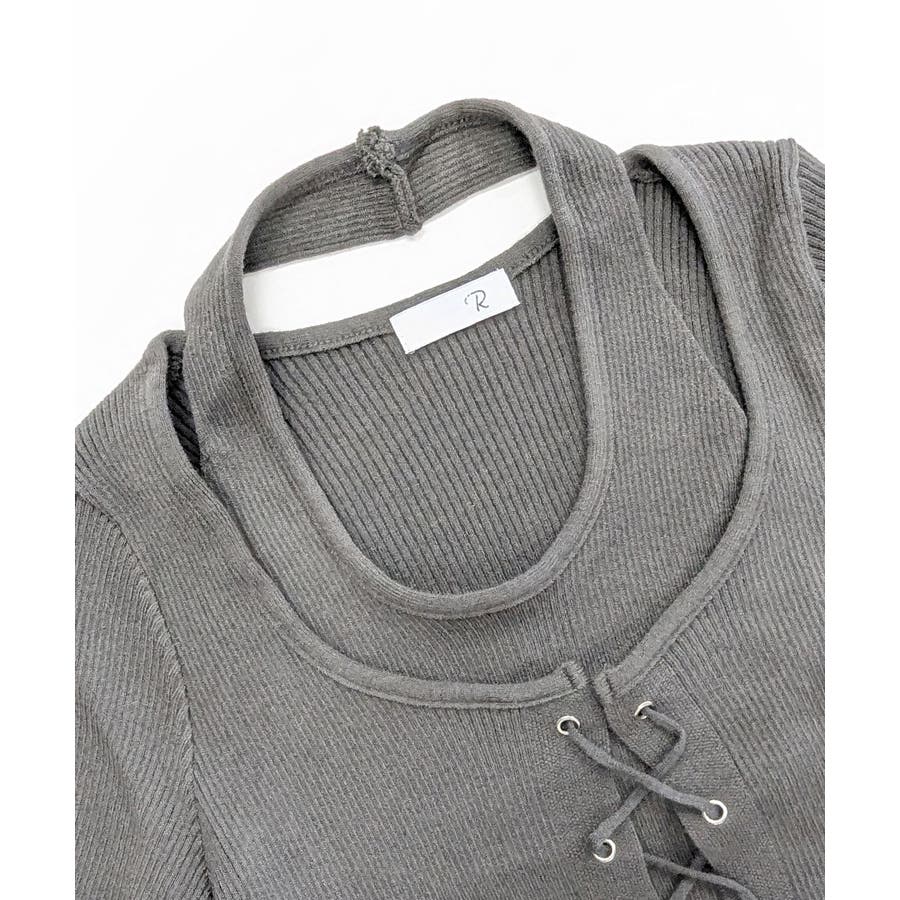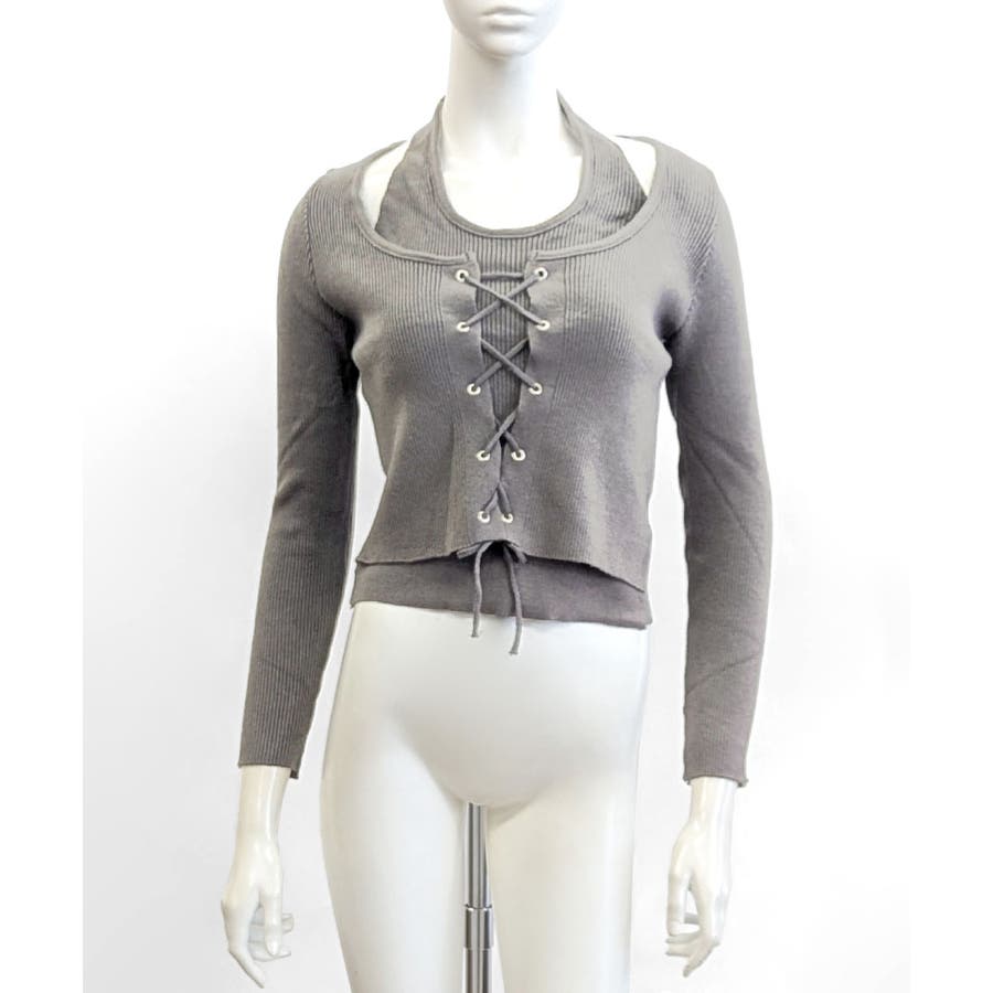 レースアップリブニット