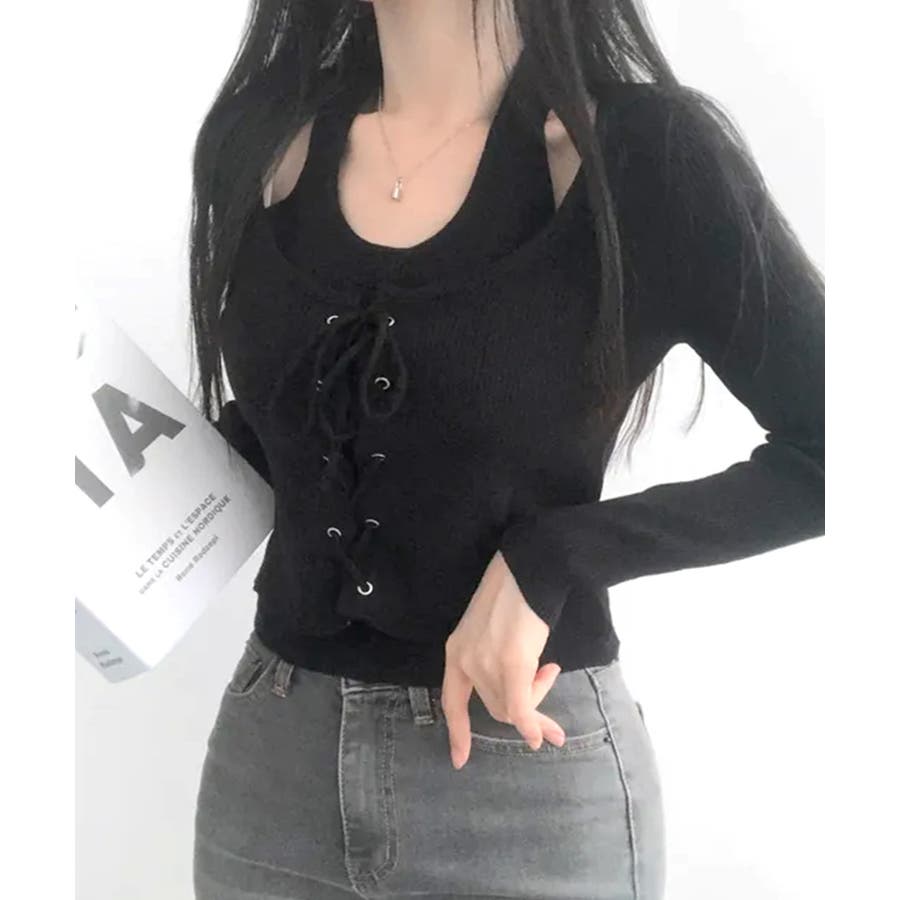タンクトップ×ニットを重ねたようなレイヤード風トップス。