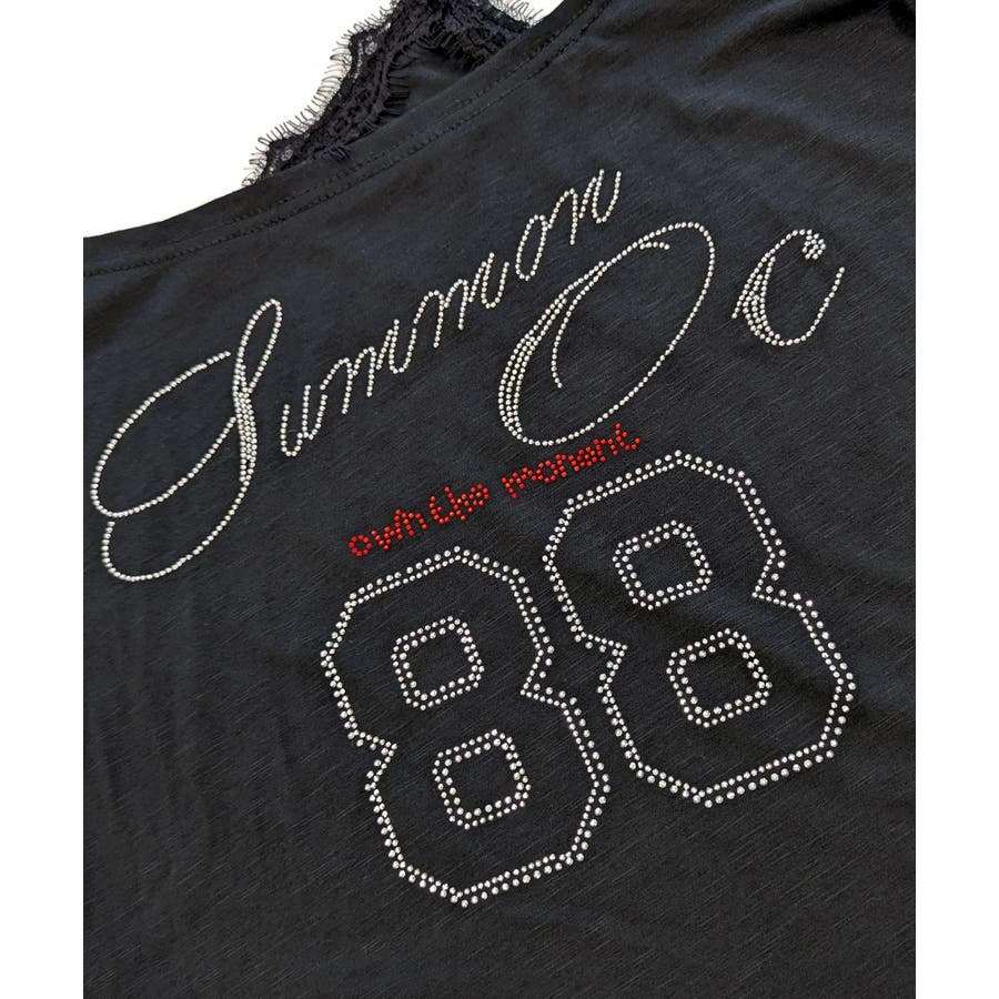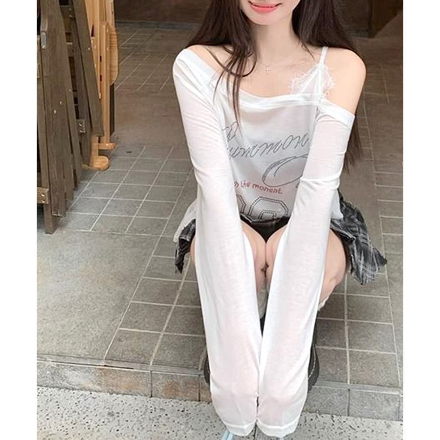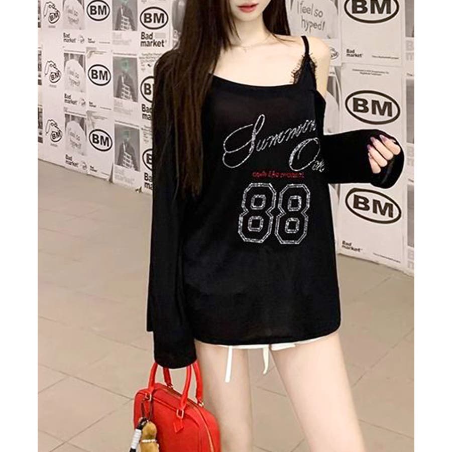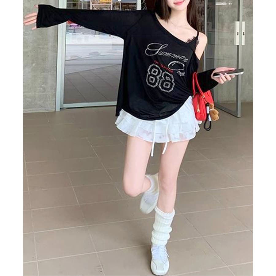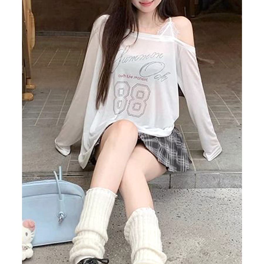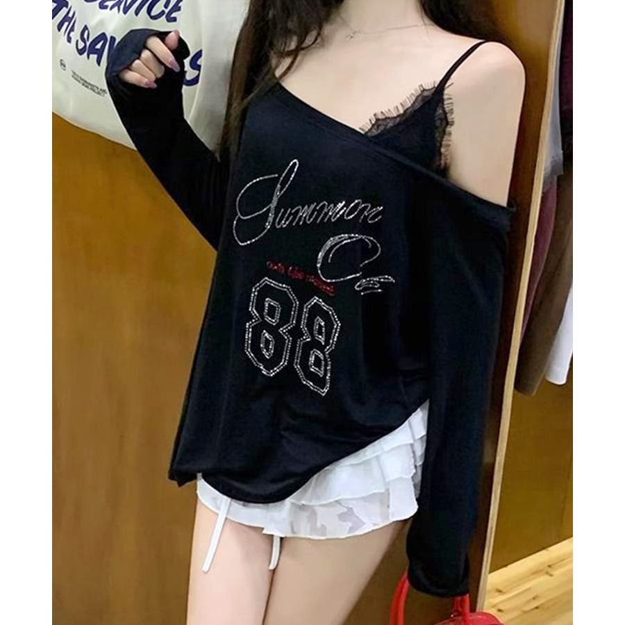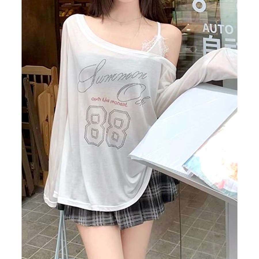 ラインストーンロゴワンショルダーロンT ドッキング レイヤード