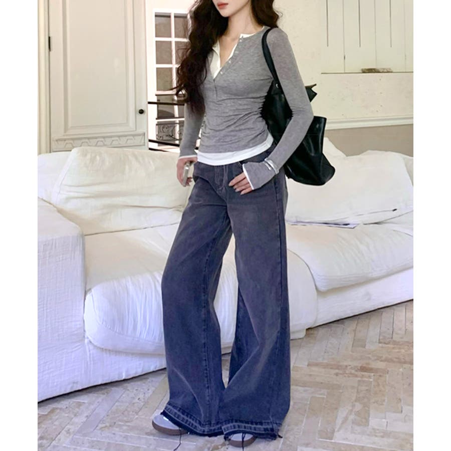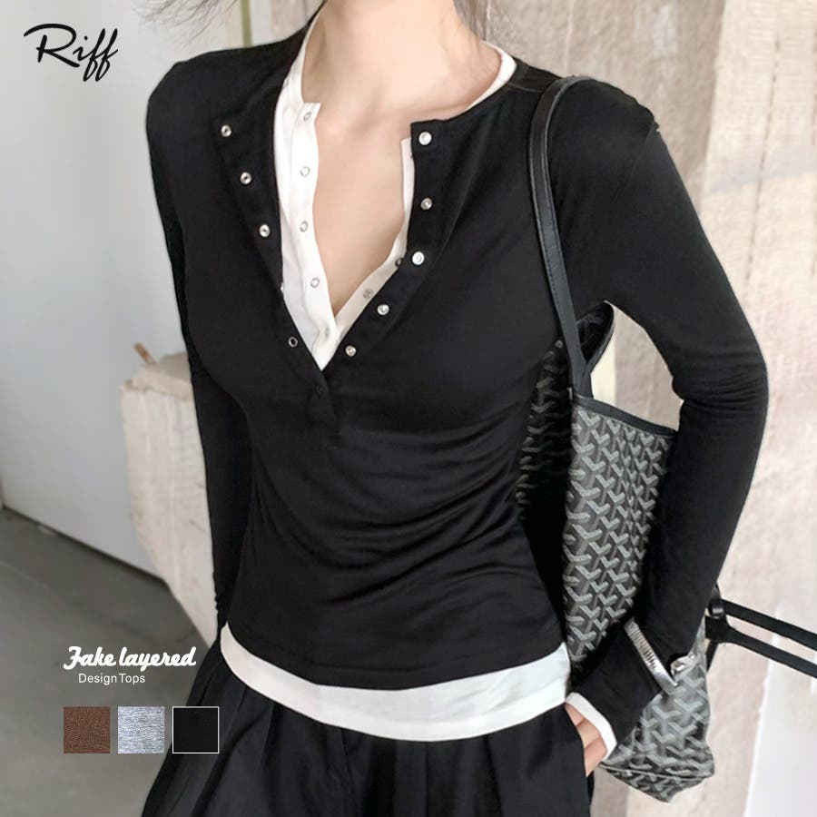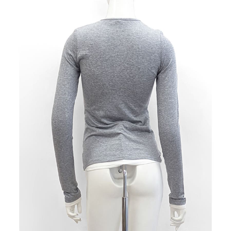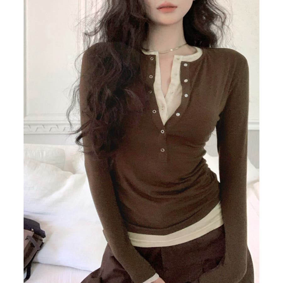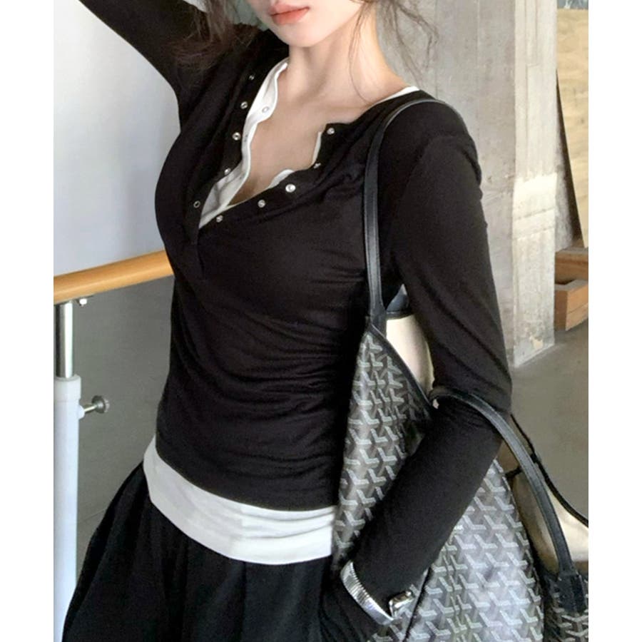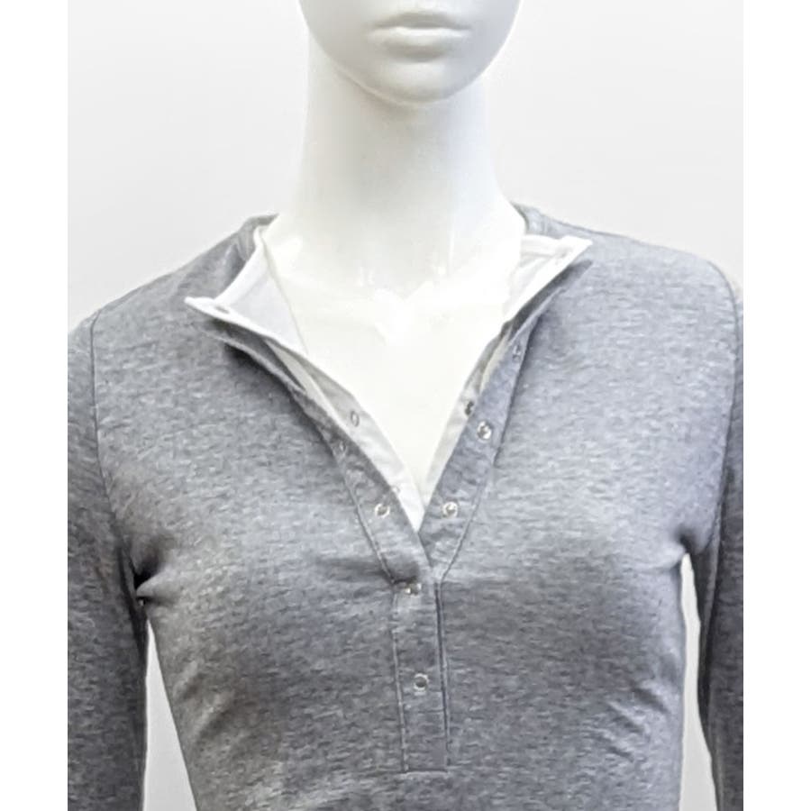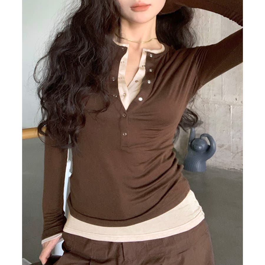 ヘンリーネックレイヤード風トップス フェイクレイヤード ドッキング