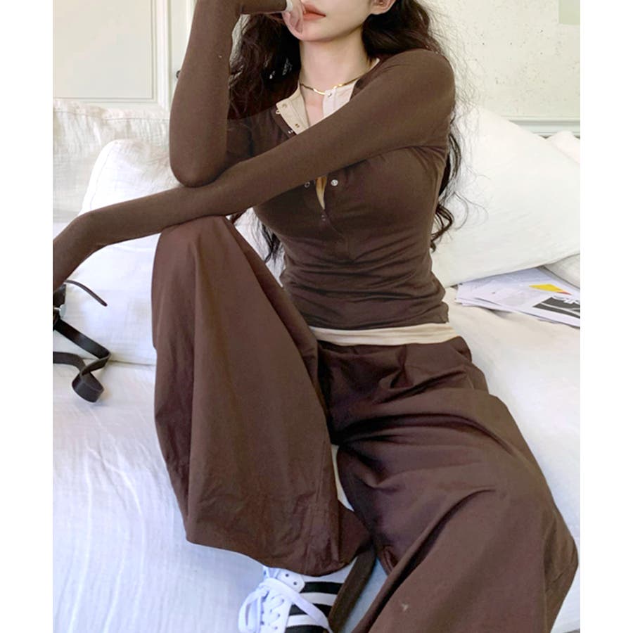 ヘンリーネックレイヤード風トップス