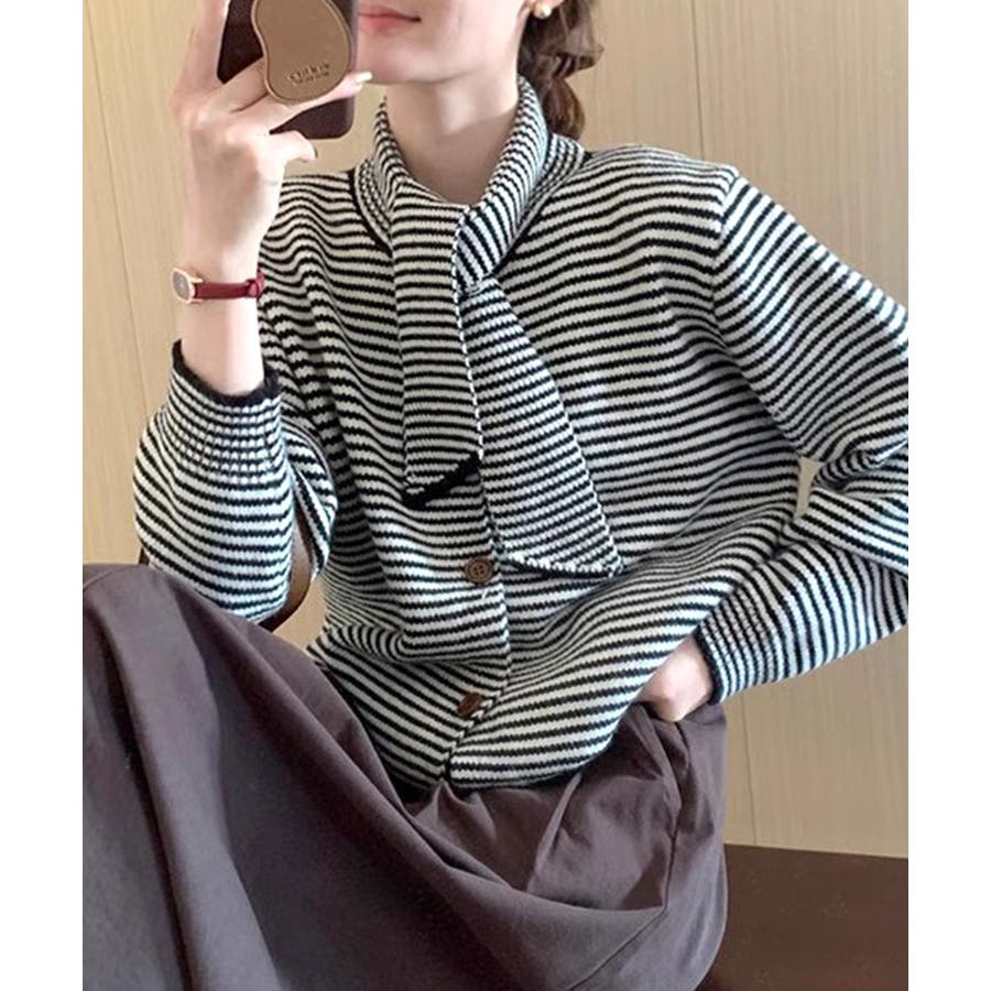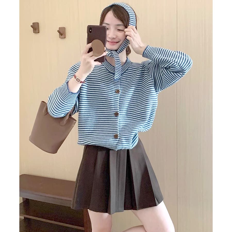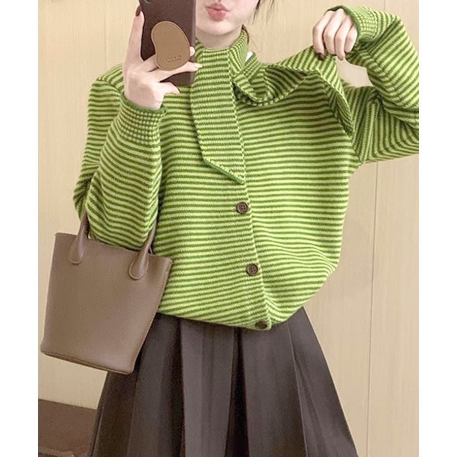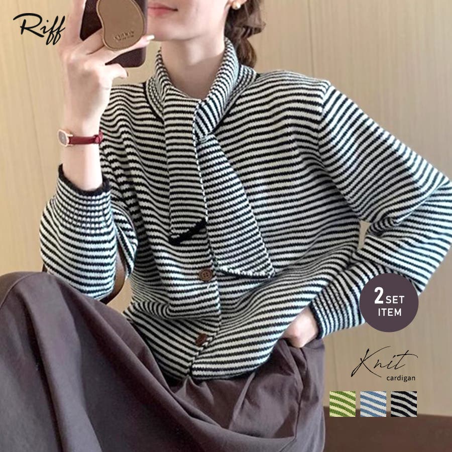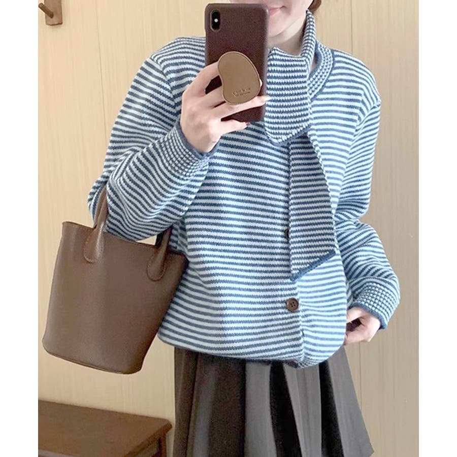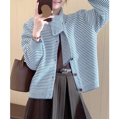 ボーダーカーディガン&ニットタイ チョーカー スカーフ