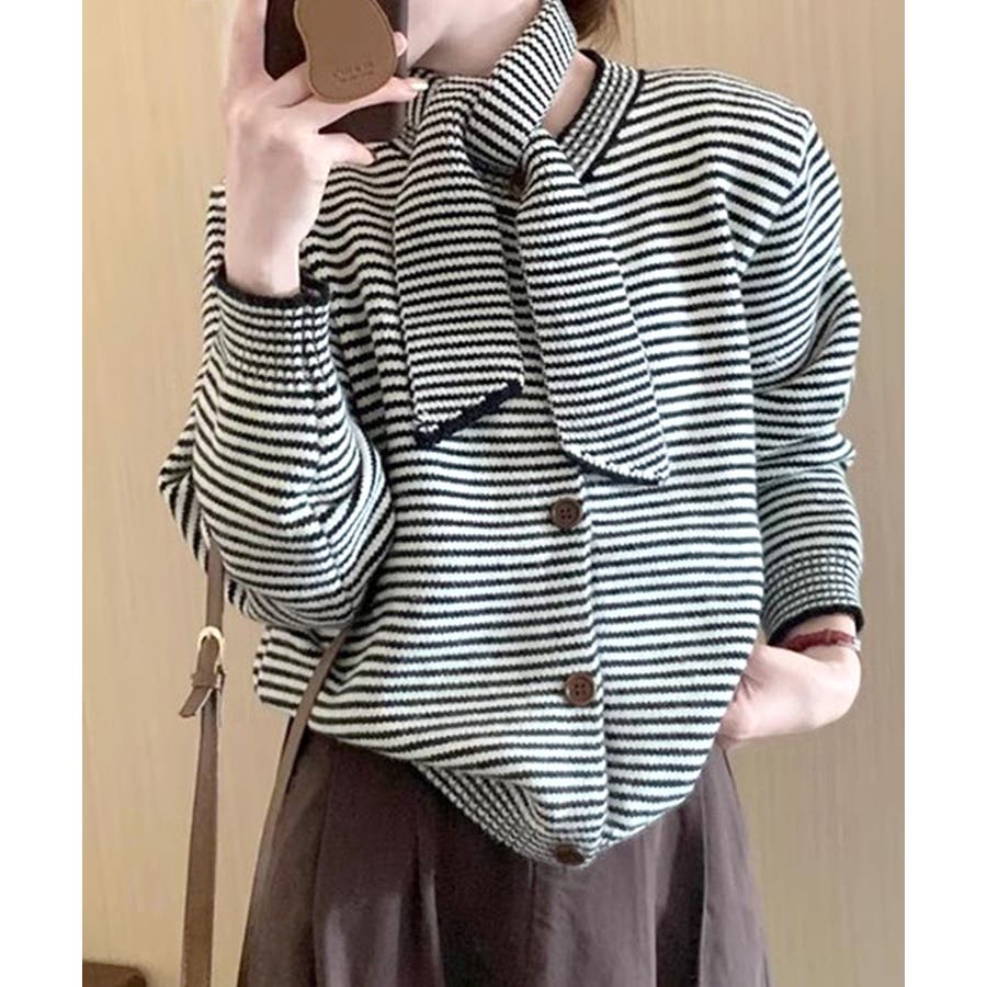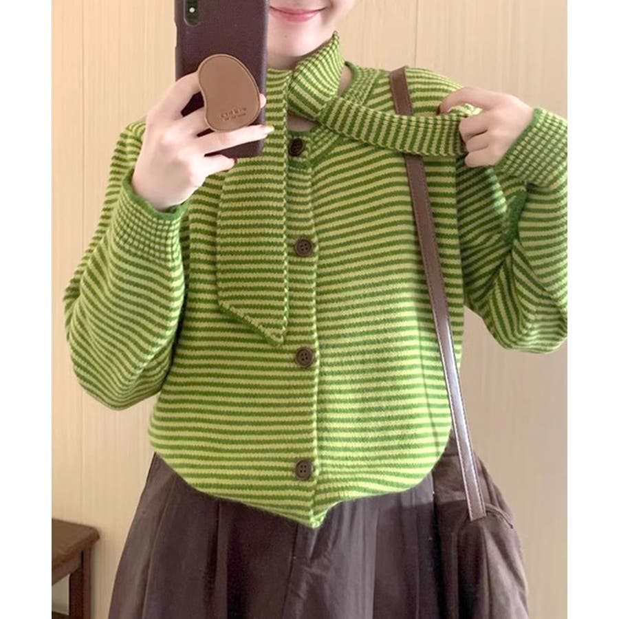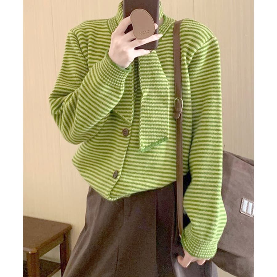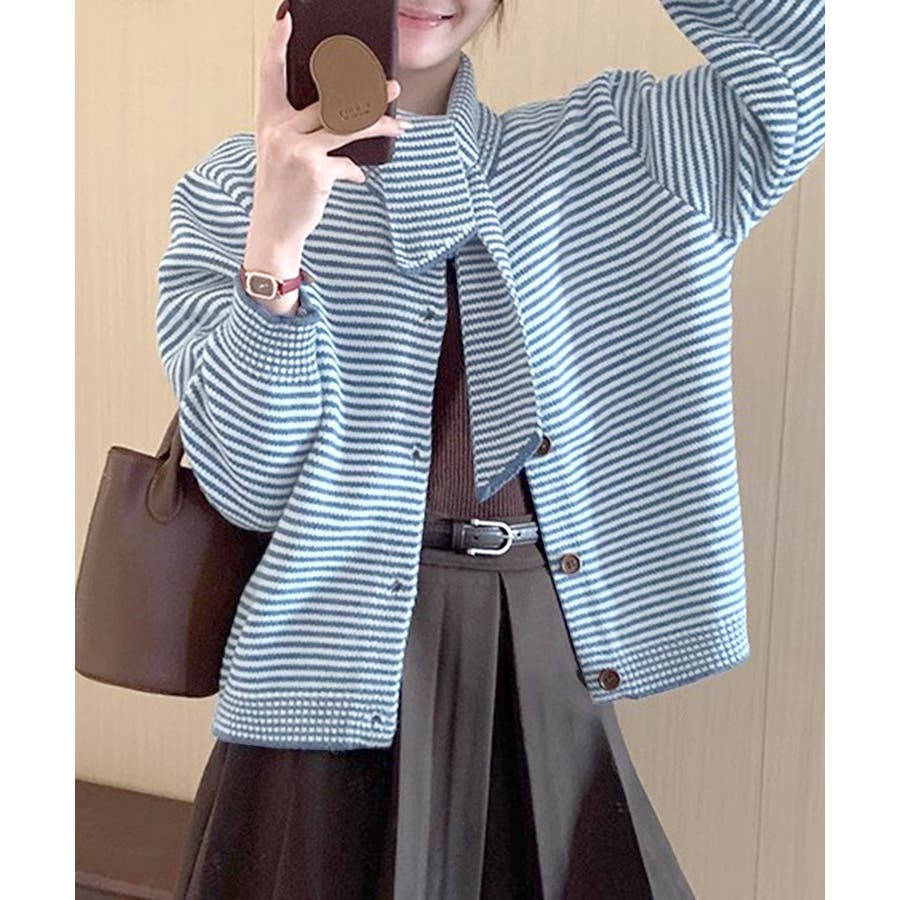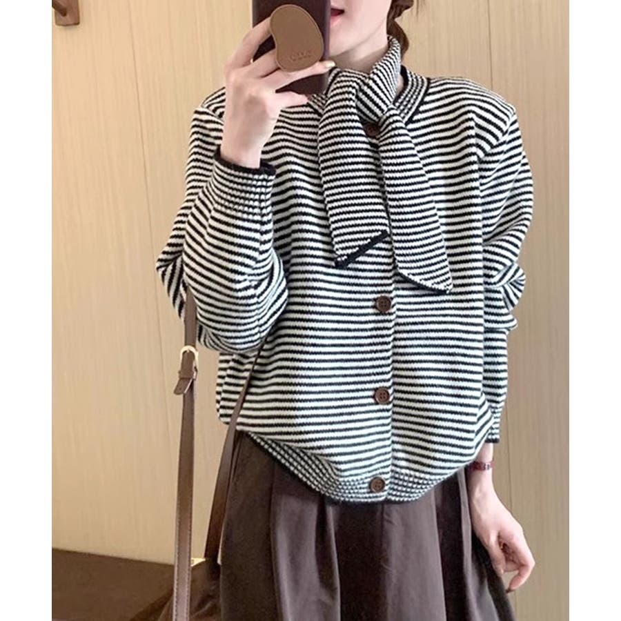 ボーダーカーディガン&ニットタイ チョーカー スカーフ