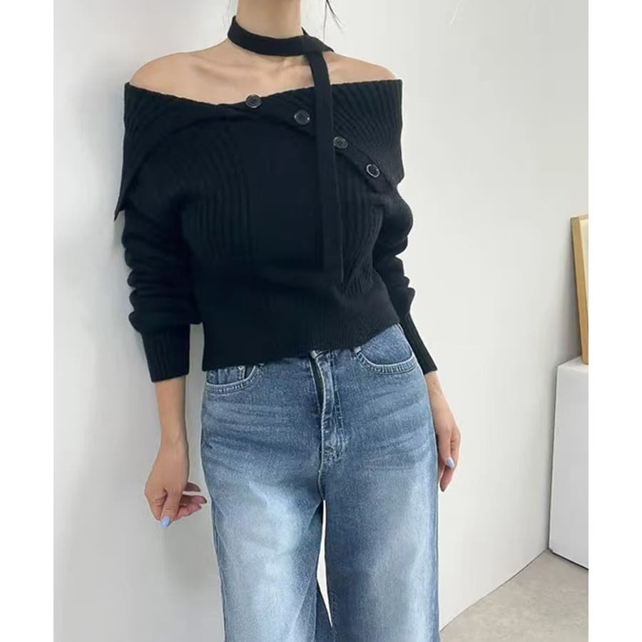 アシメオフショルニット&チョーカー