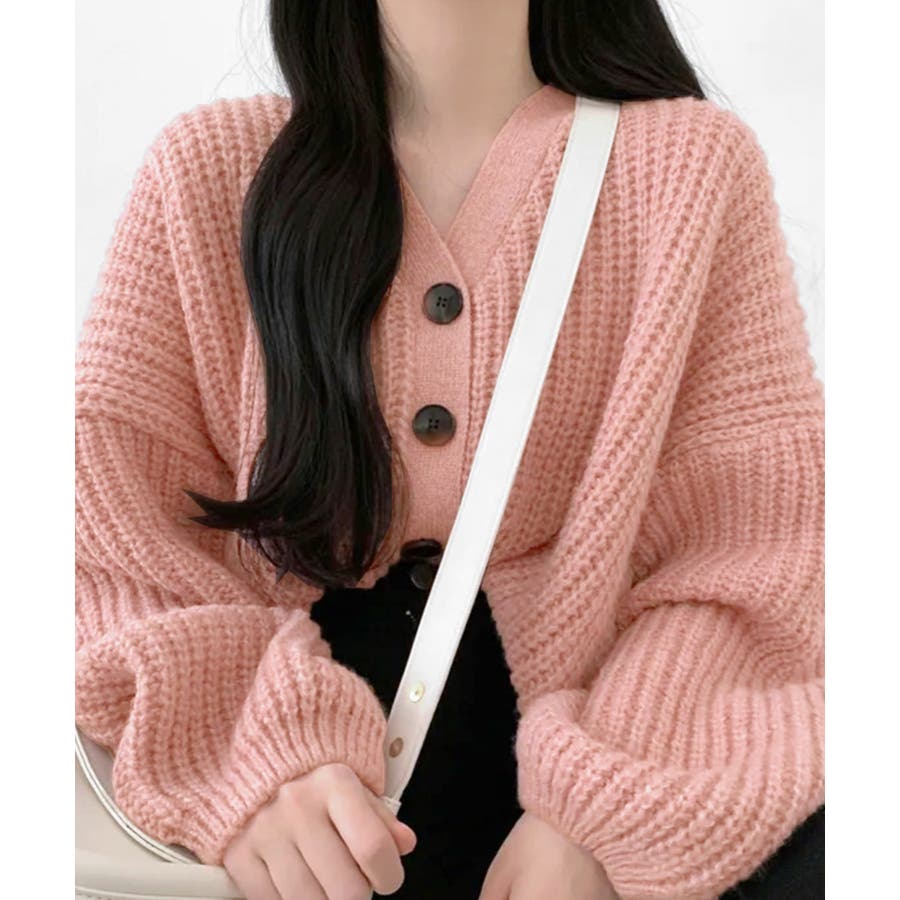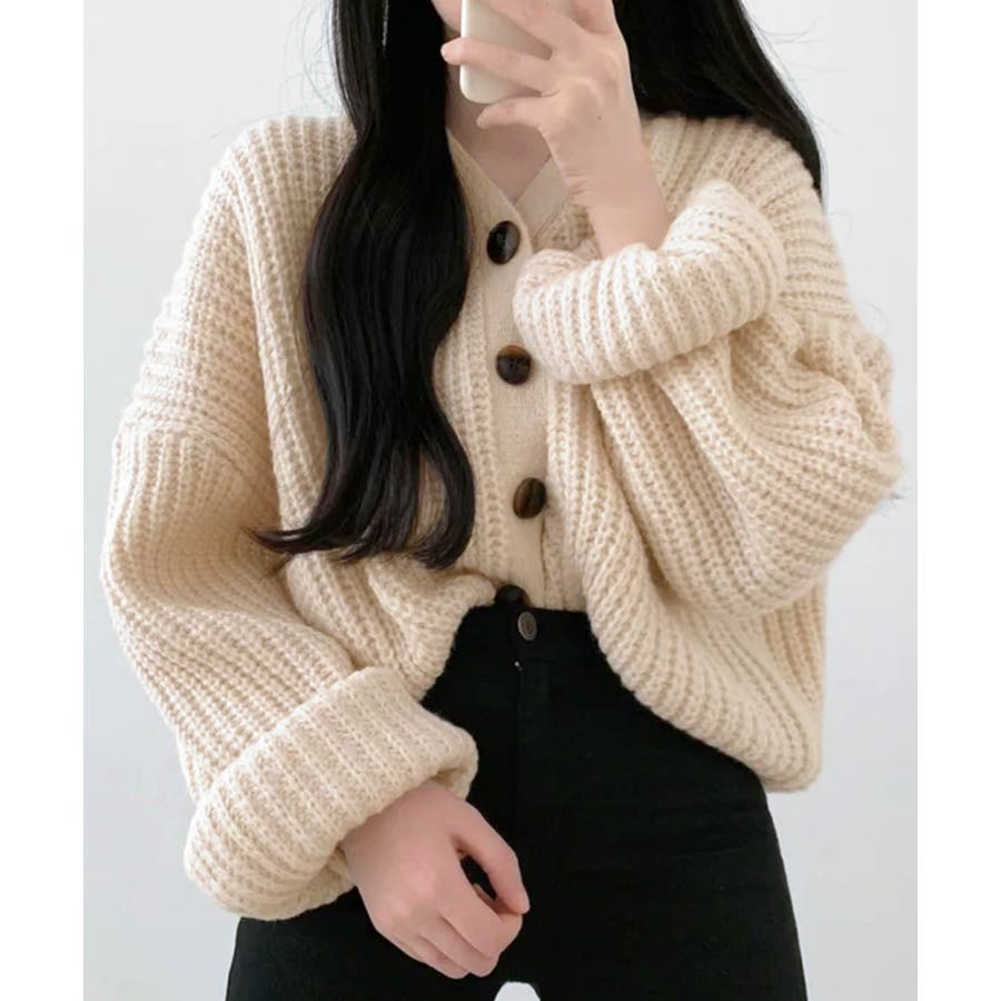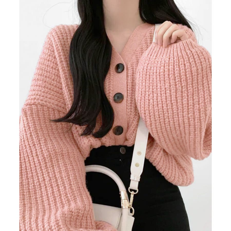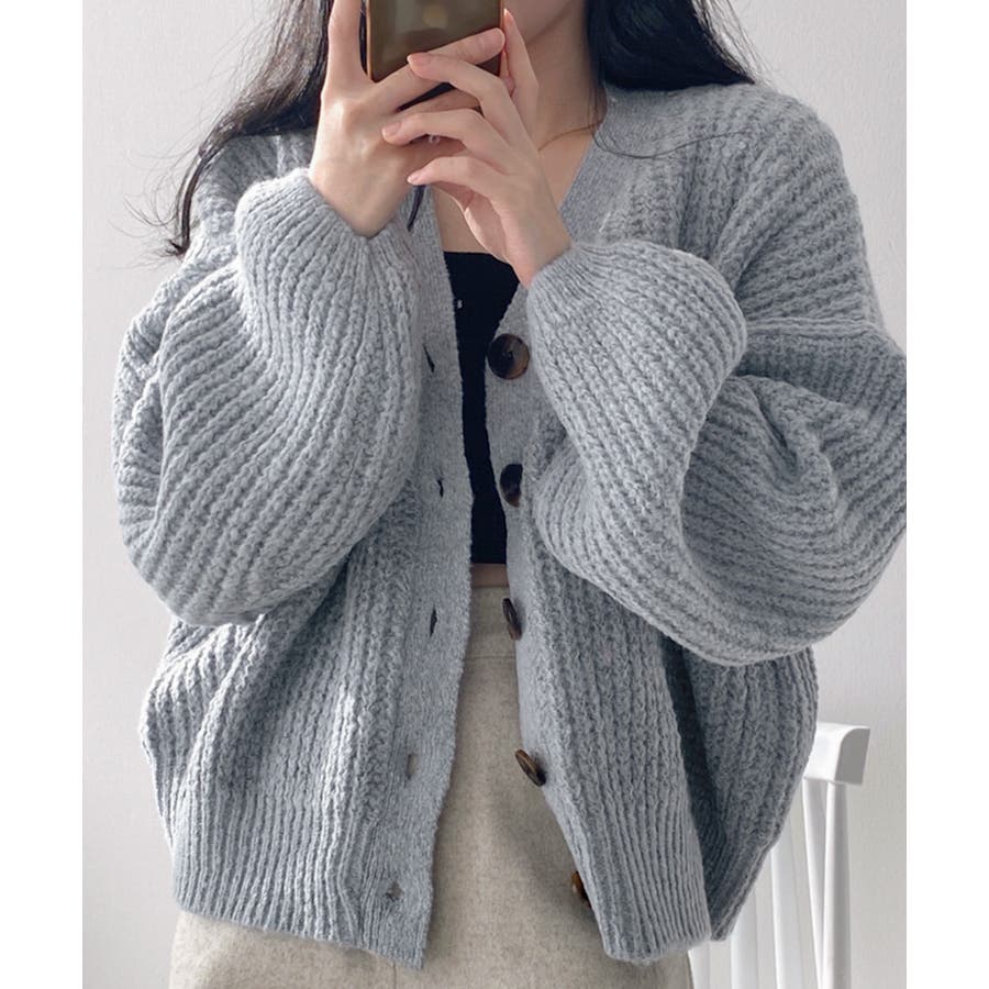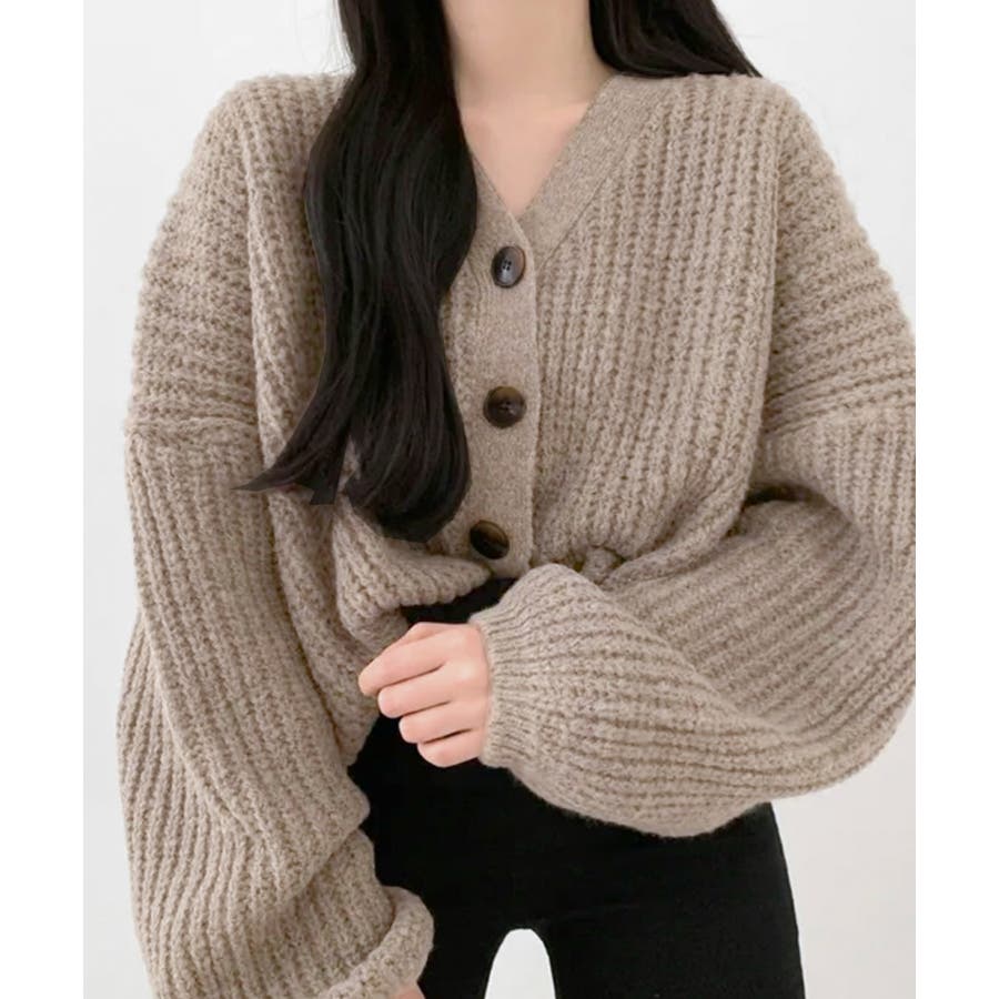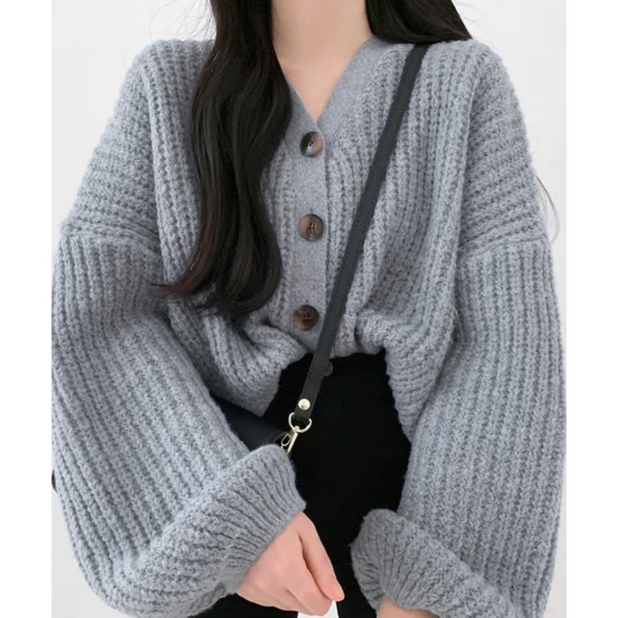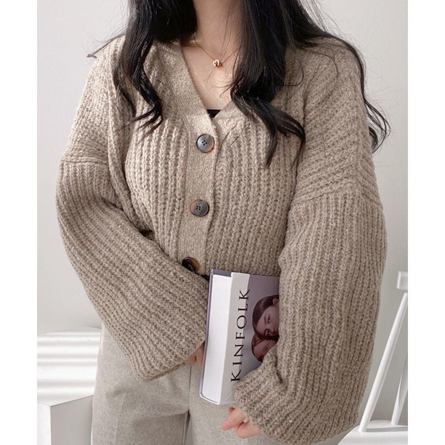 ボリューム袖Vネックニットカーディガン