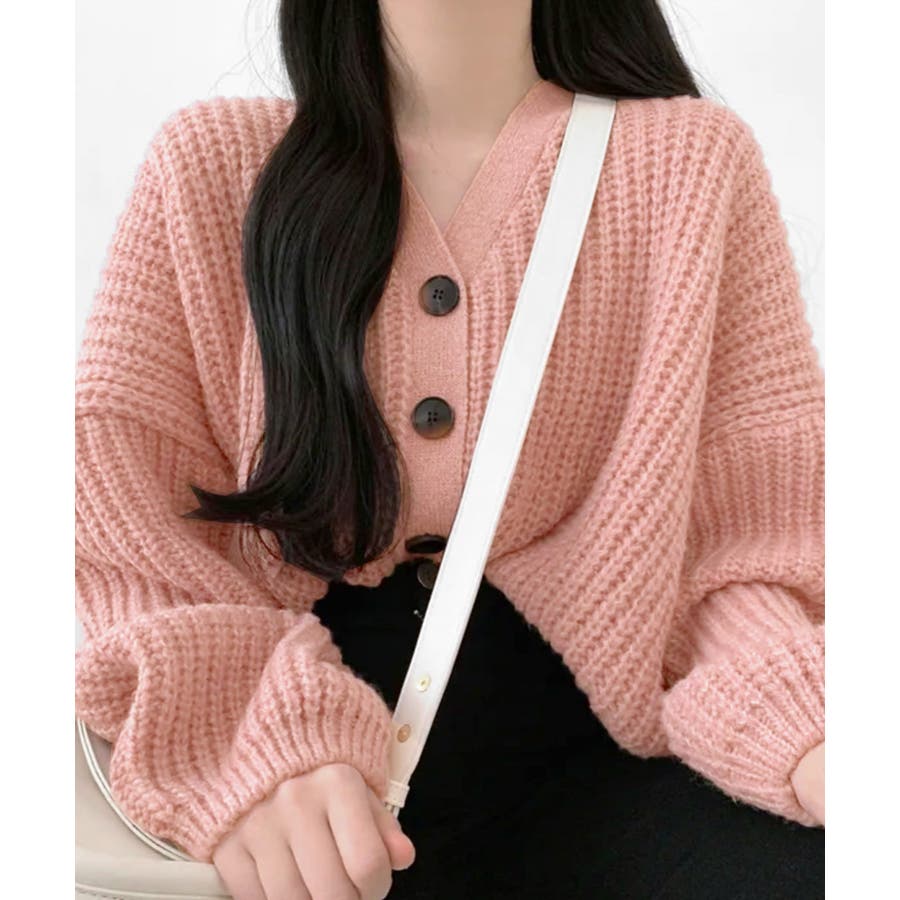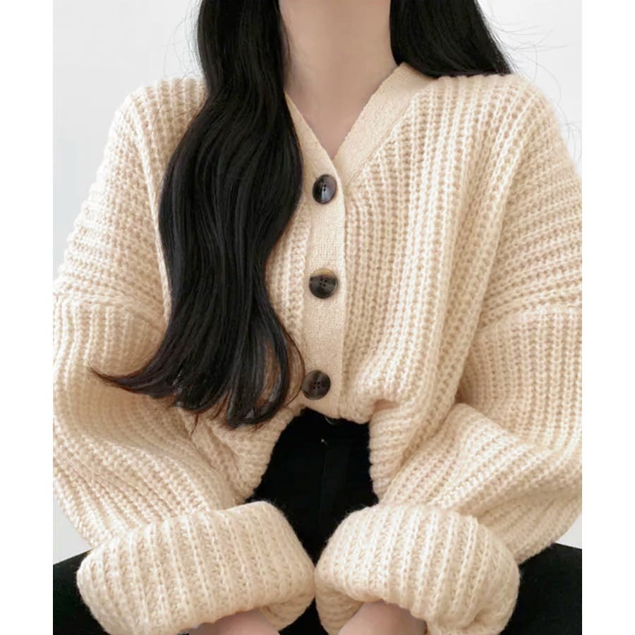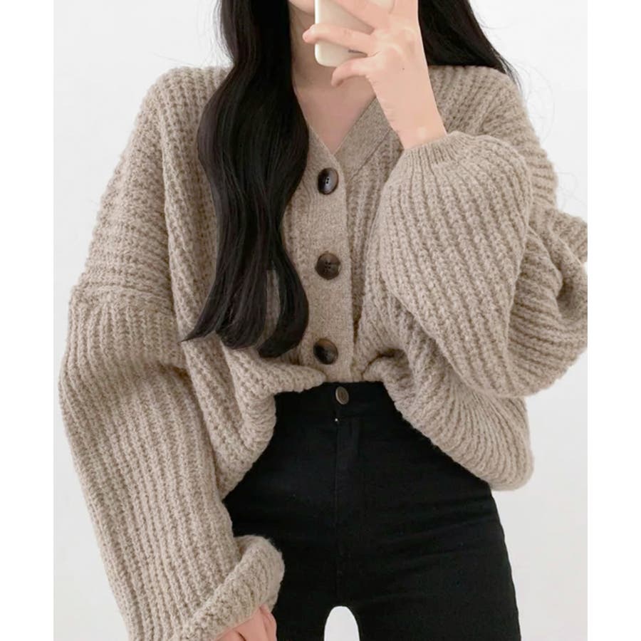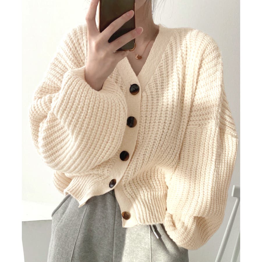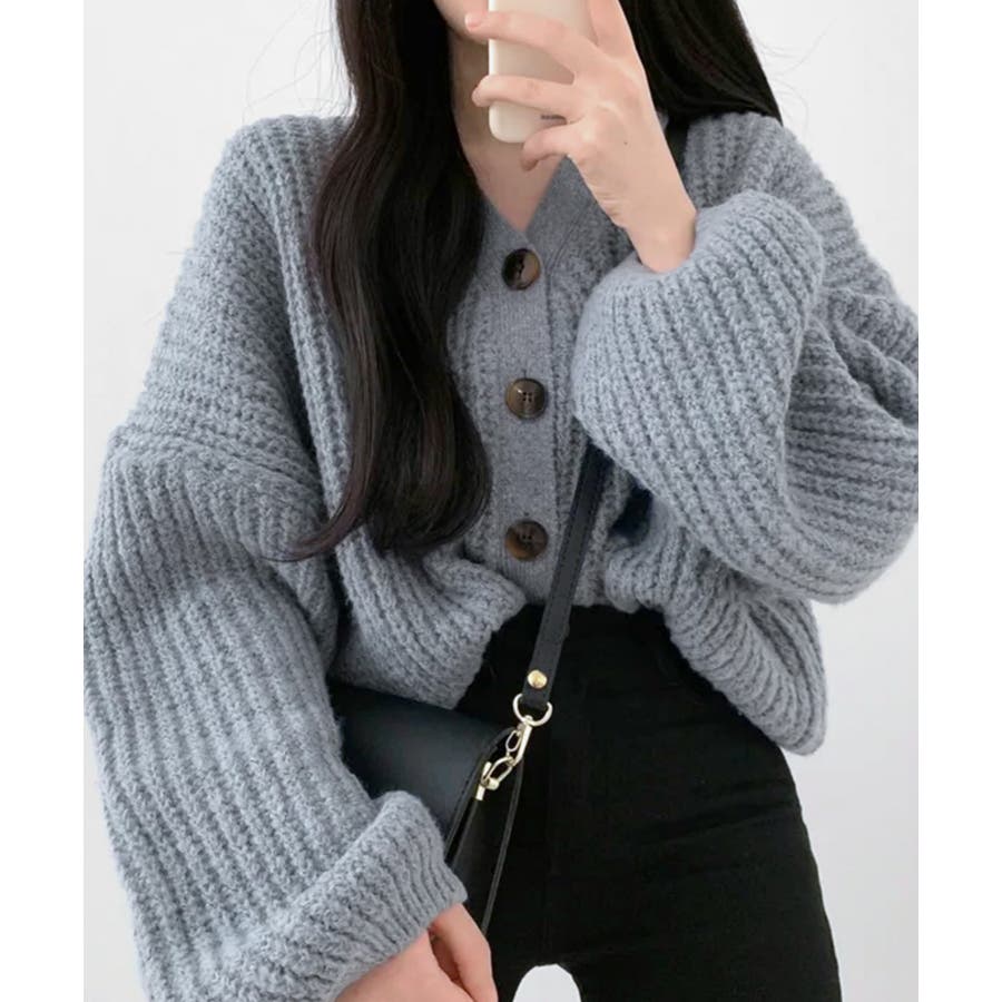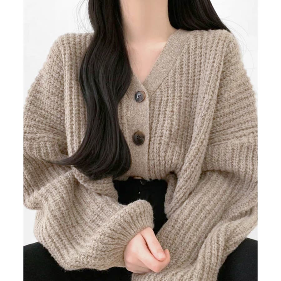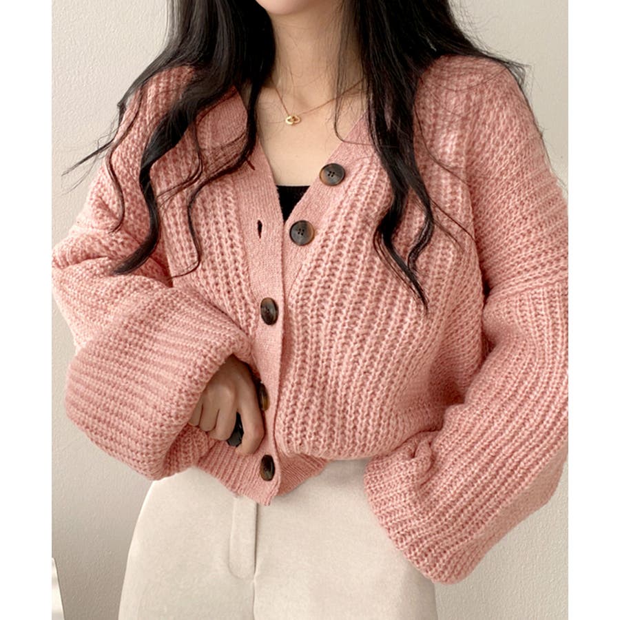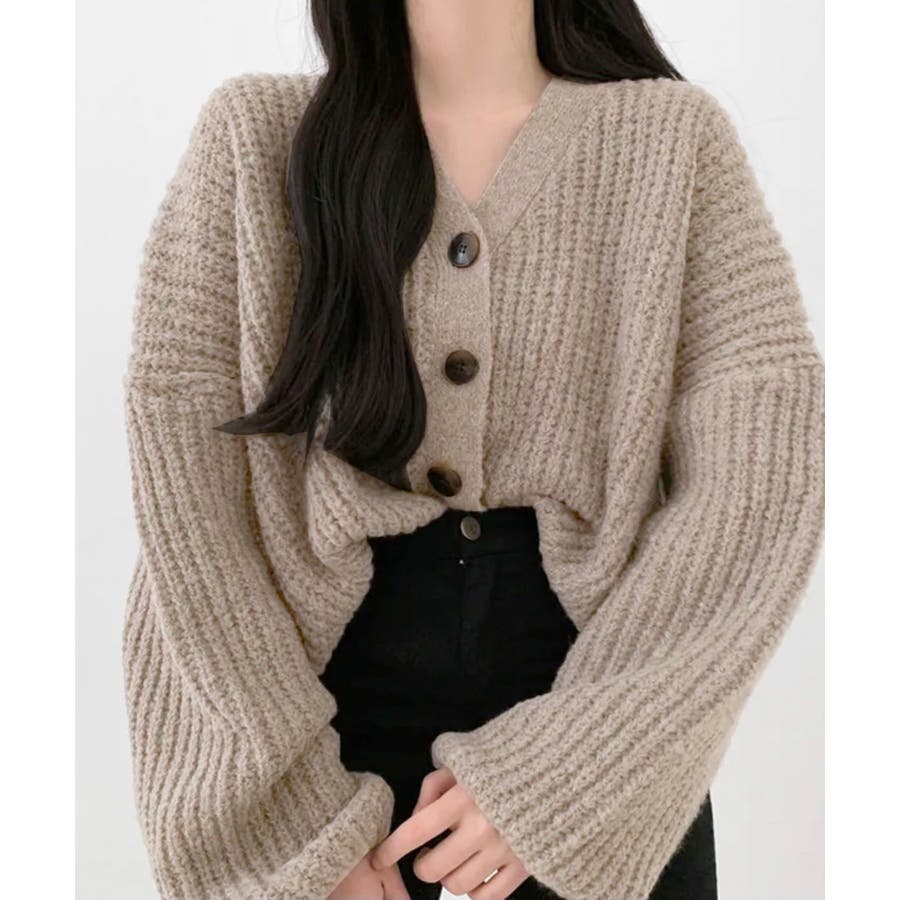 ボリューム袖Vネックニットカーディガン