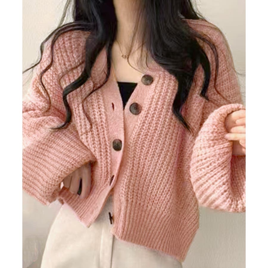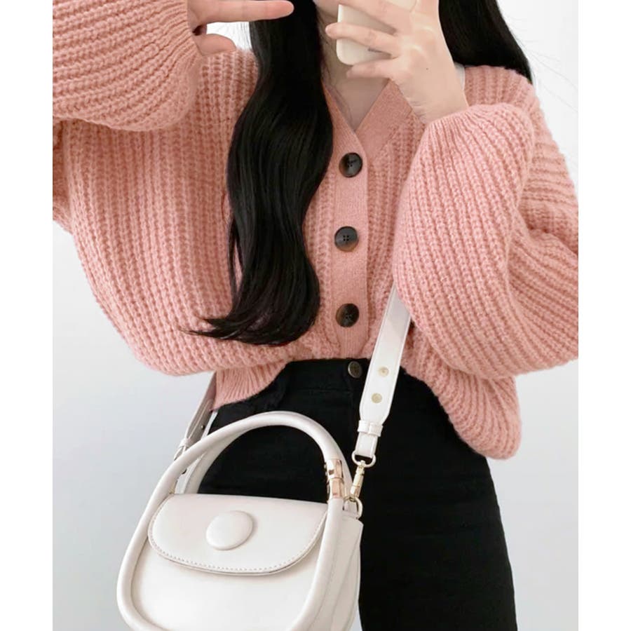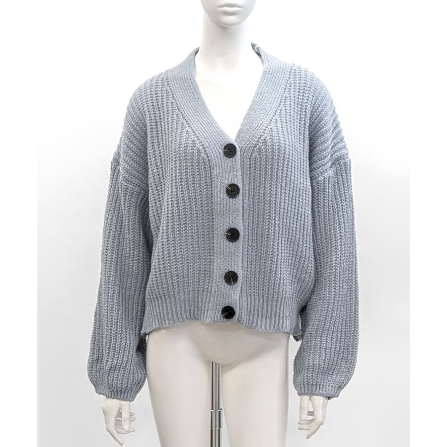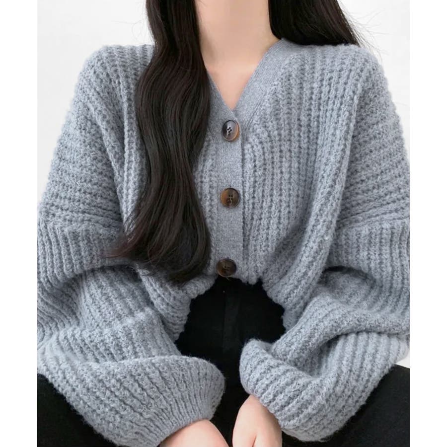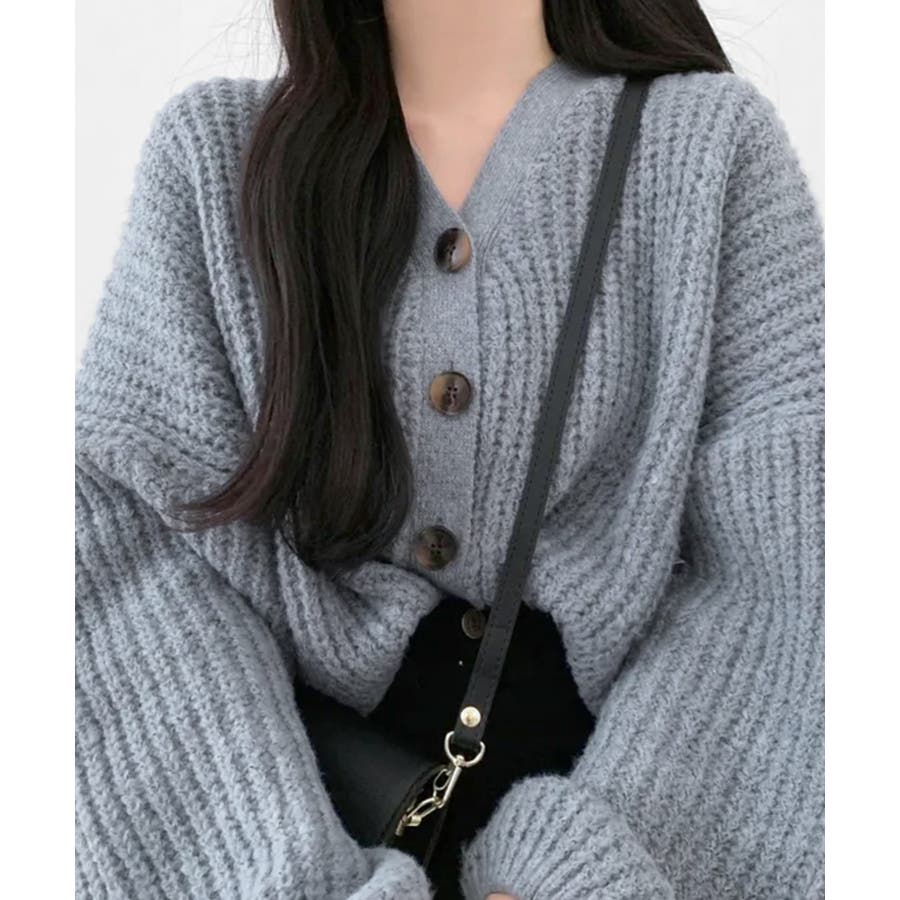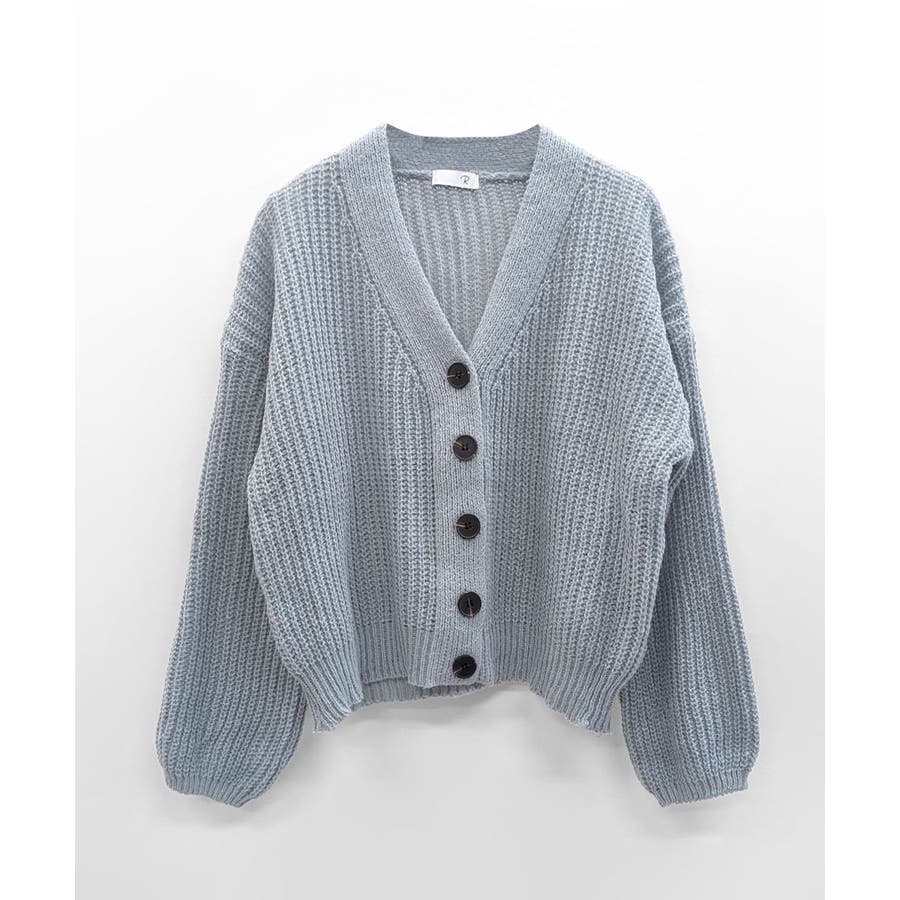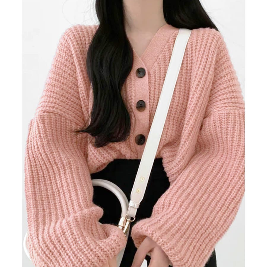 ボリューム袖Vネックニットカーディガン