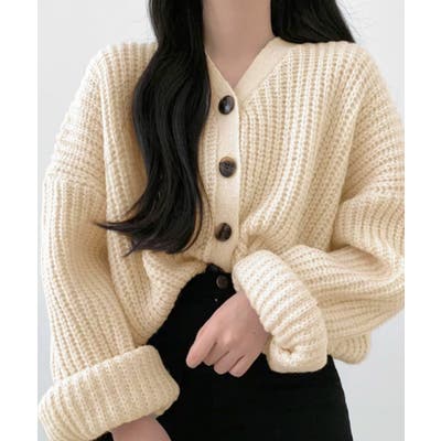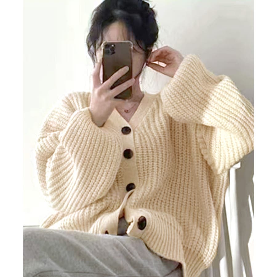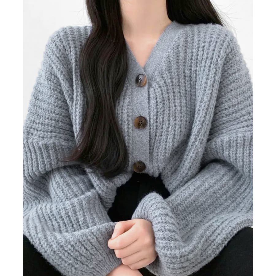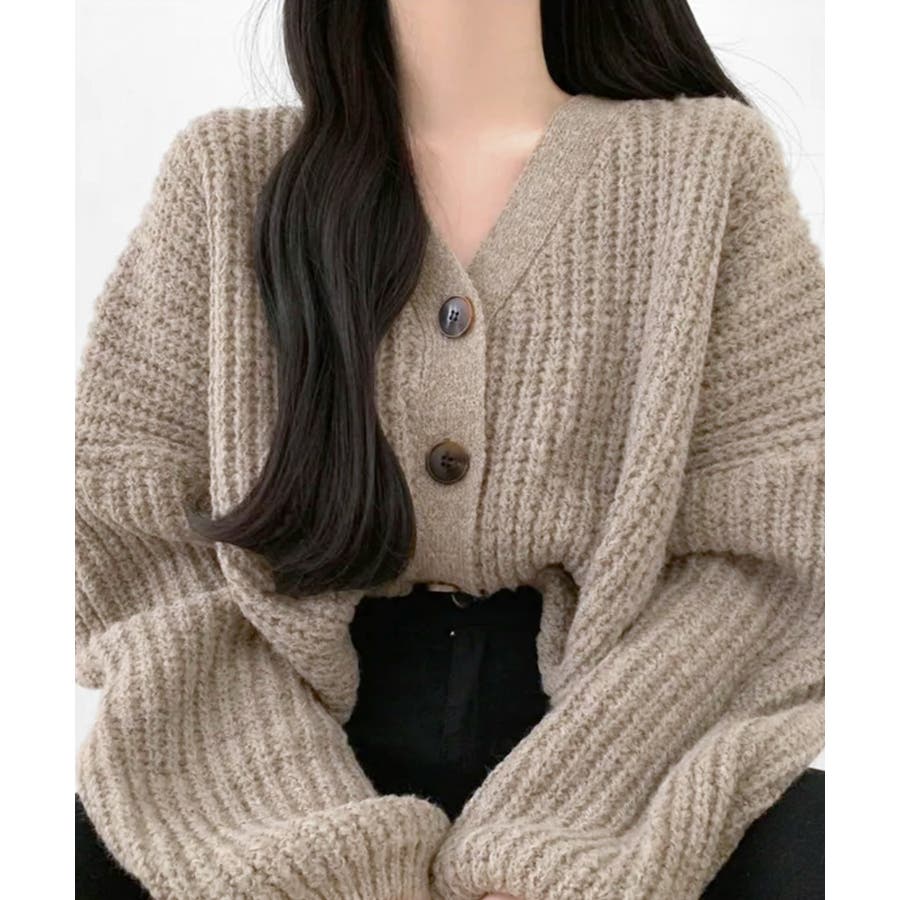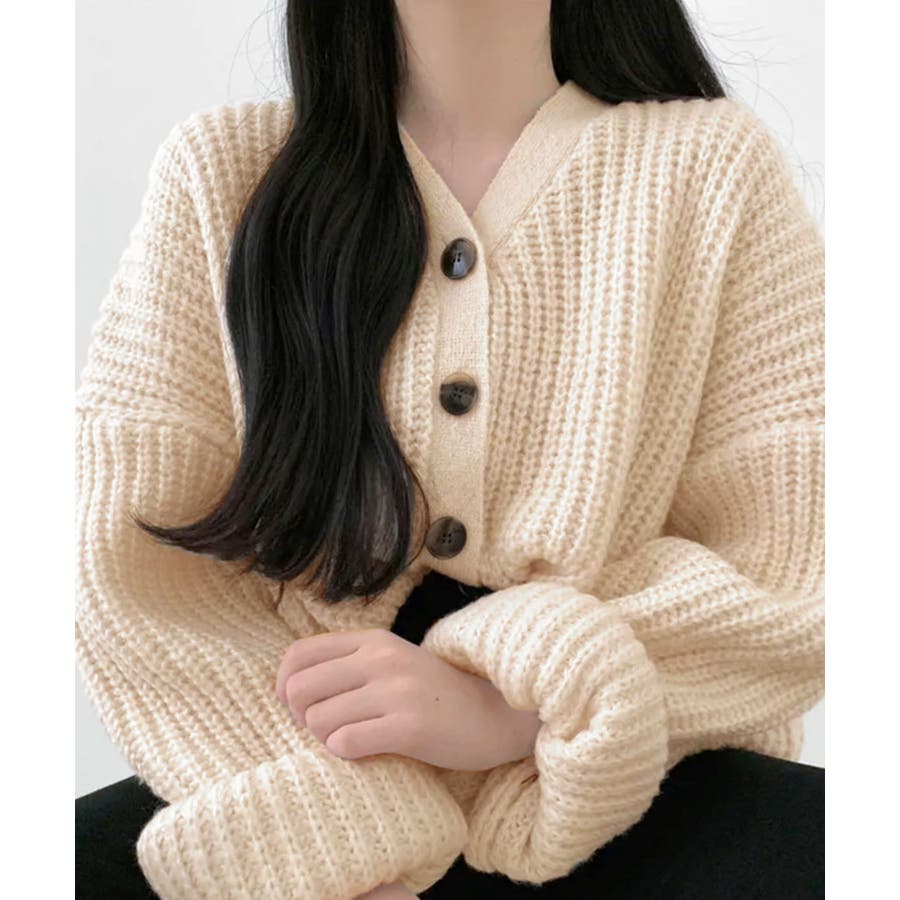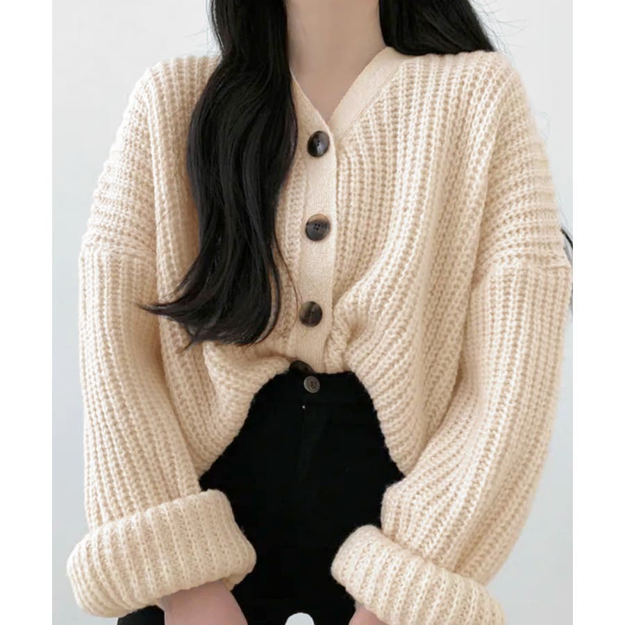 ドロップショルダーニットカーディガン。