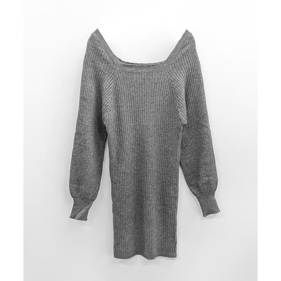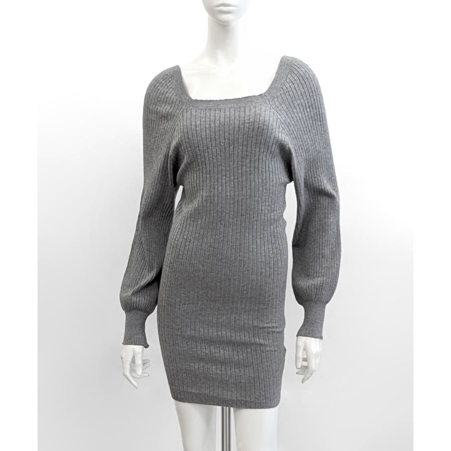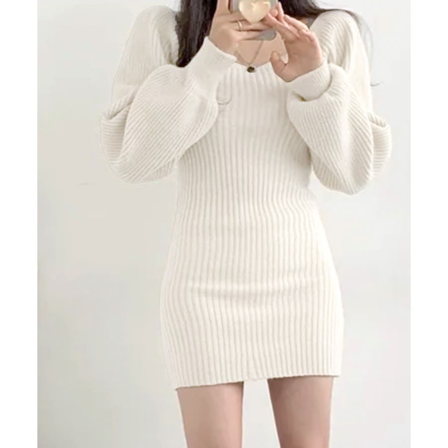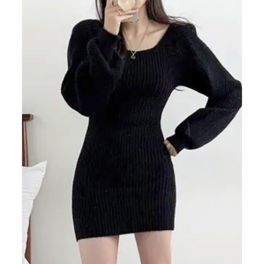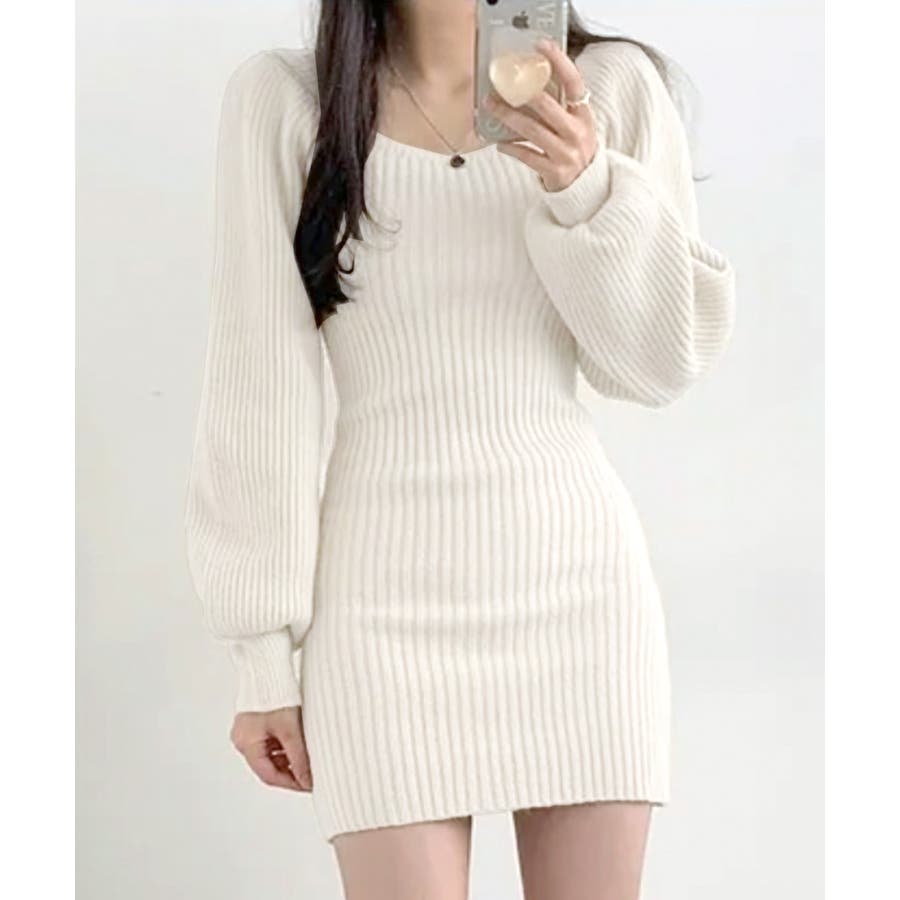 スクエアネックリブニットミニワンピース タイトワンピース ニットワンピース
