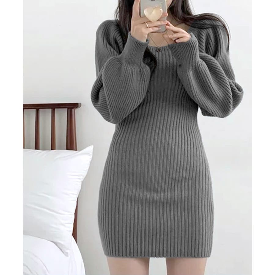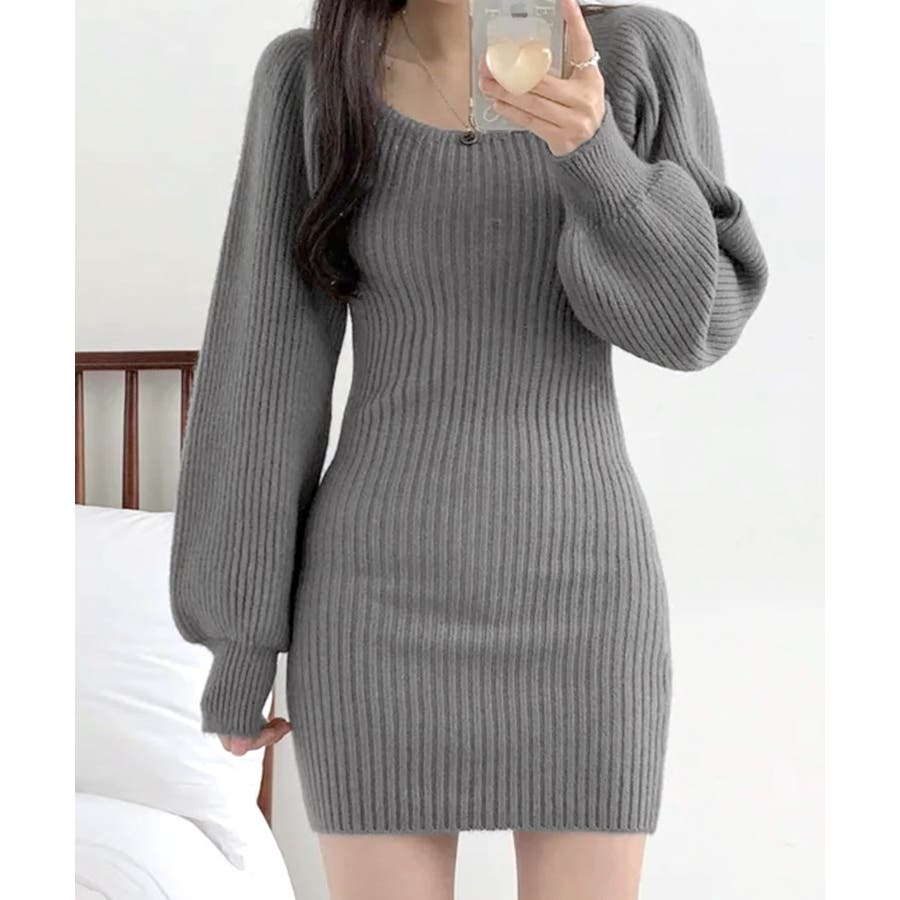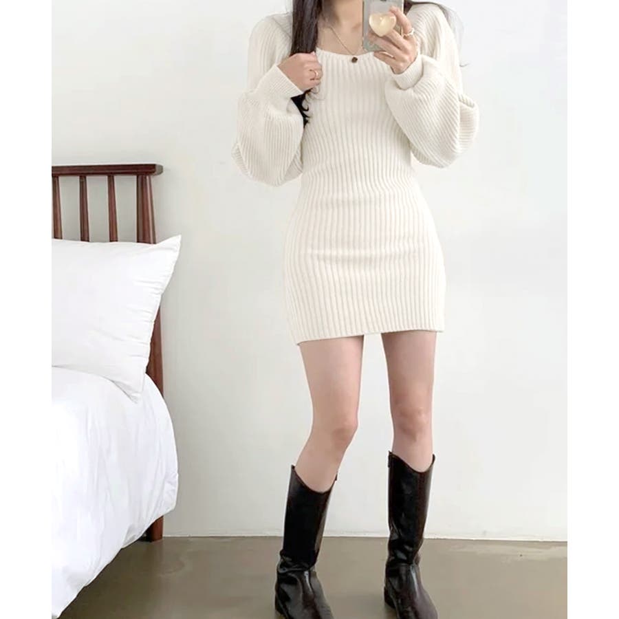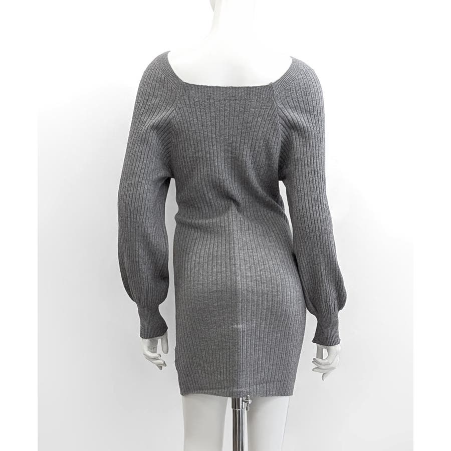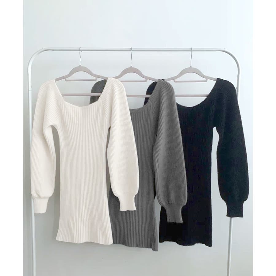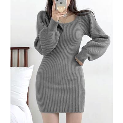 スクエアネックリブニットミニワンピース タイトワンピース ニットワンピース