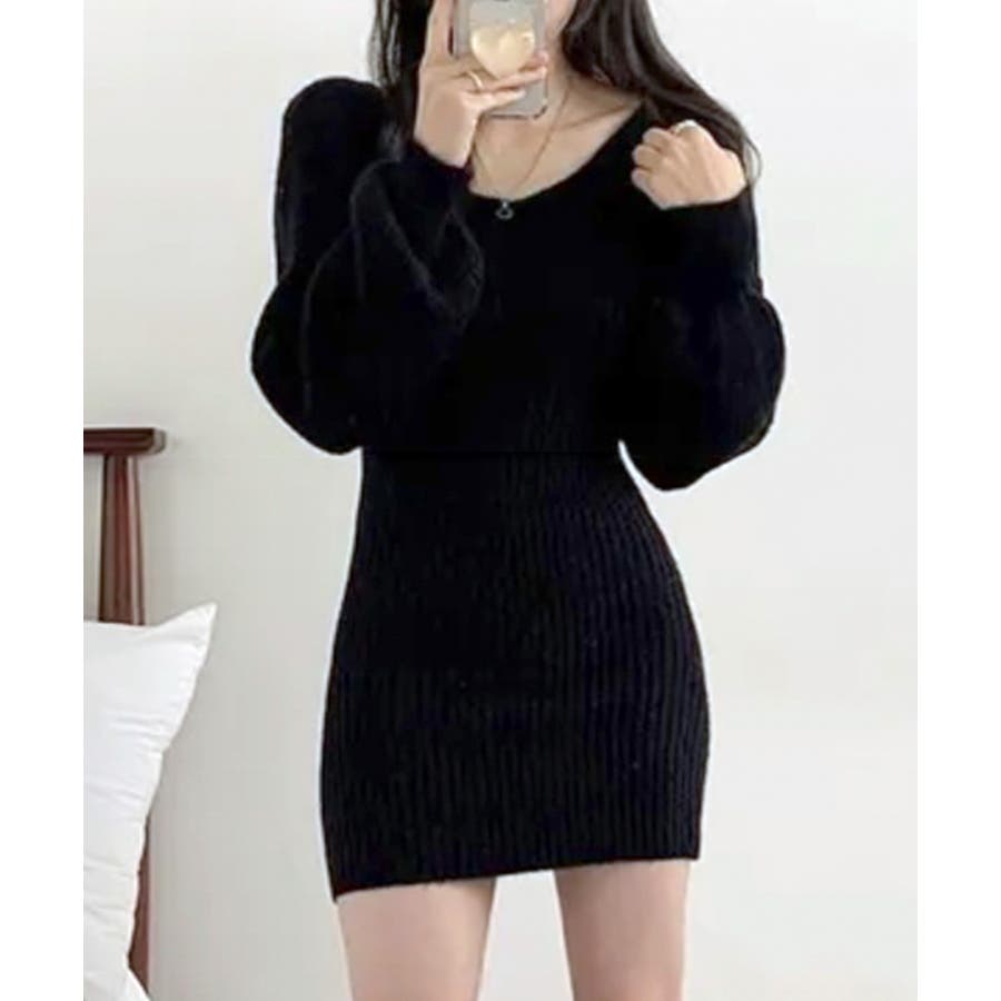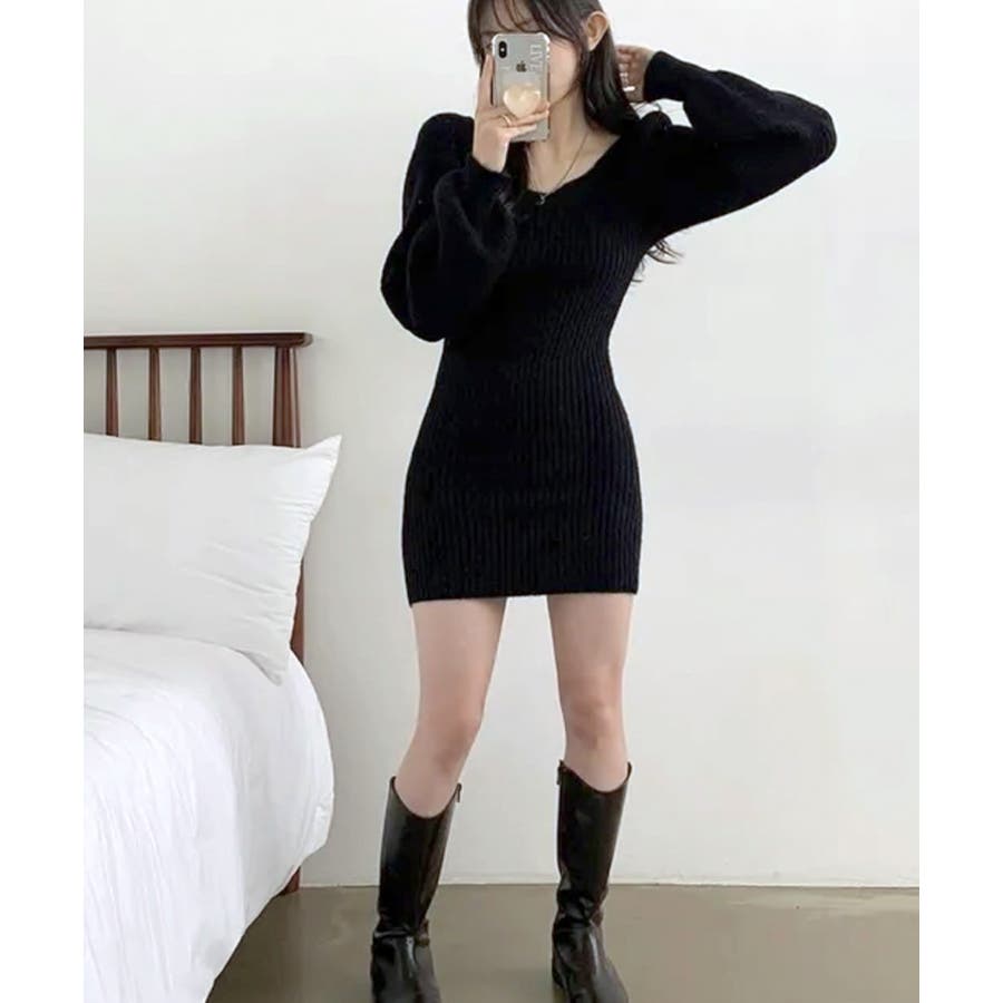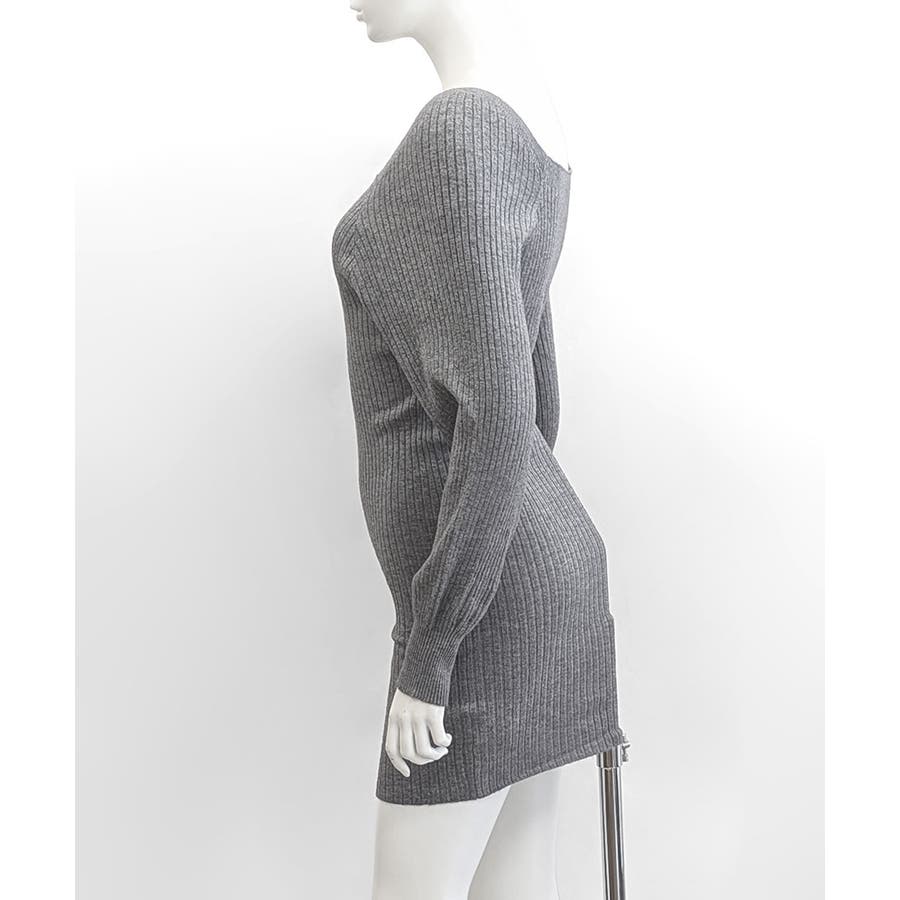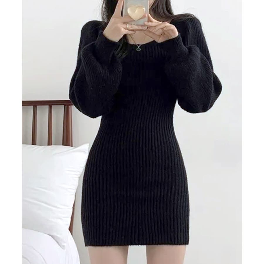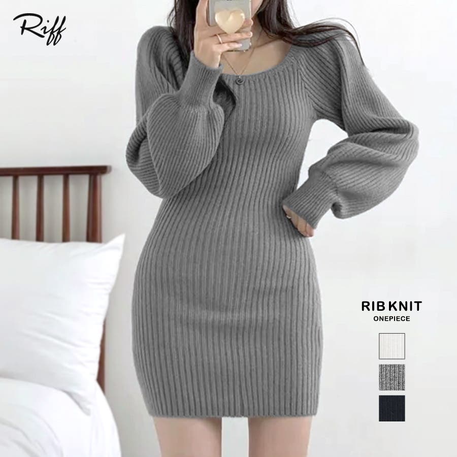 スクエアネックリブニットミニワンピース タイトワンピース ニットワンピース