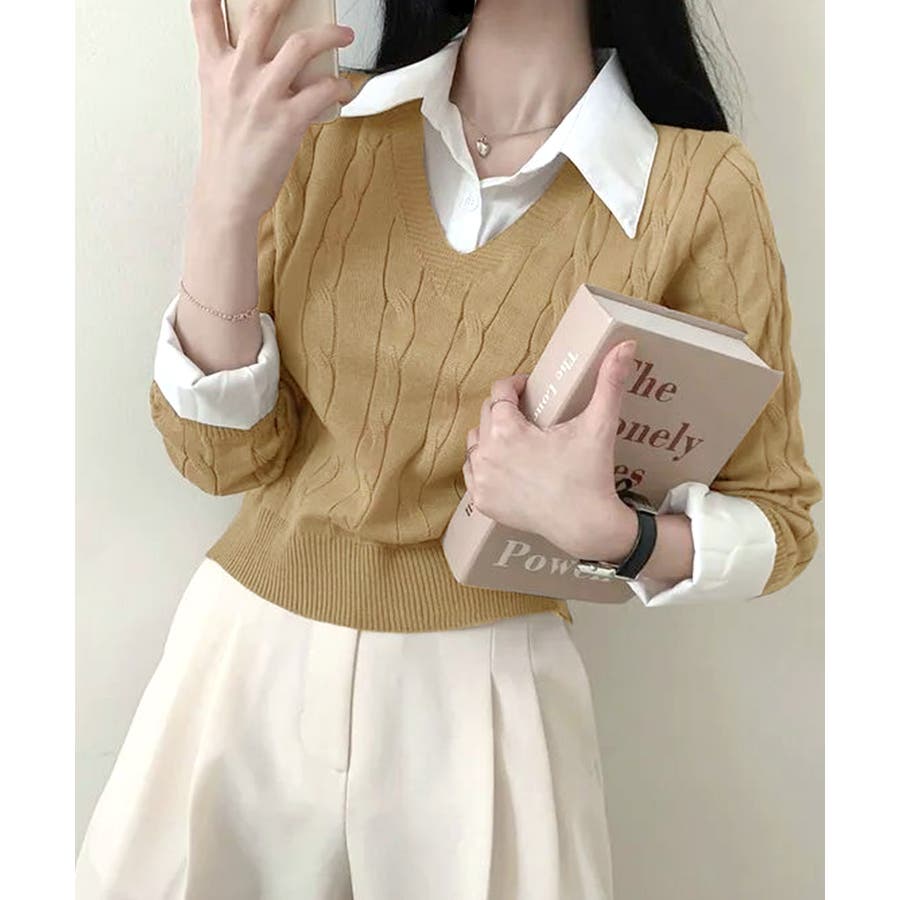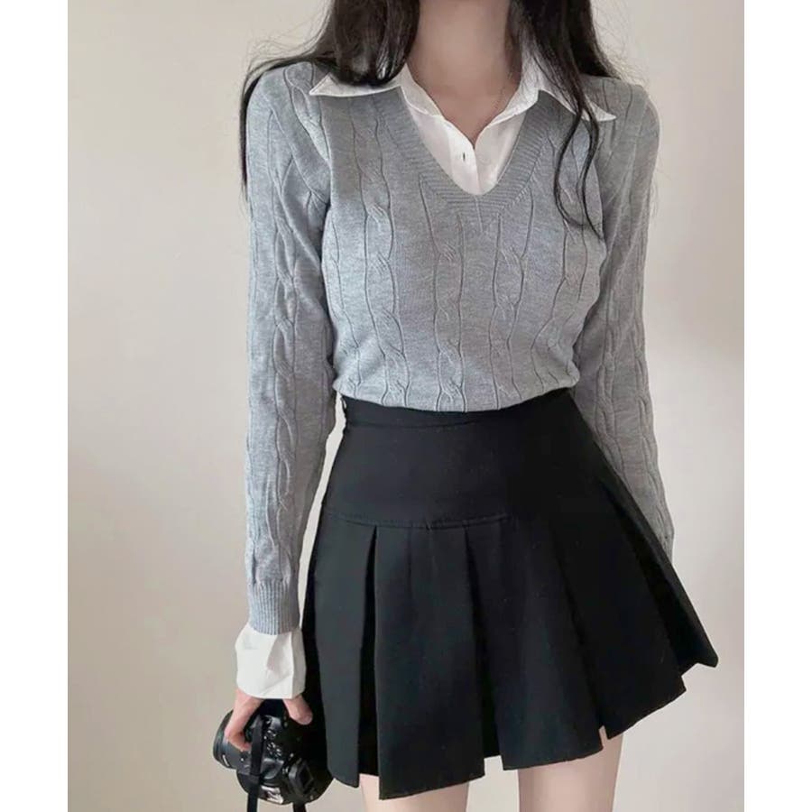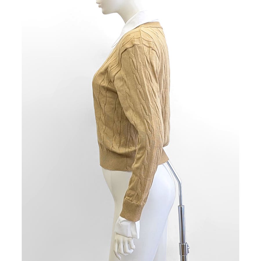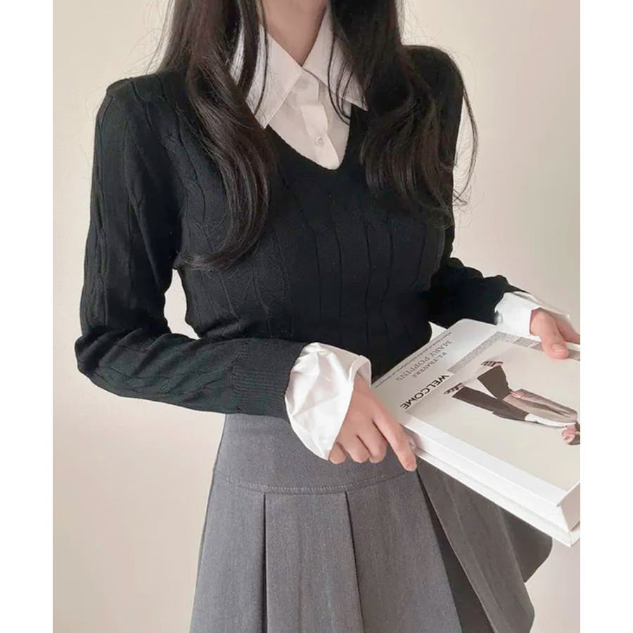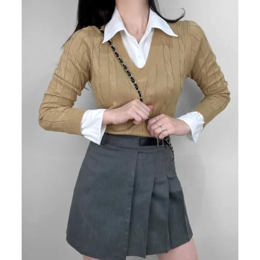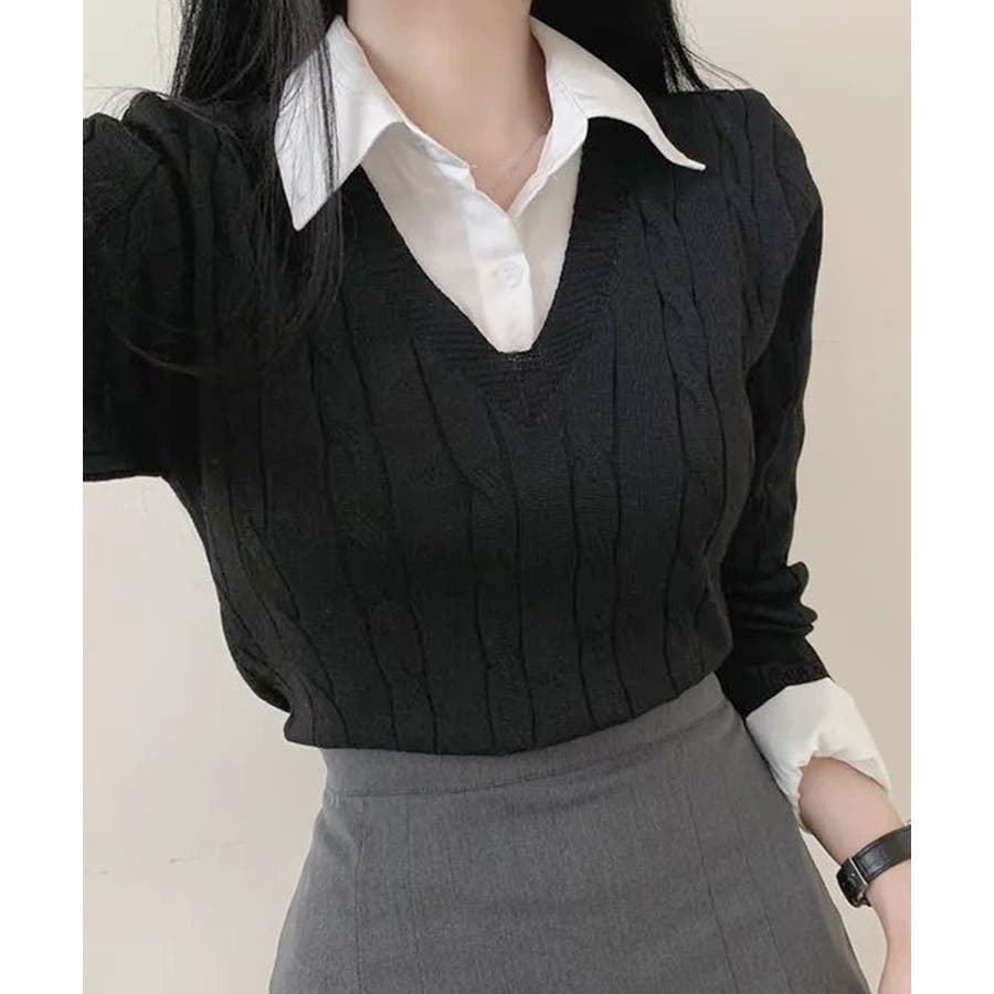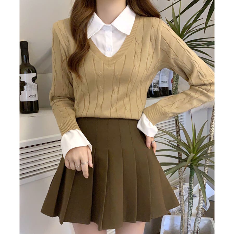 シャツレイヤード風ケーブルニット フェイクレイヤード ドッキング
