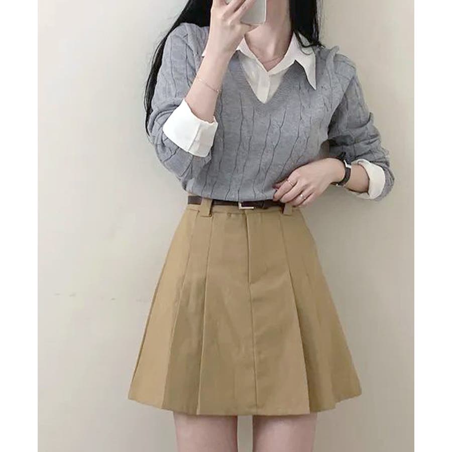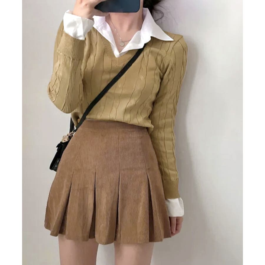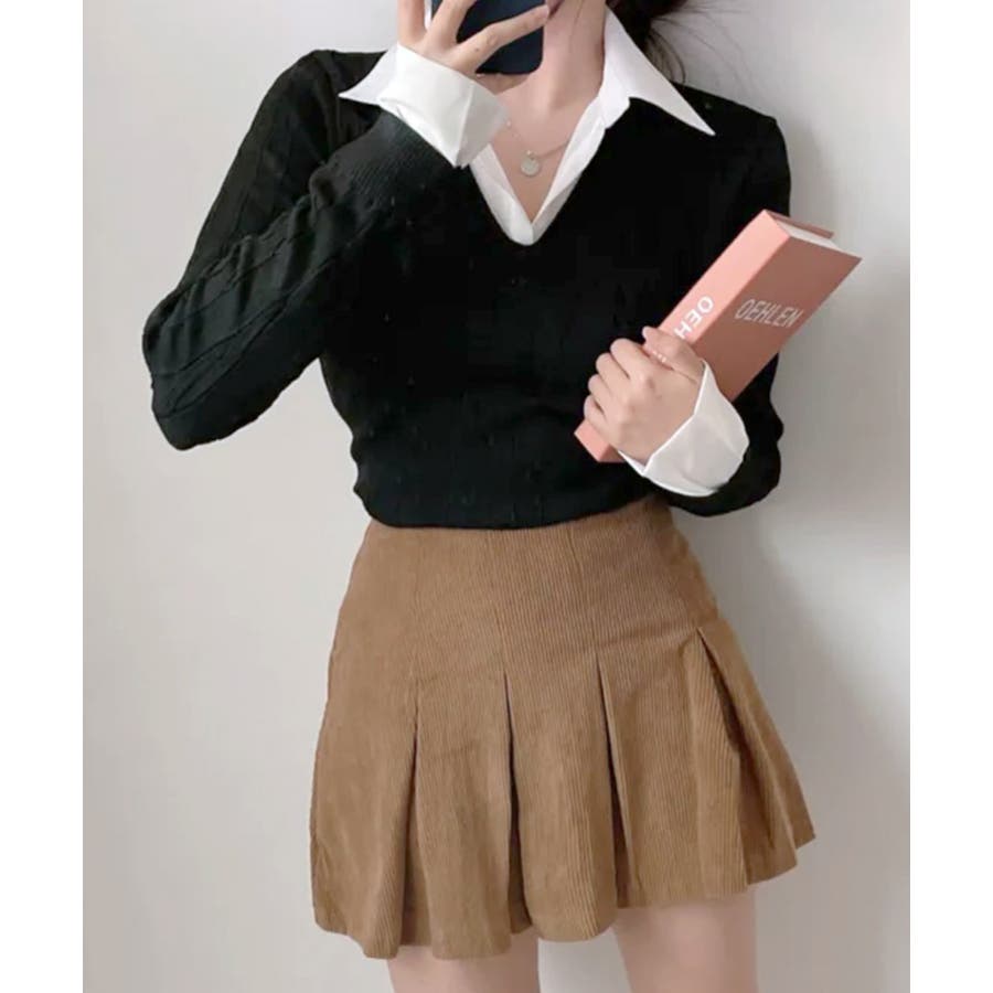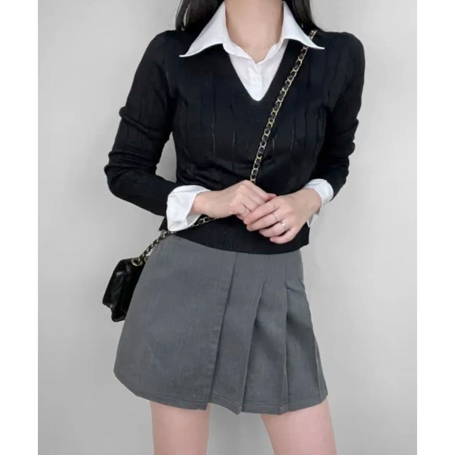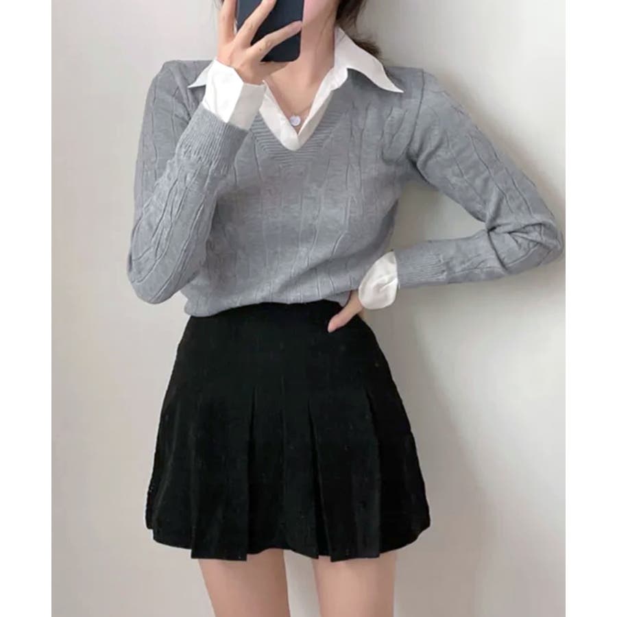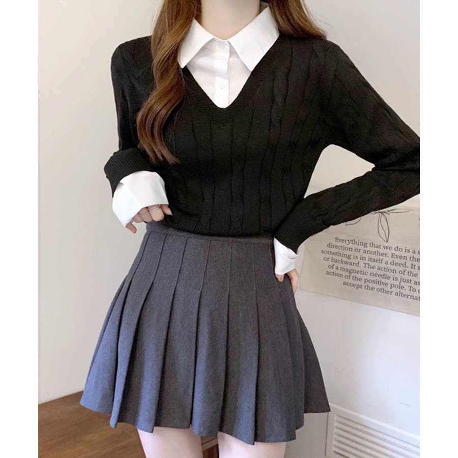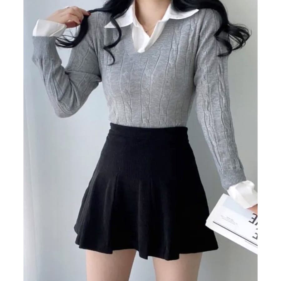 シャツレイヤード風ケーブルニット フェイクレイヤード ドッキング