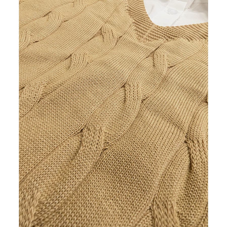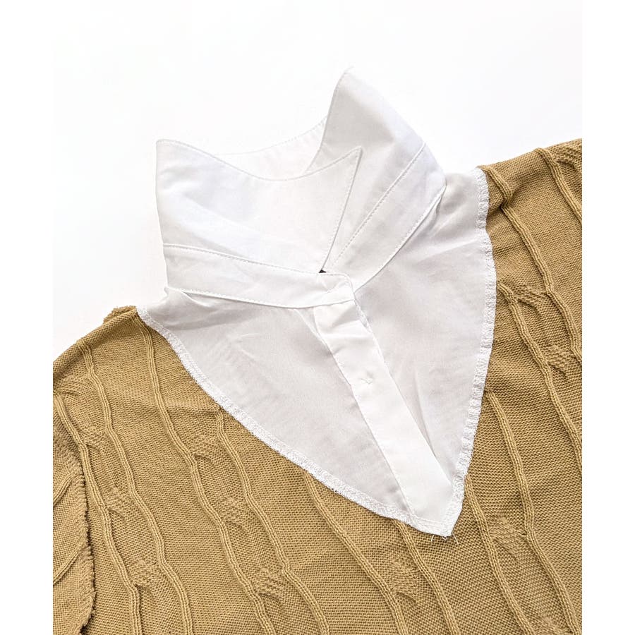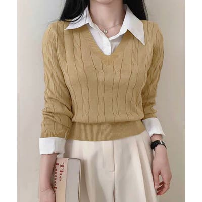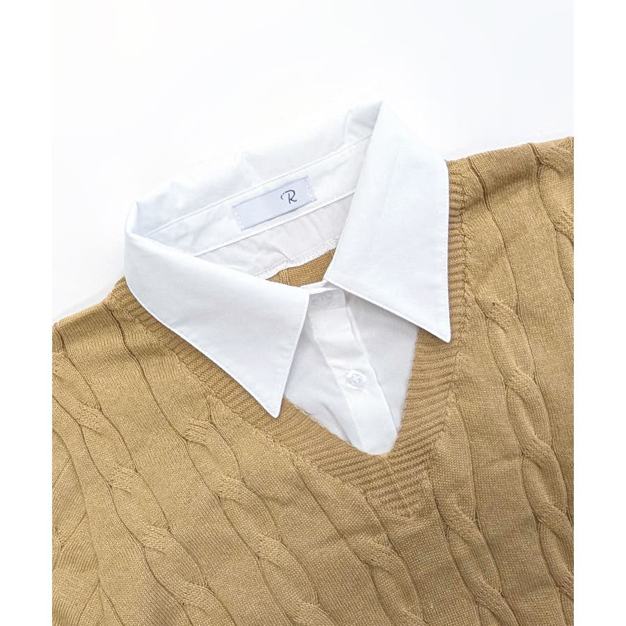 シャツレイヤード風ケーブルニット