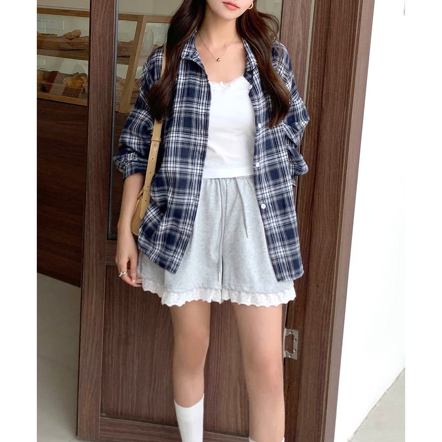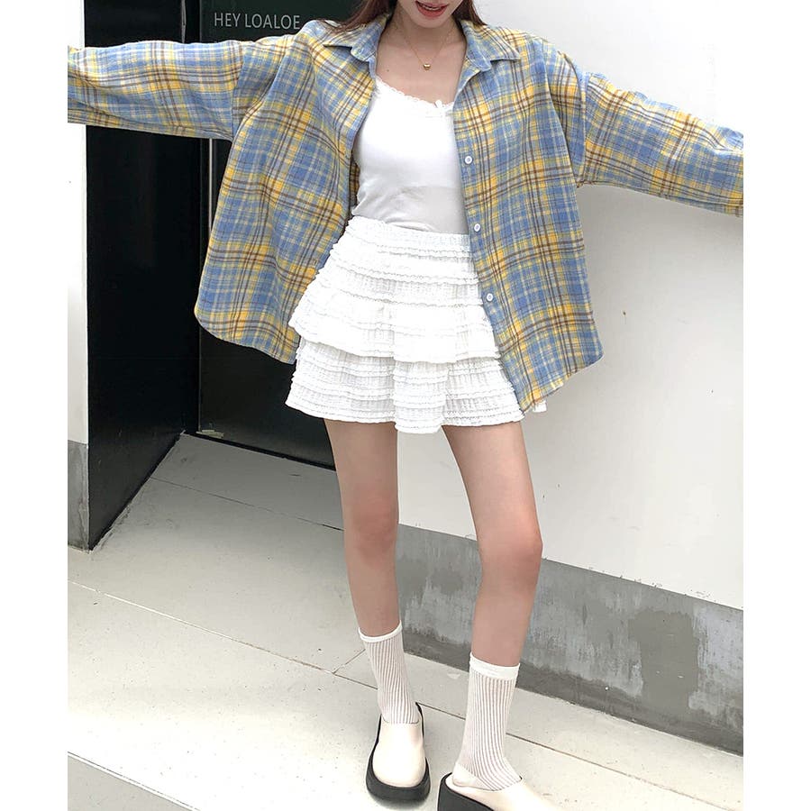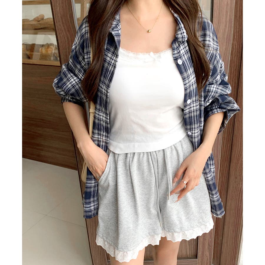 ・ショートパンツやミニスカートを合わせた抜け感コーデに。