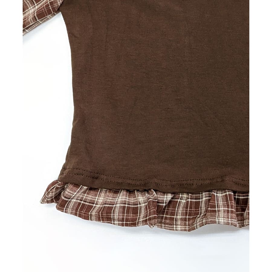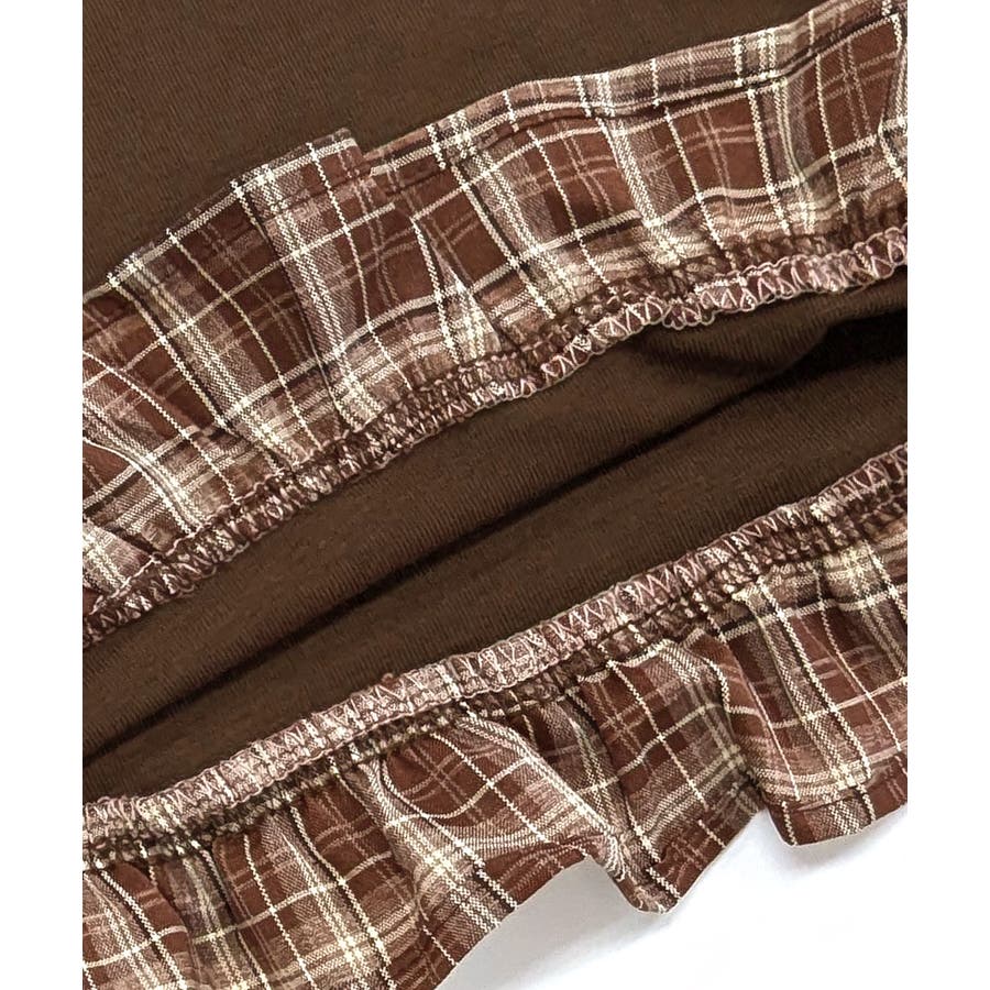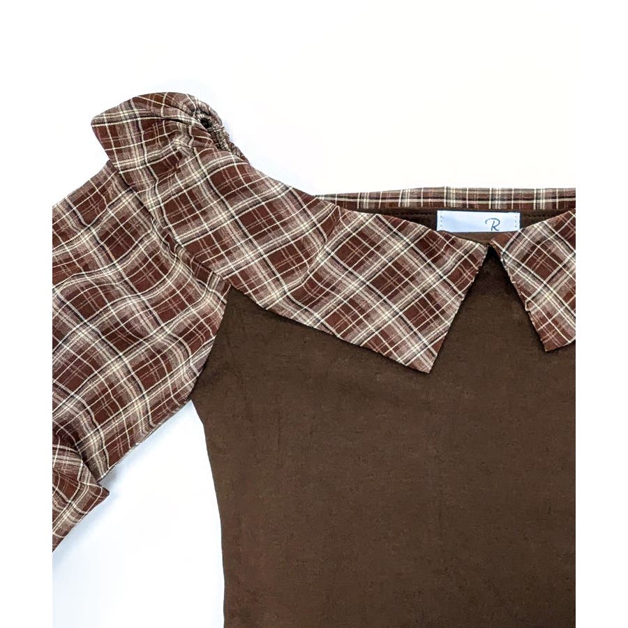 チェック柄がガーリーな異素材オフショルトップス。