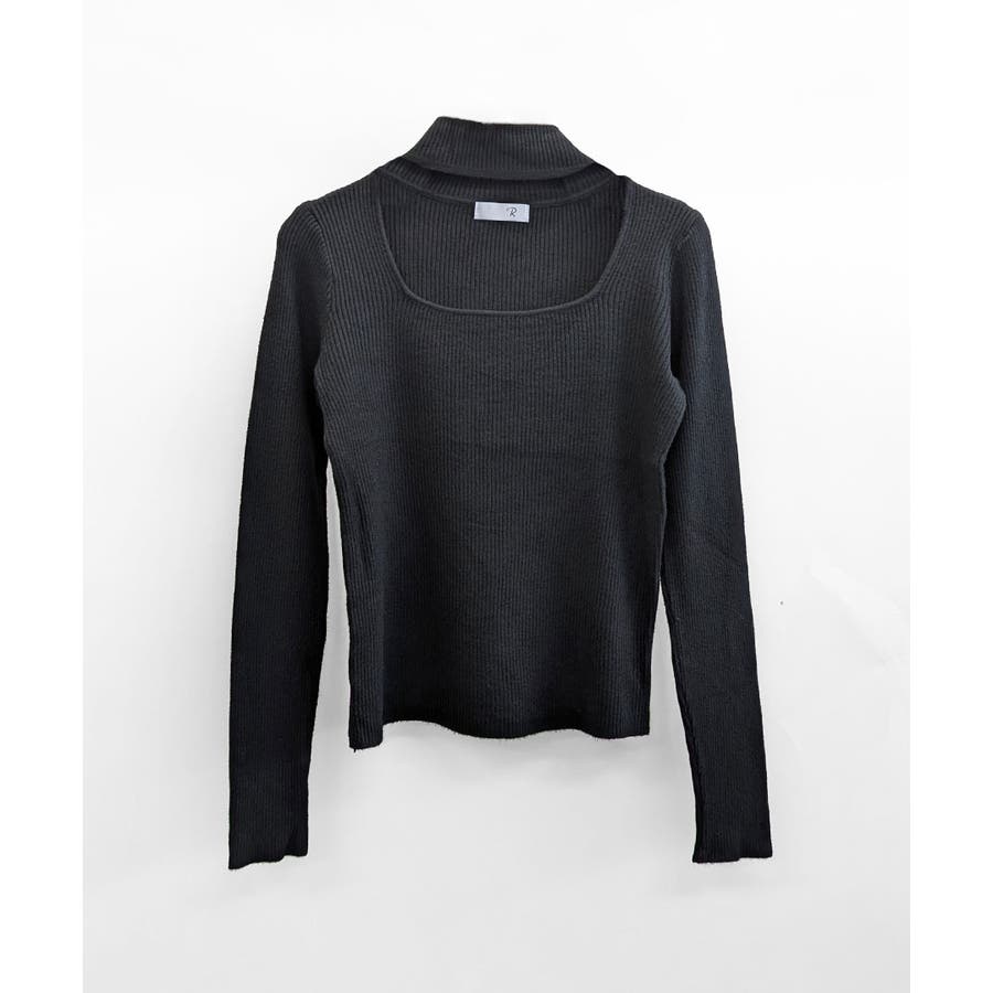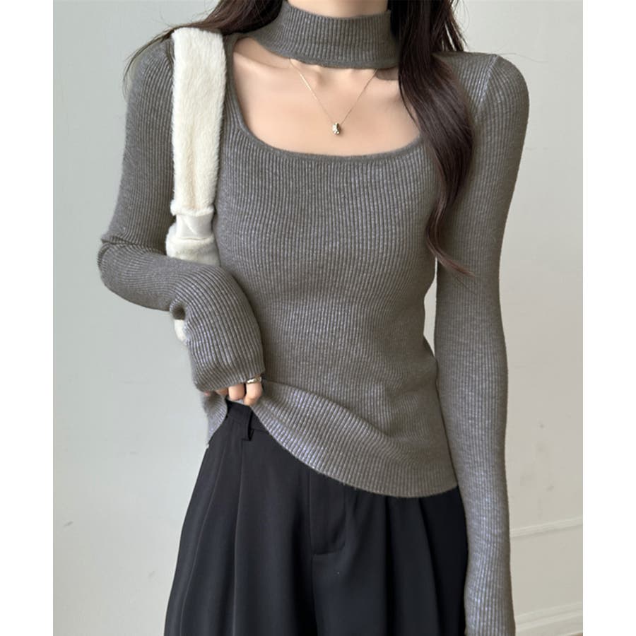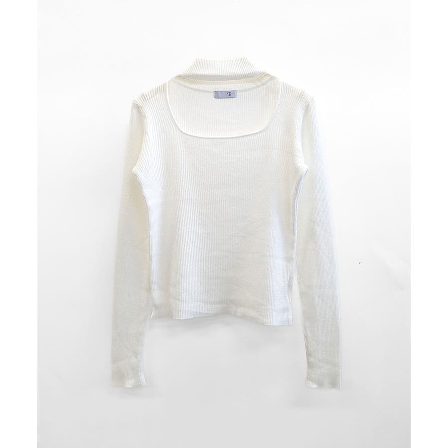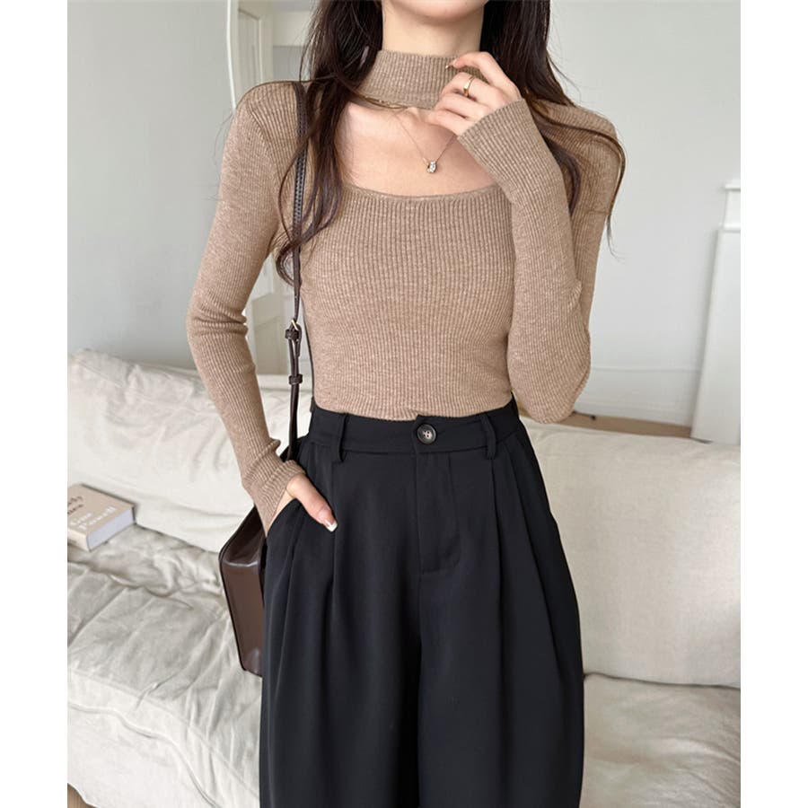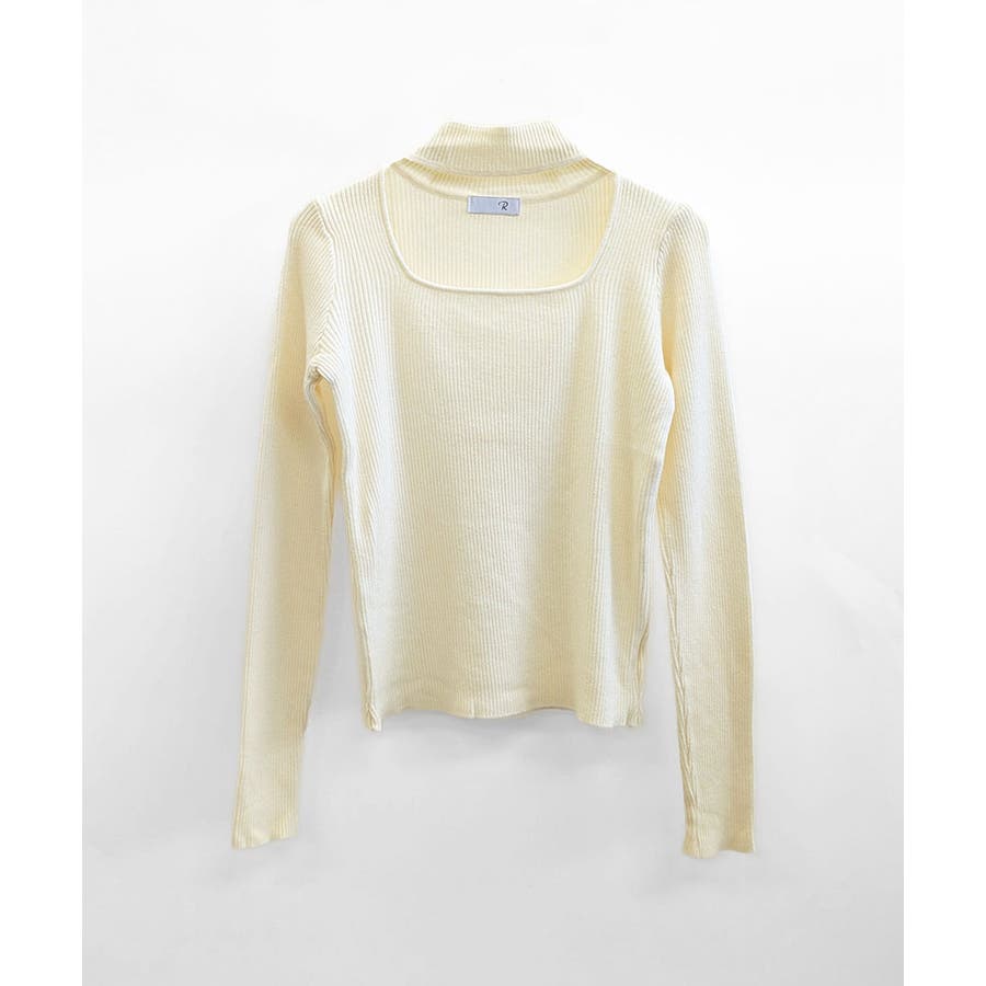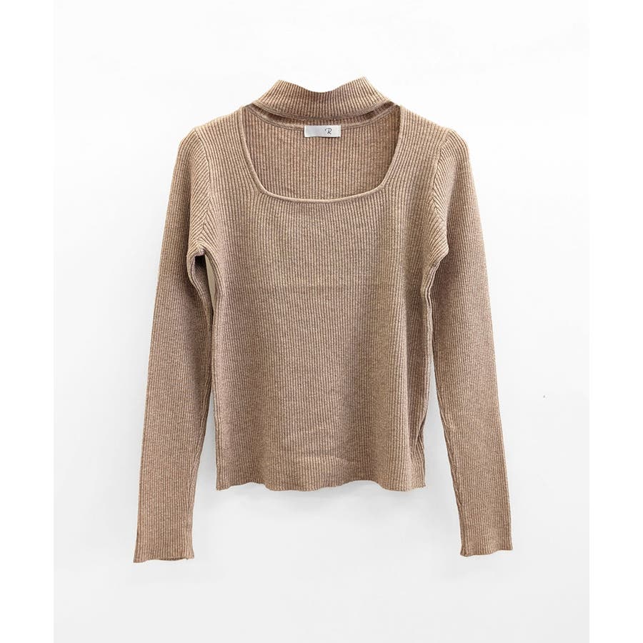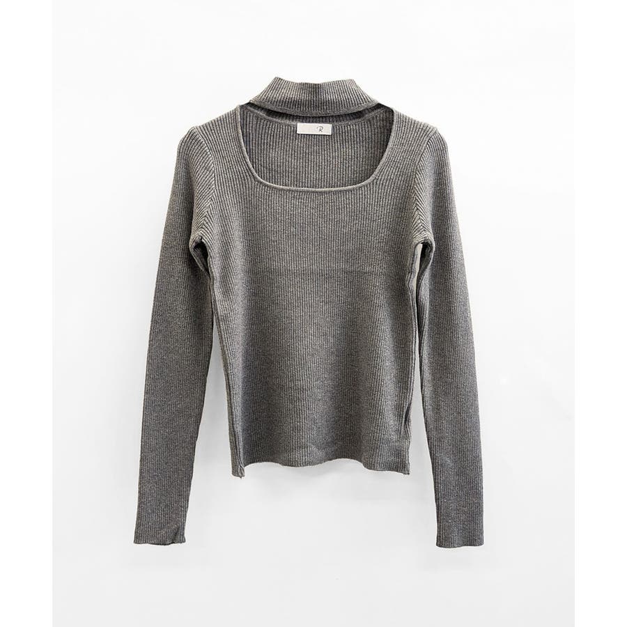ハイネックデコルテ開きリブニット リブ編み セーター