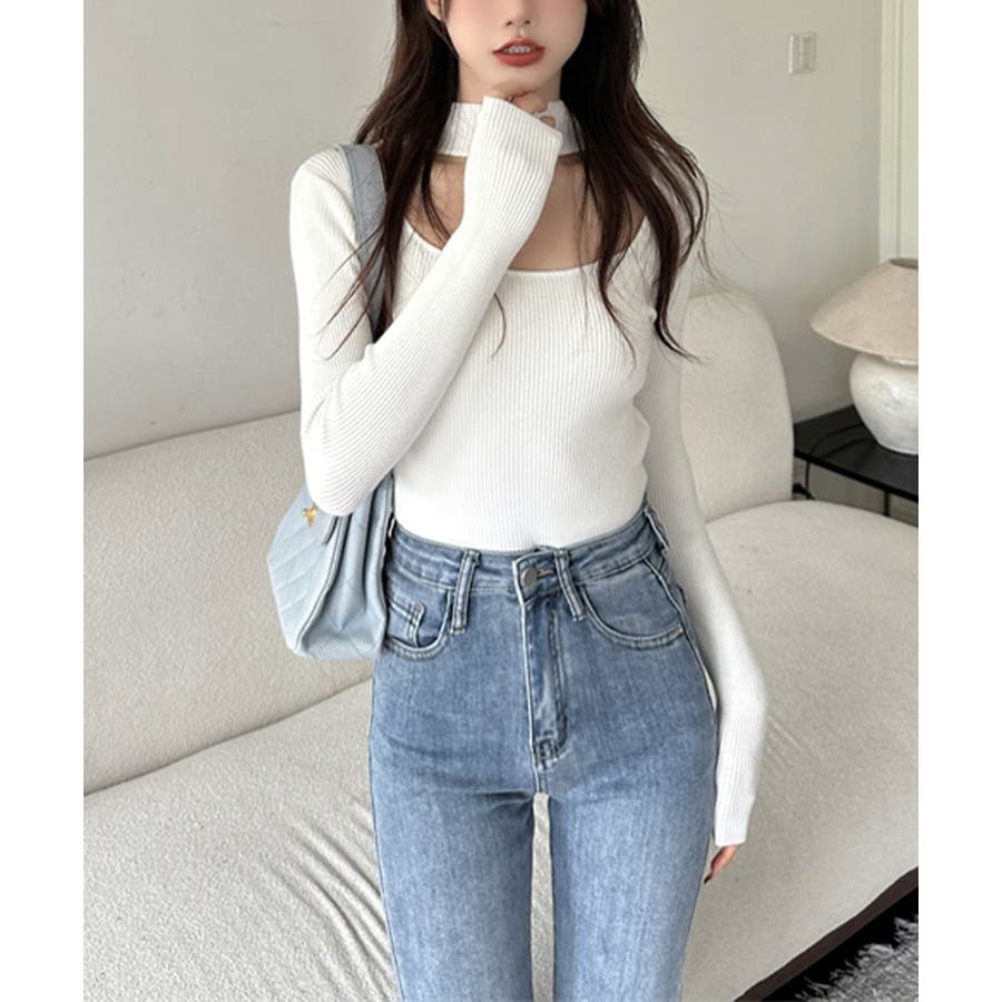 ・ハイウエストボトムと合わせるとよりスタイルアップ。