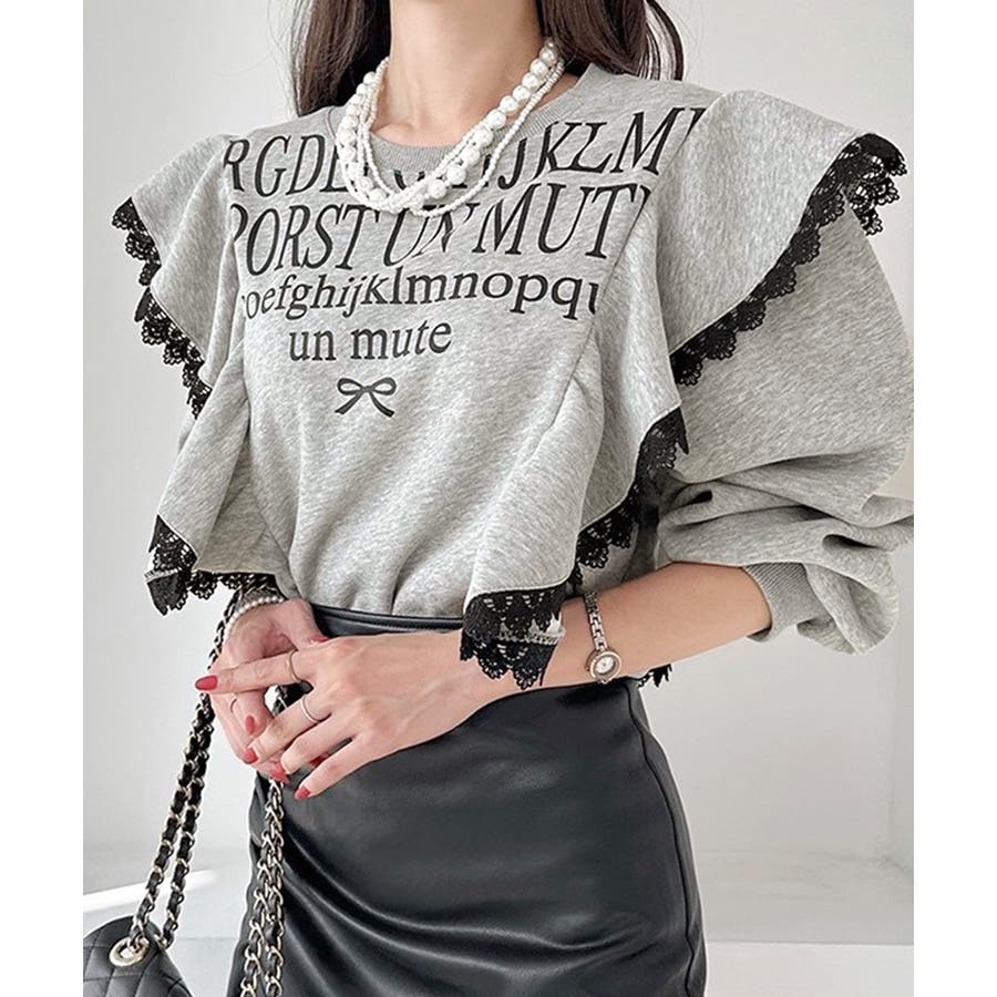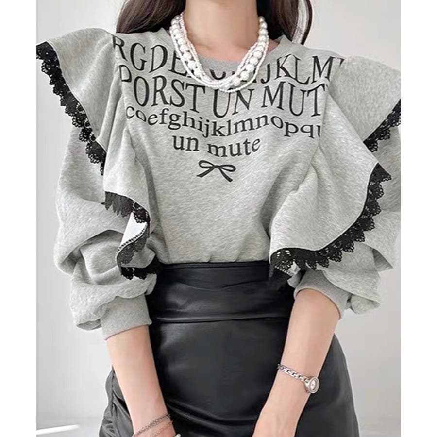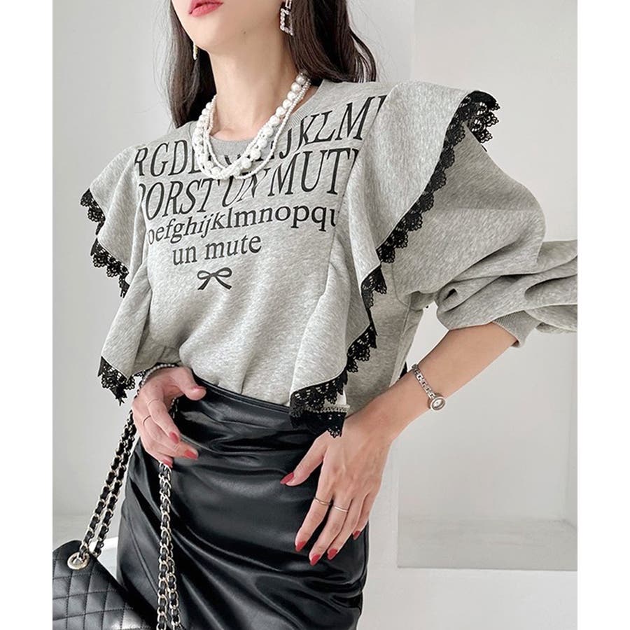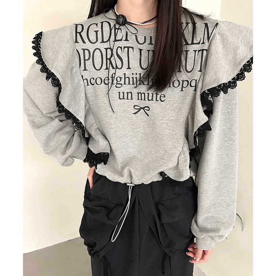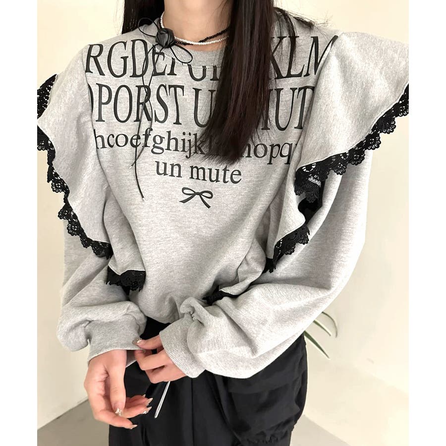 レタリングフリルスウェット トレーナー ロゴプリント