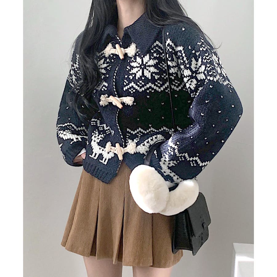 ノルディック柄ダッフルカーディガン ニットカーディガン セーター