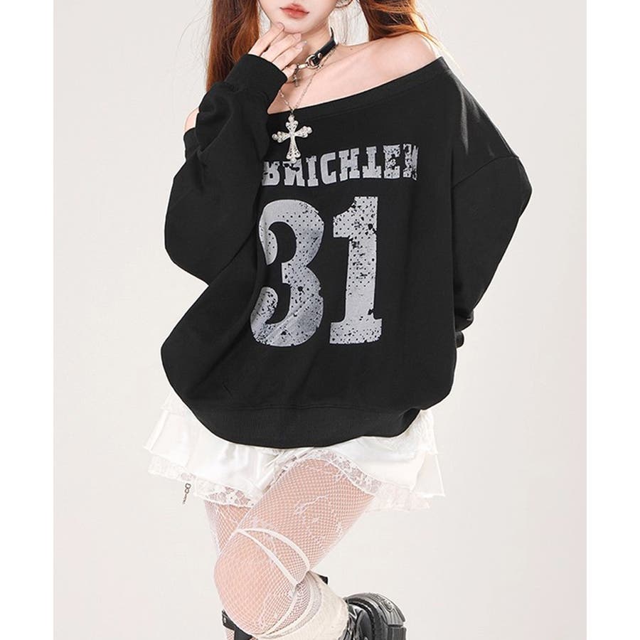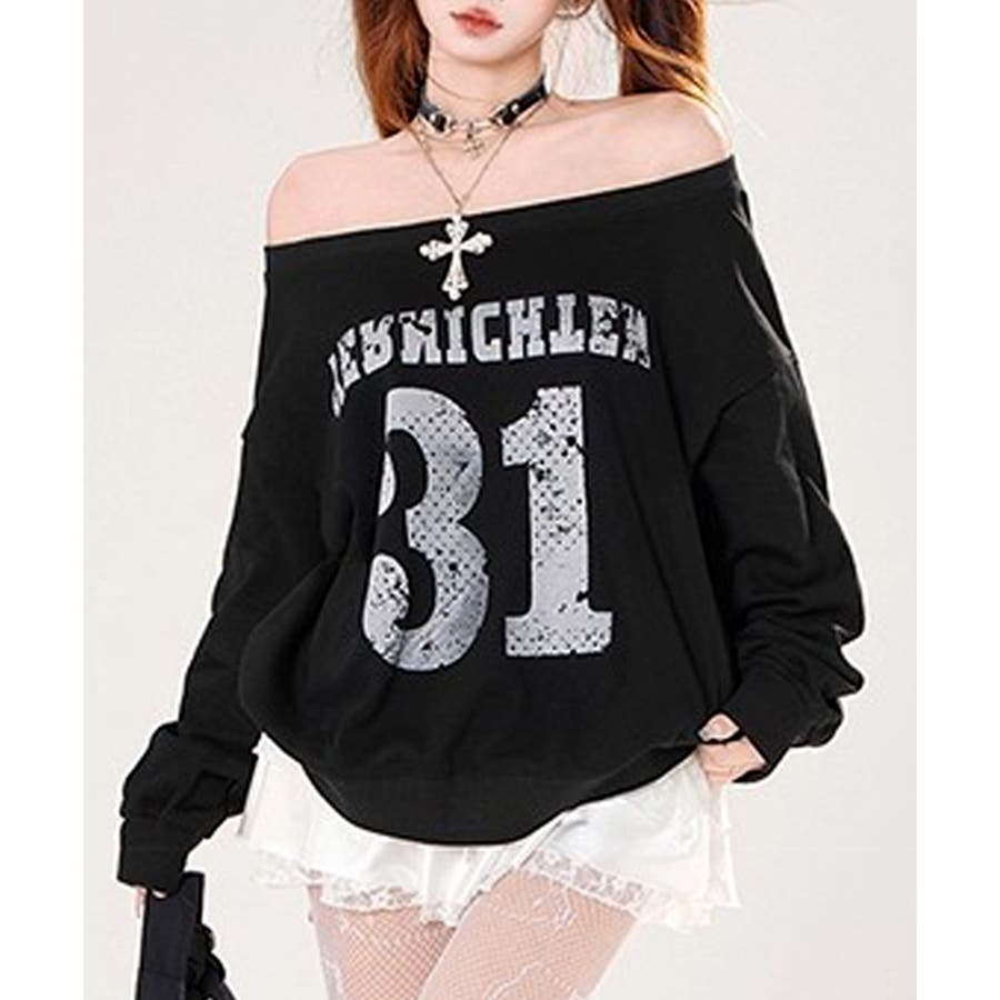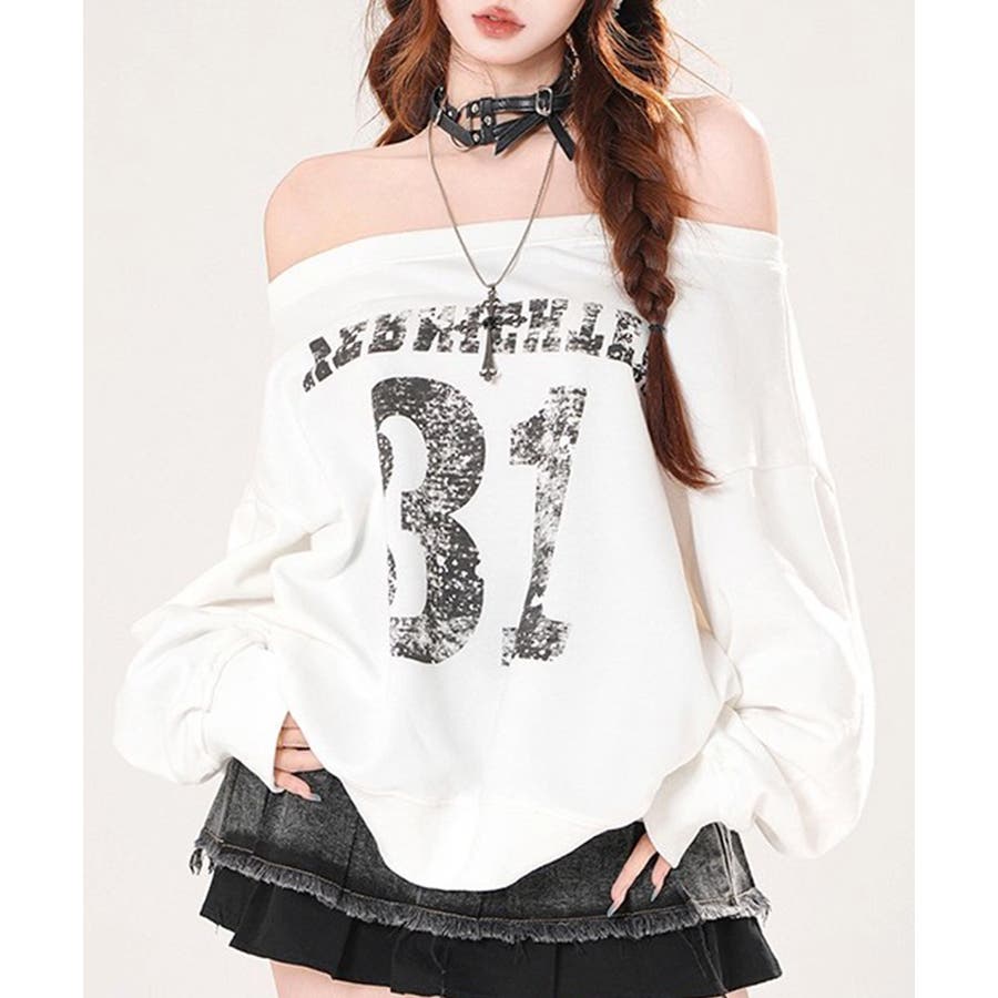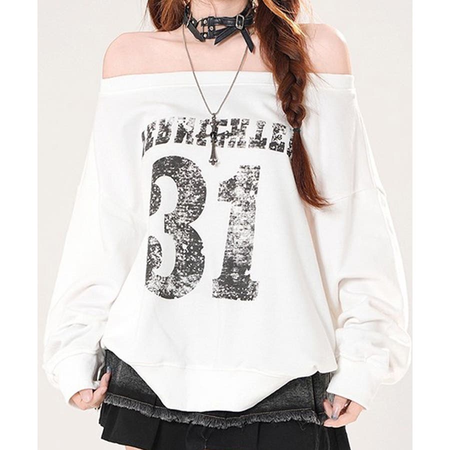 ナンバーロゴプリントオフショルスウェット ワンショル トレーナー