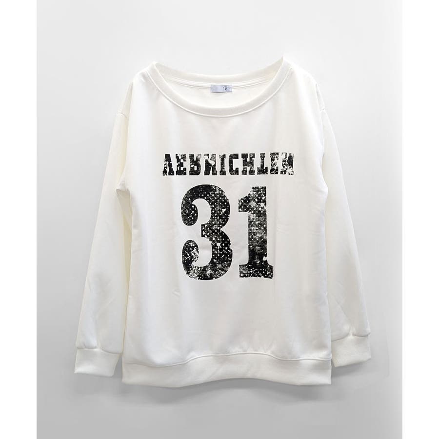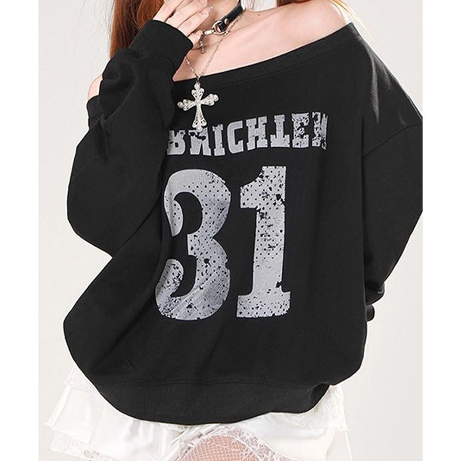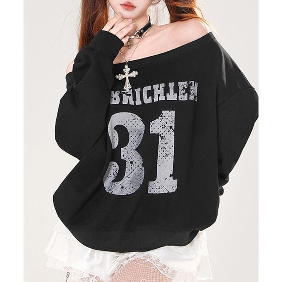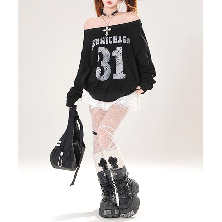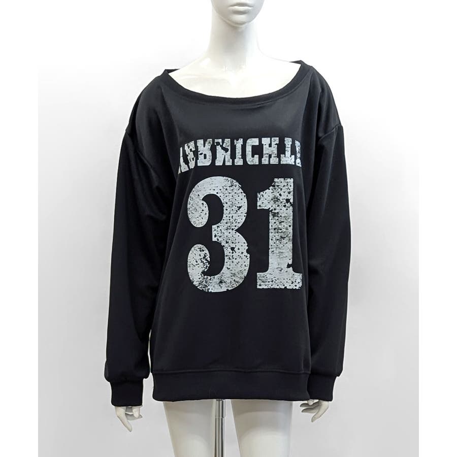 ナンバーロゴプリントオフショルスウェット ワンショル トレーナー