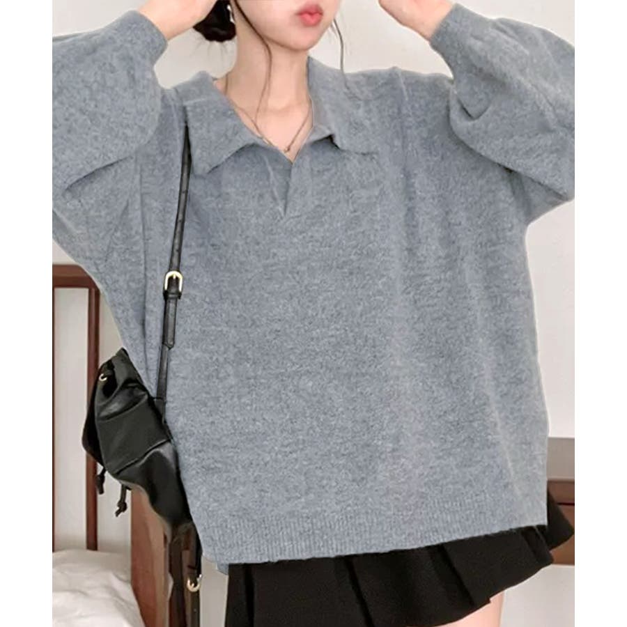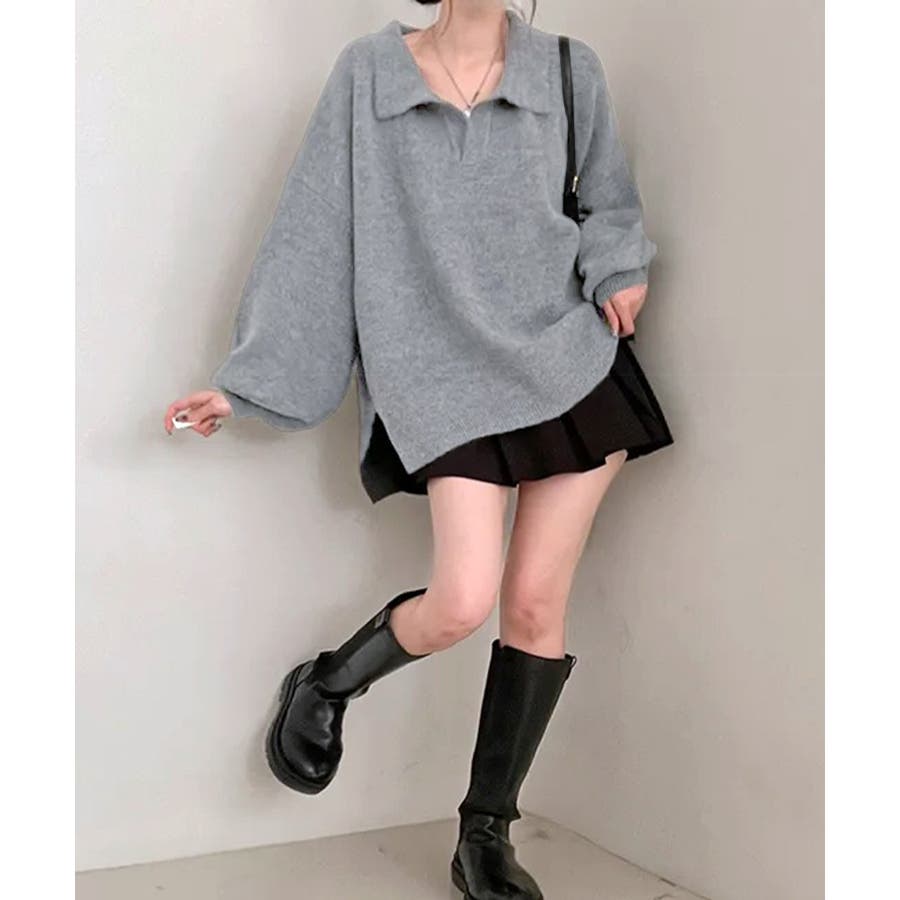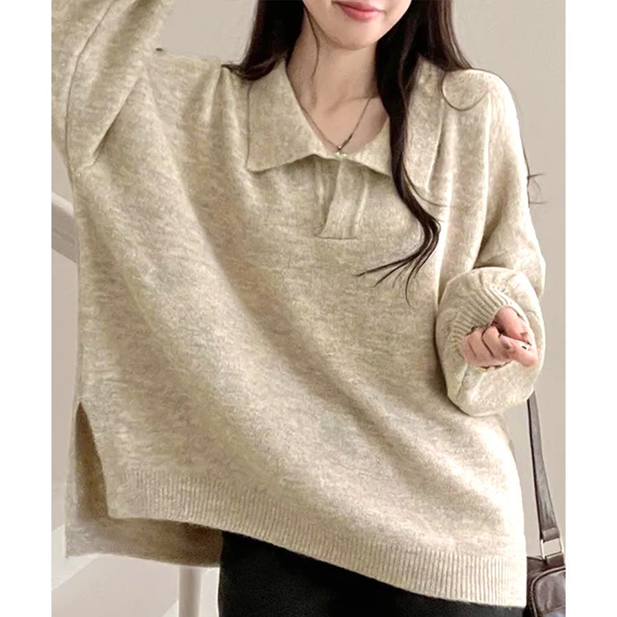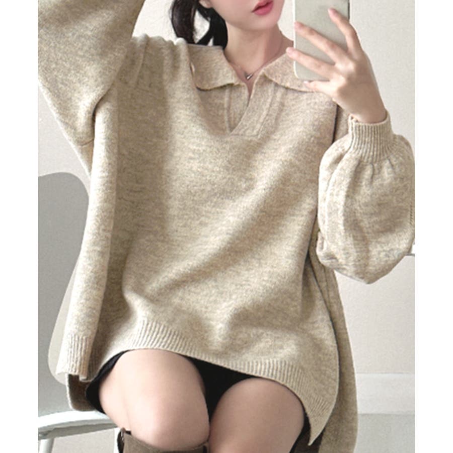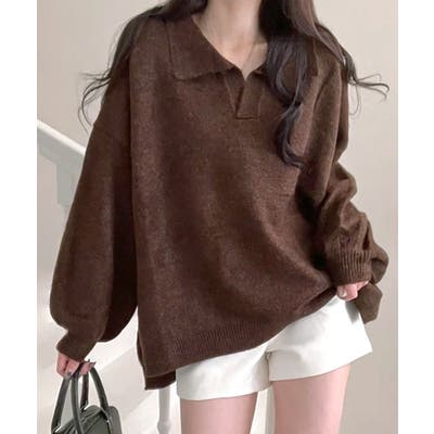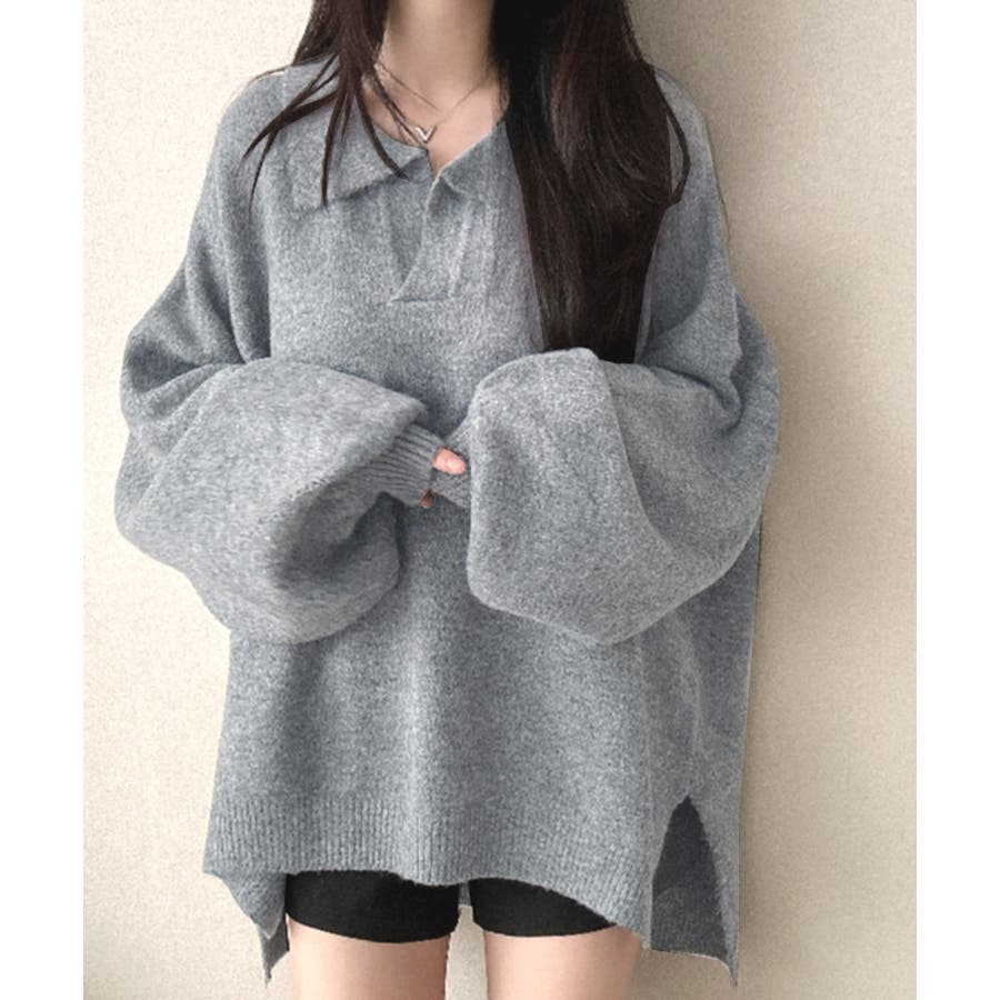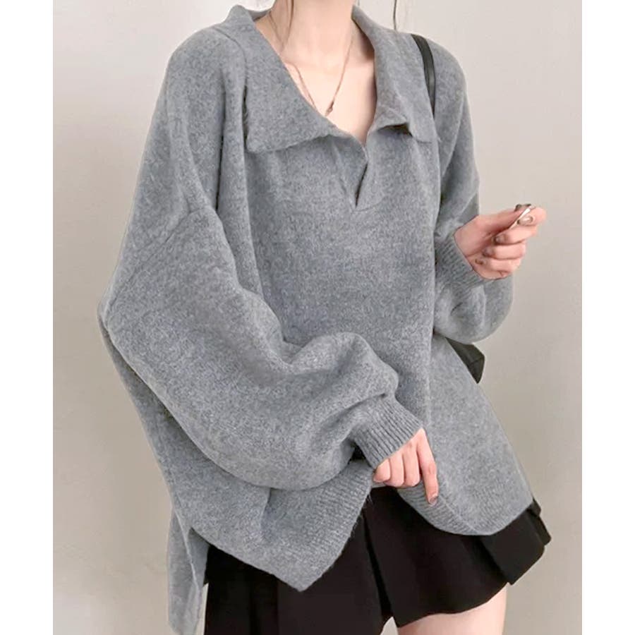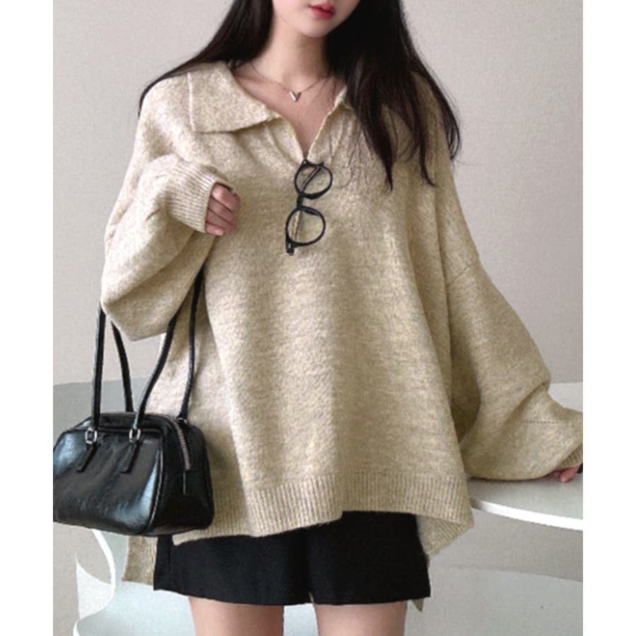ポロ襟風ニットプルオーバー セーター オーバーサイズ