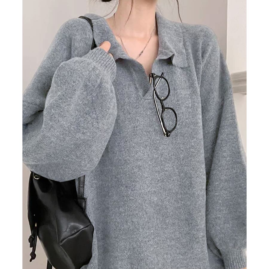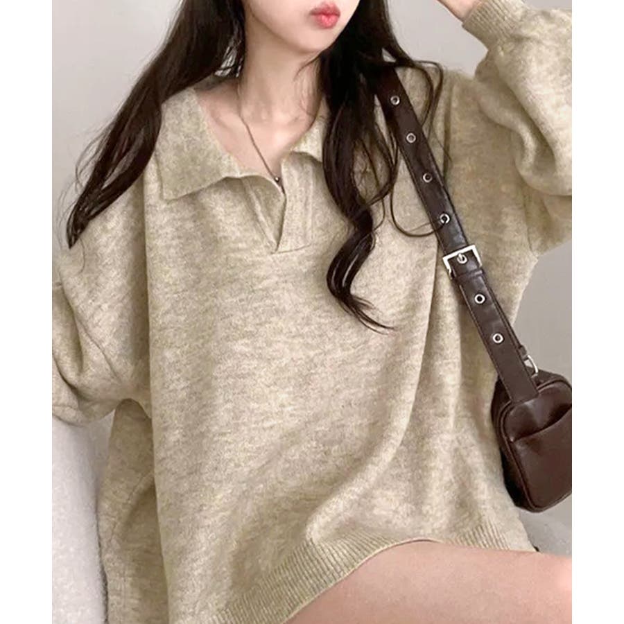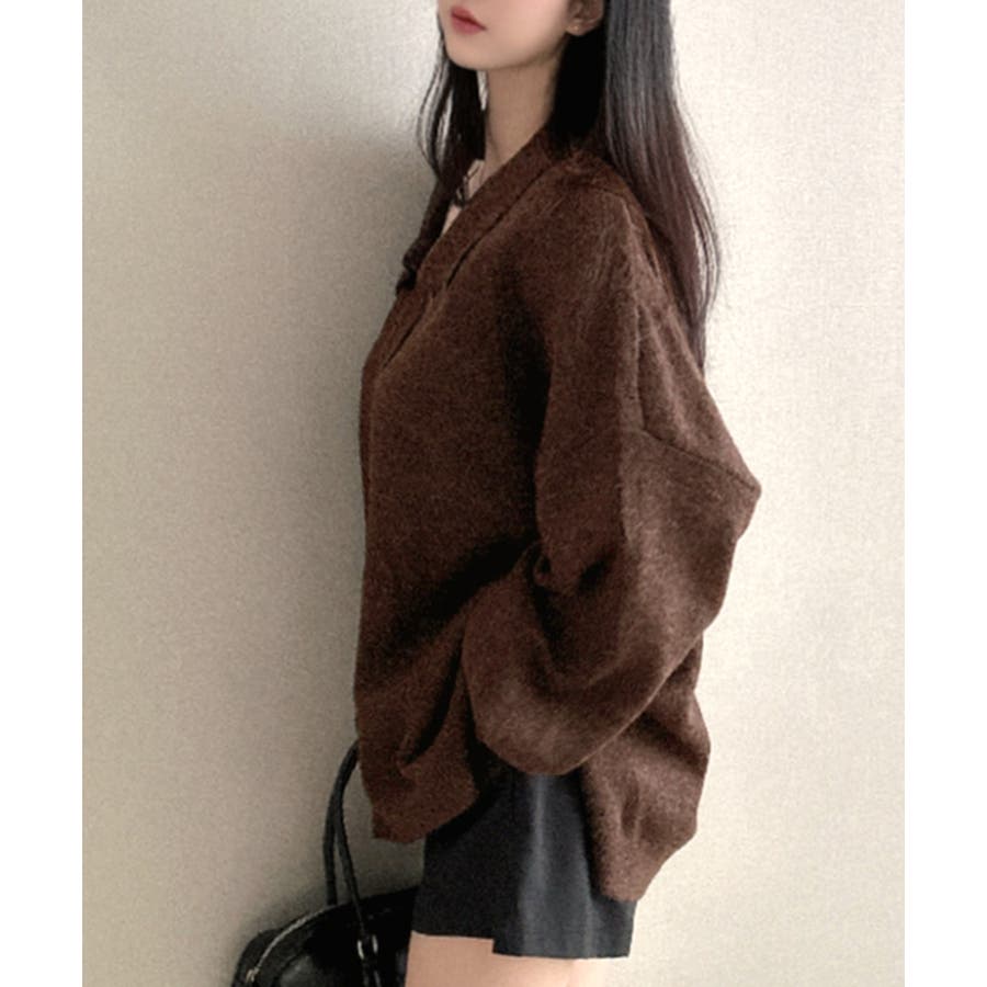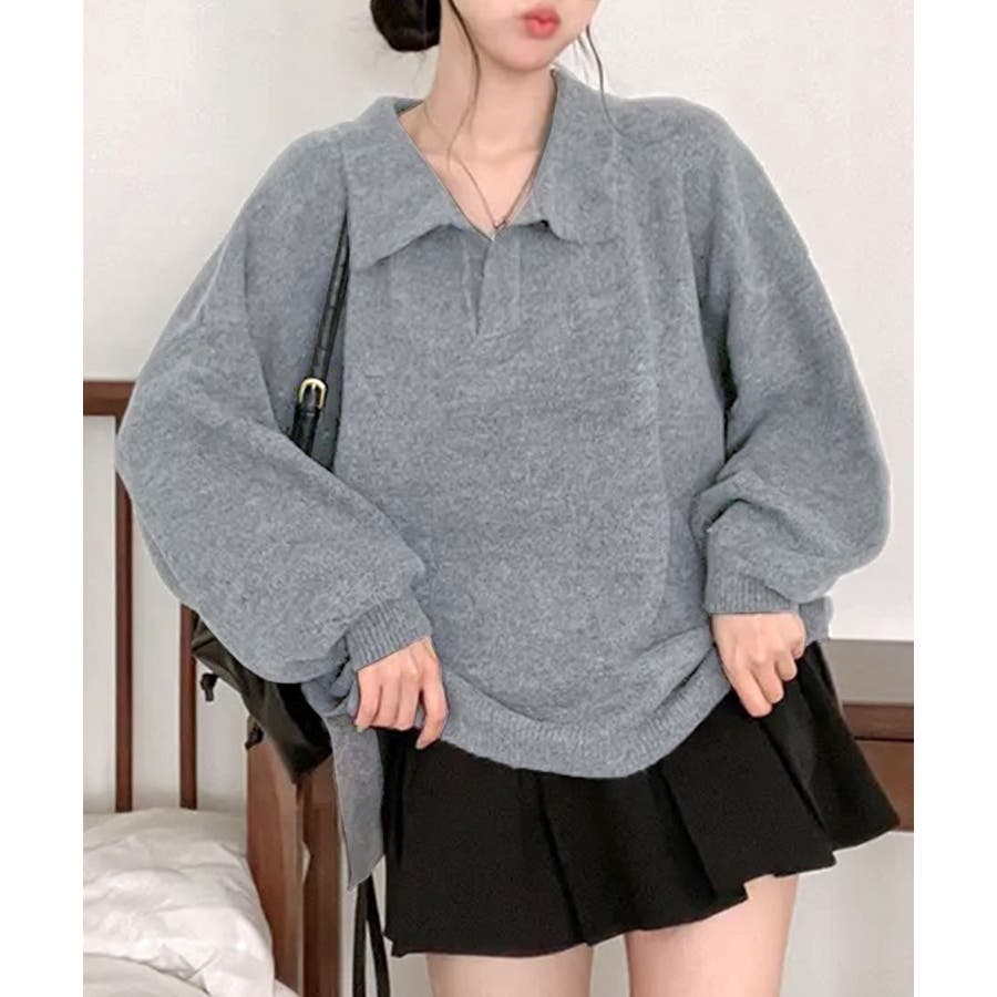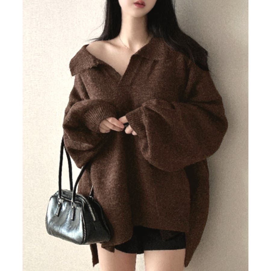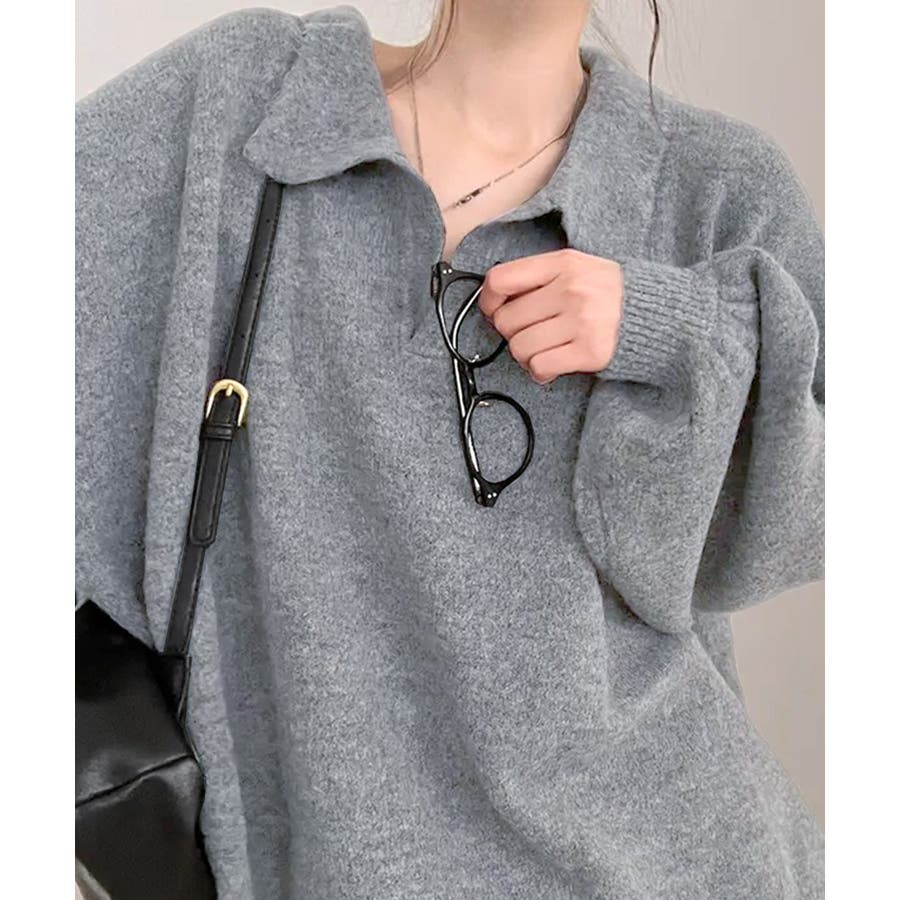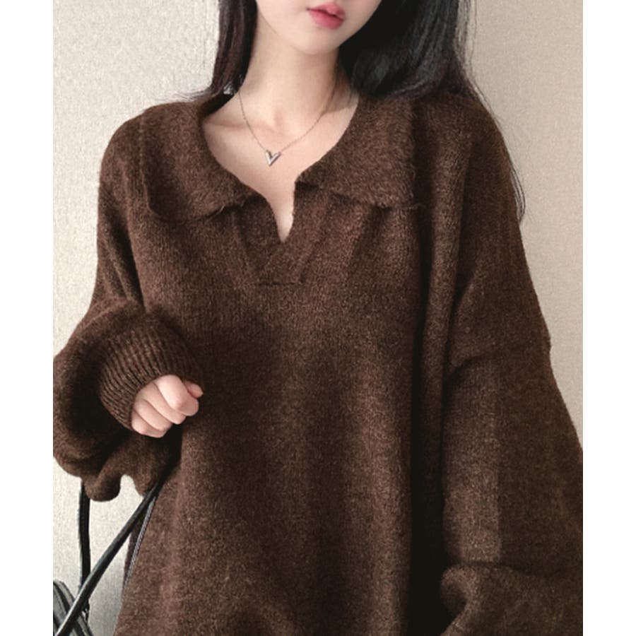 ポロ襟風ニットプルオーバー セーター オーバーサイズ