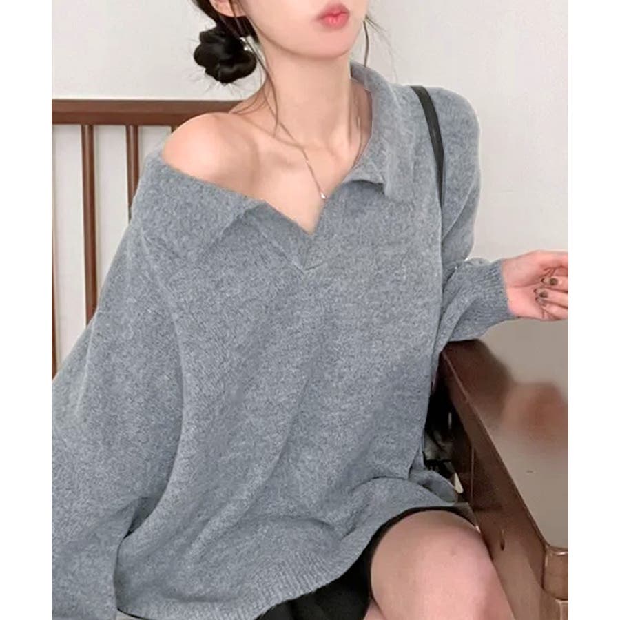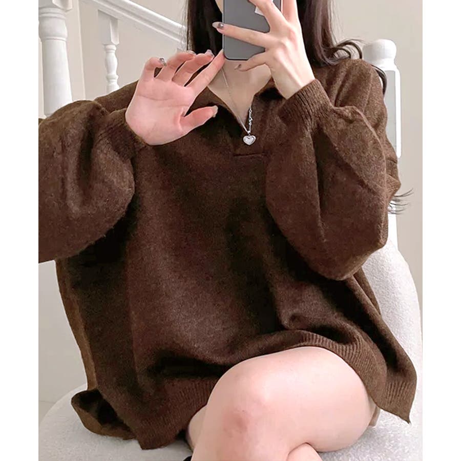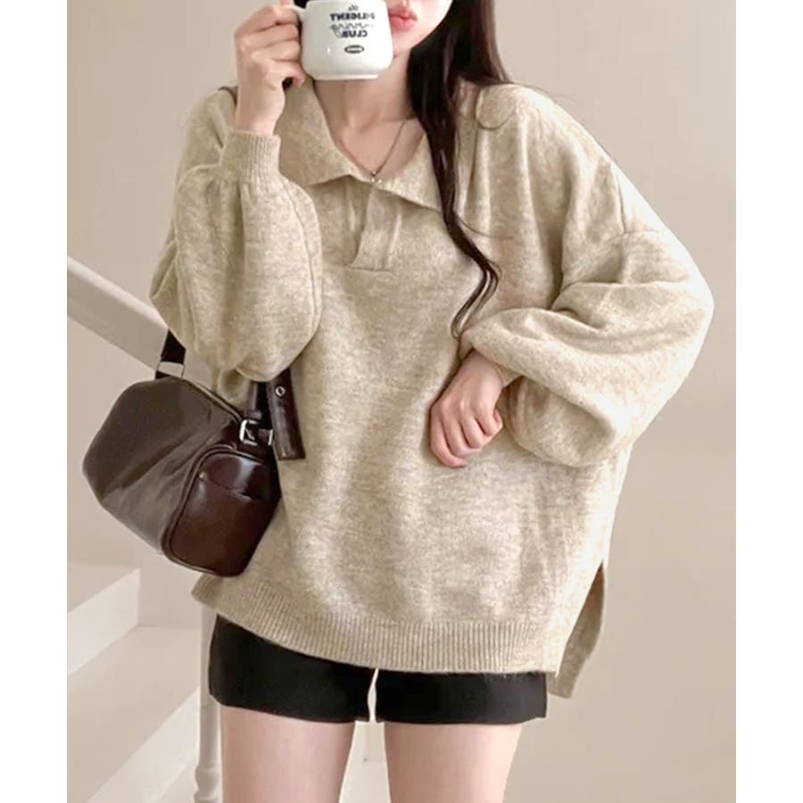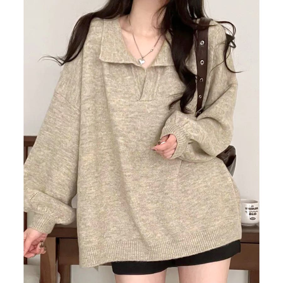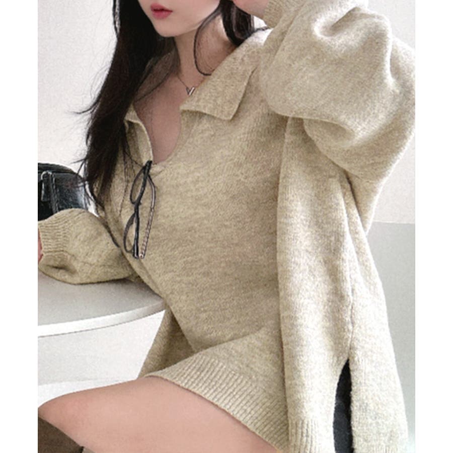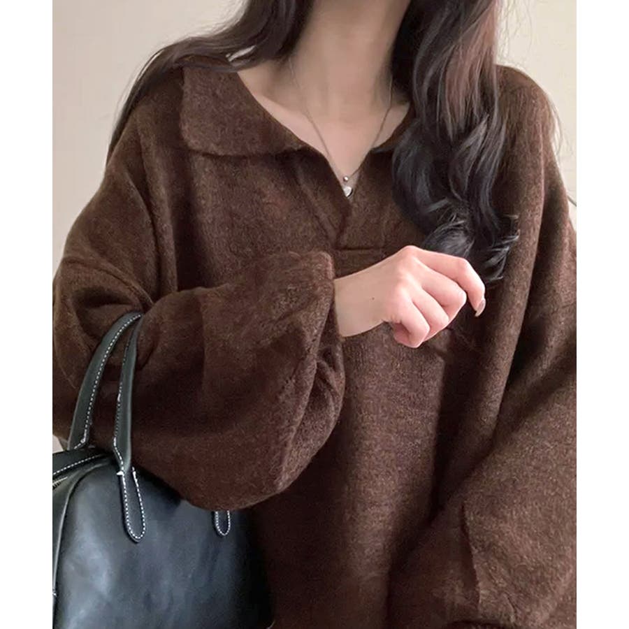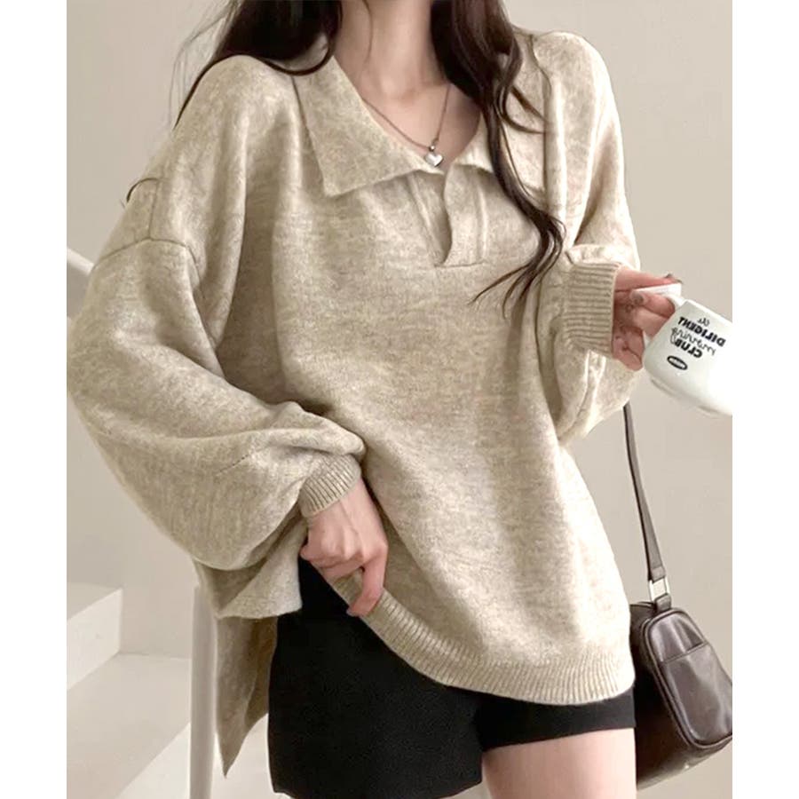 ポロ襟風ニットプルオーバー セーター オーバーサイズ