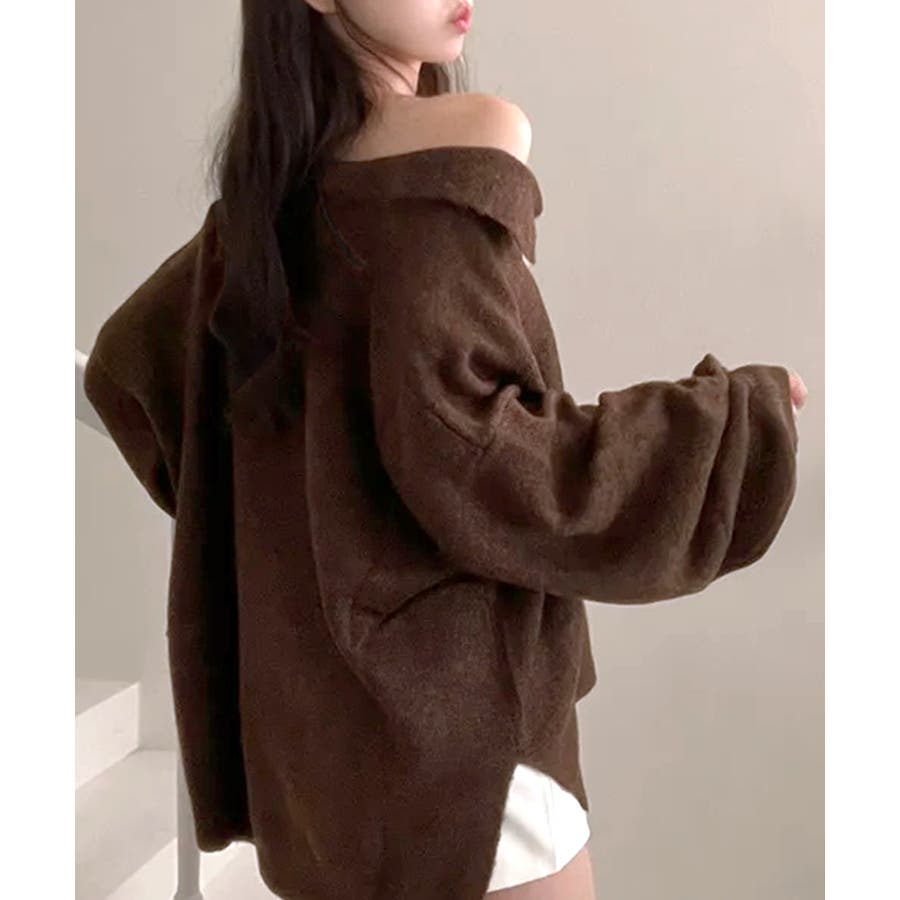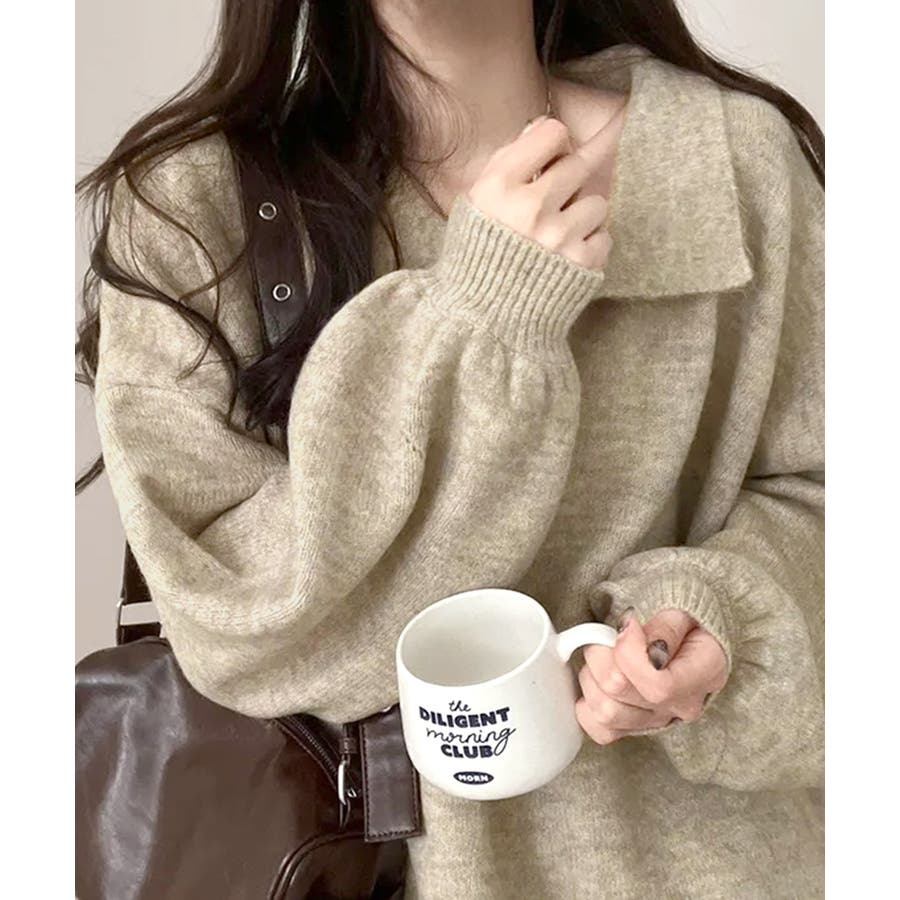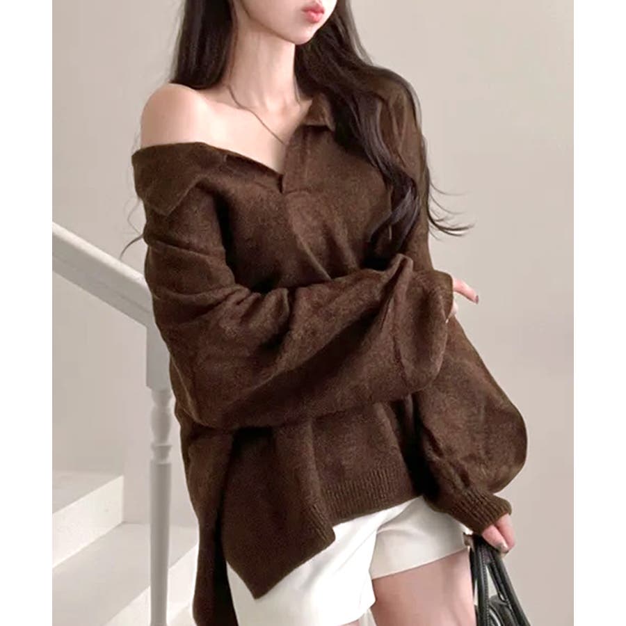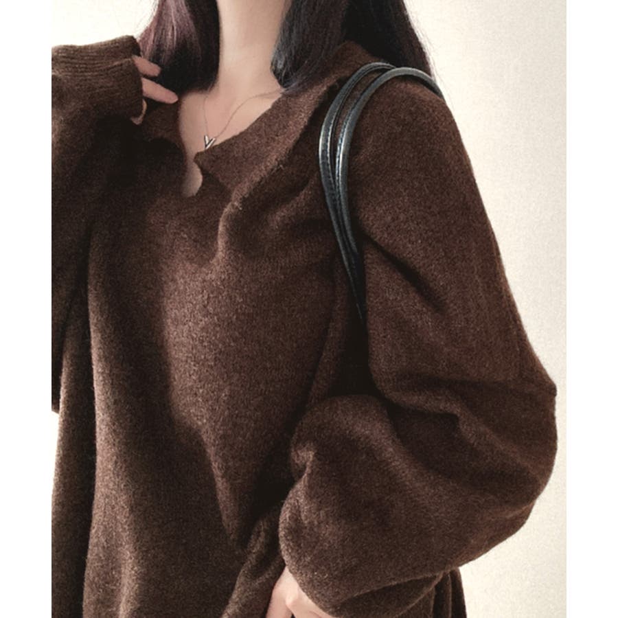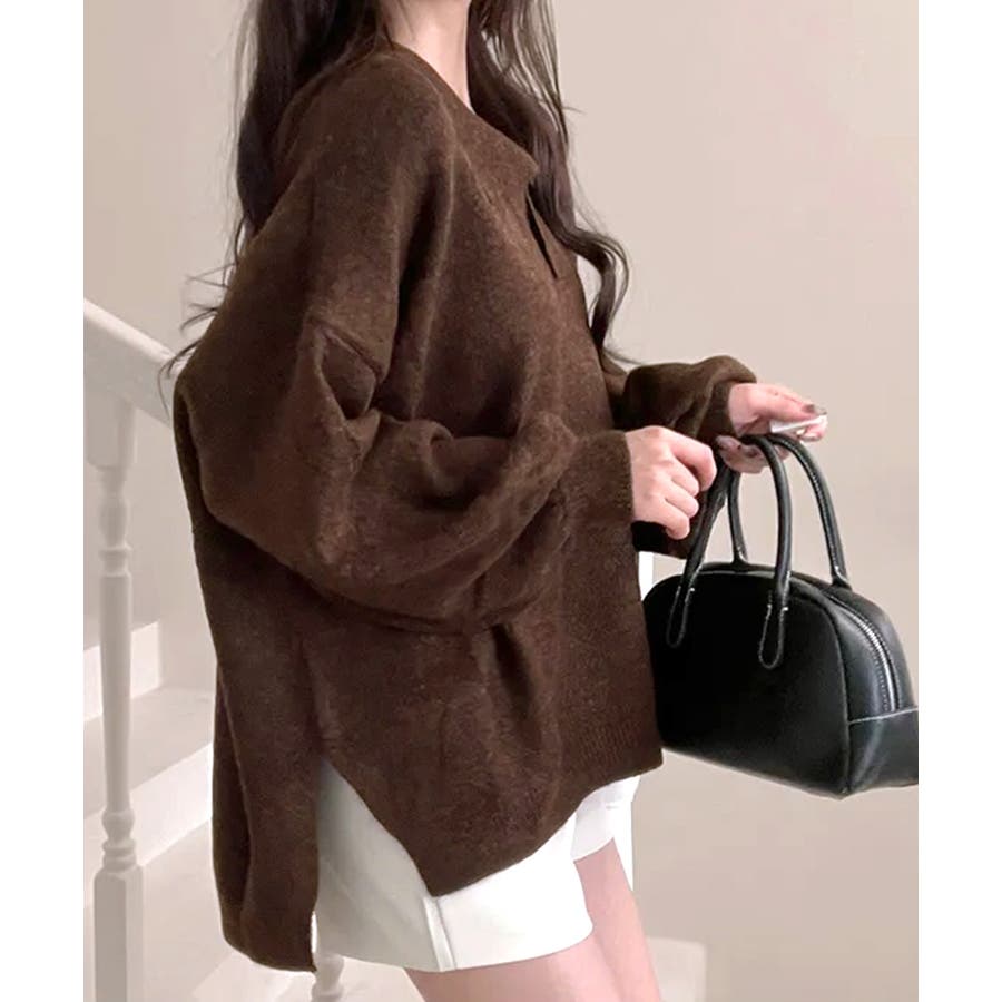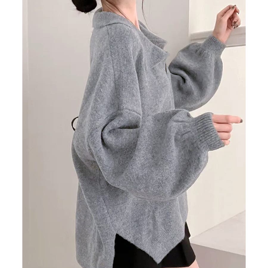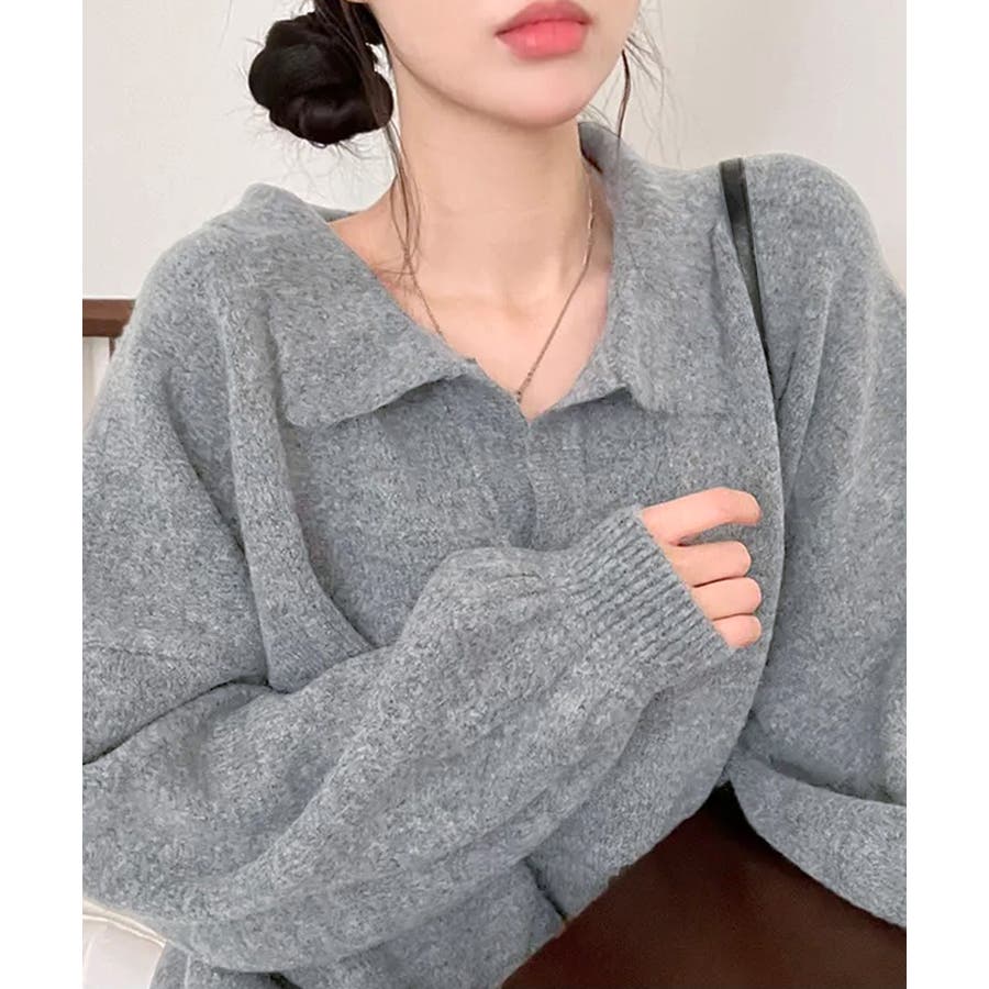 ポロ襟風ニットプルオーバー セーター オーバーサイズ