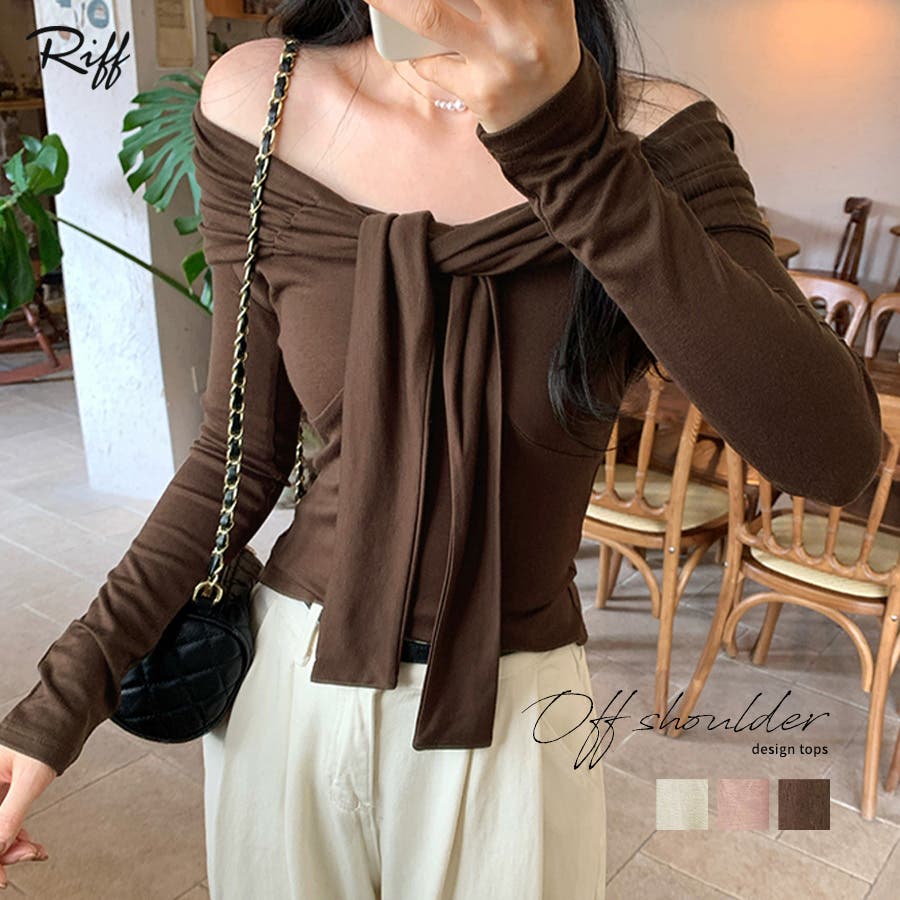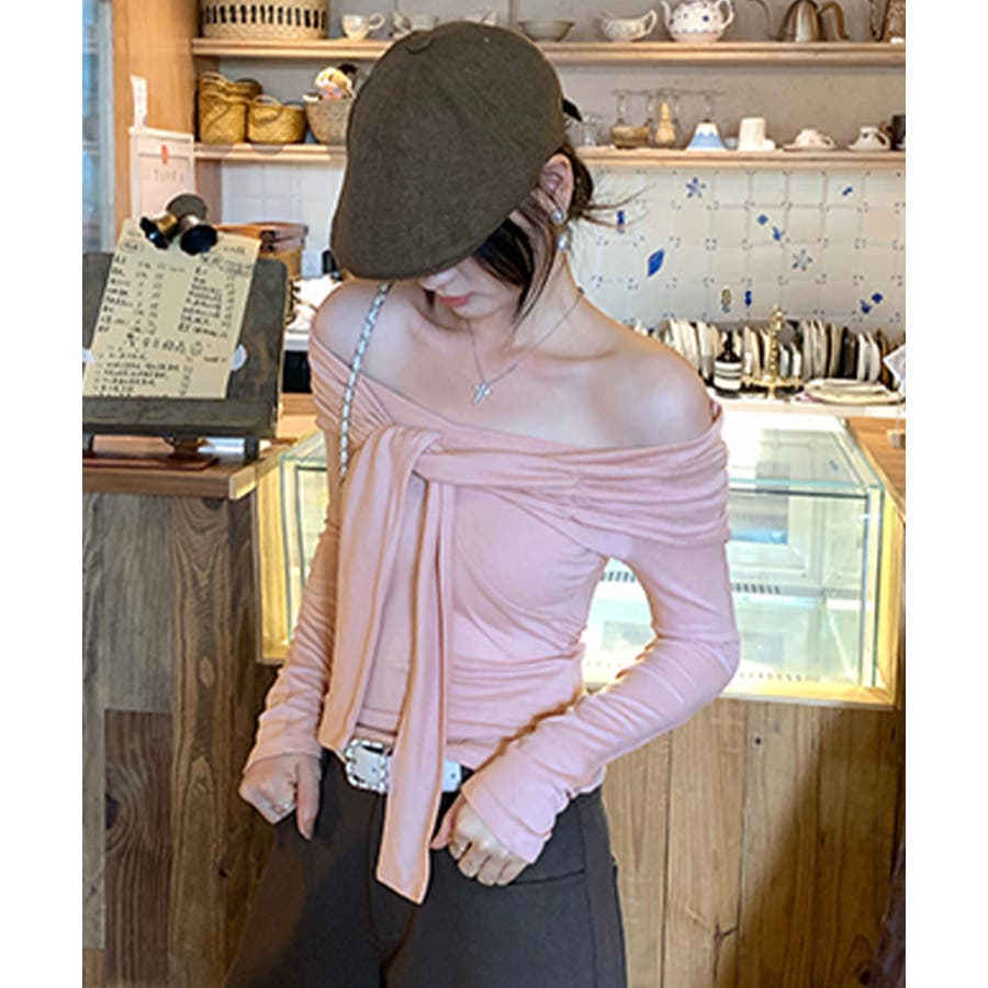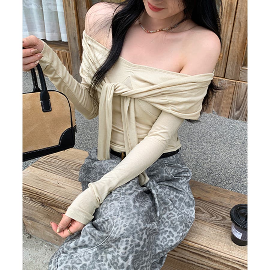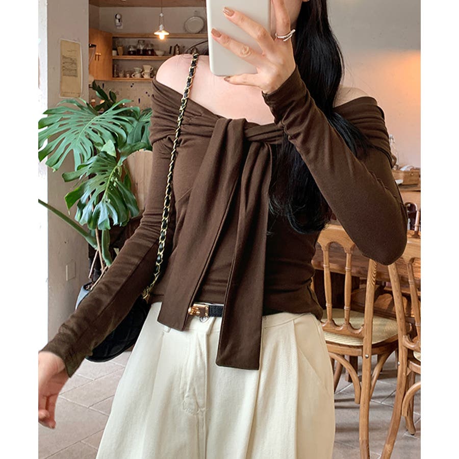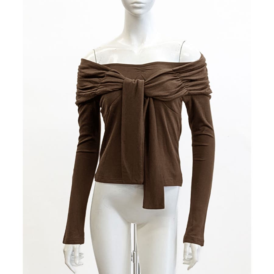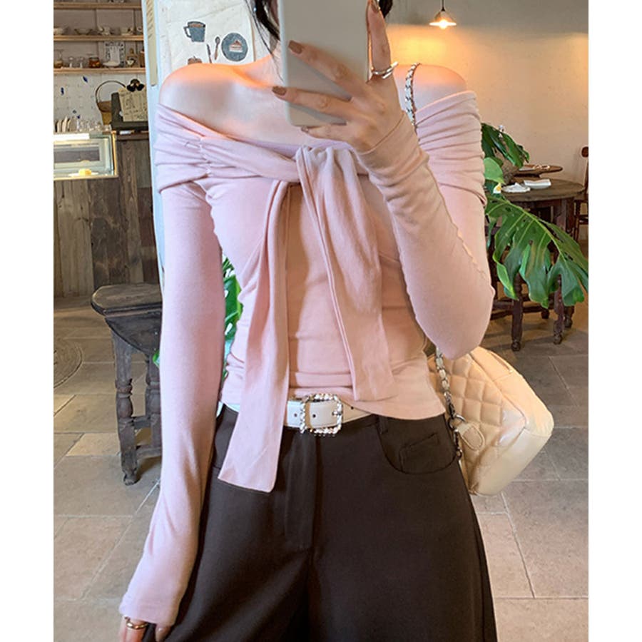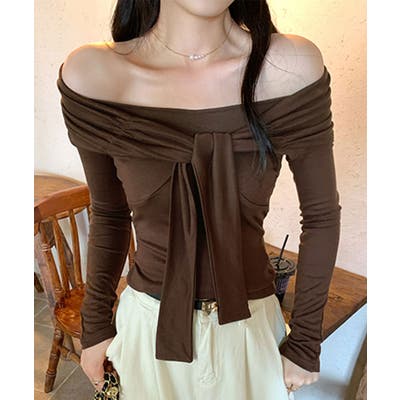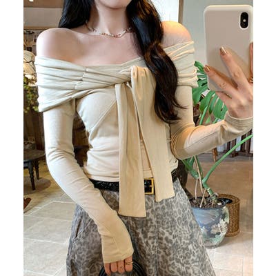 オフショルフロントリボントップス