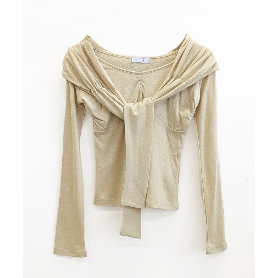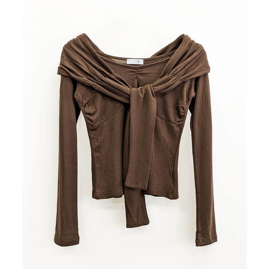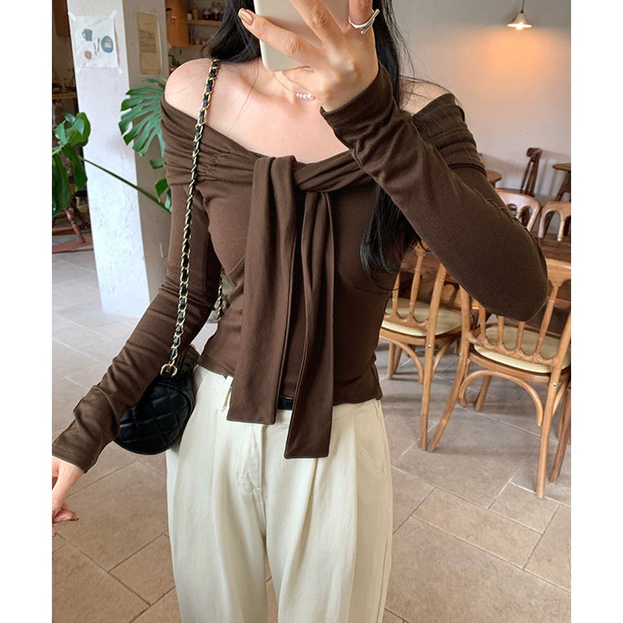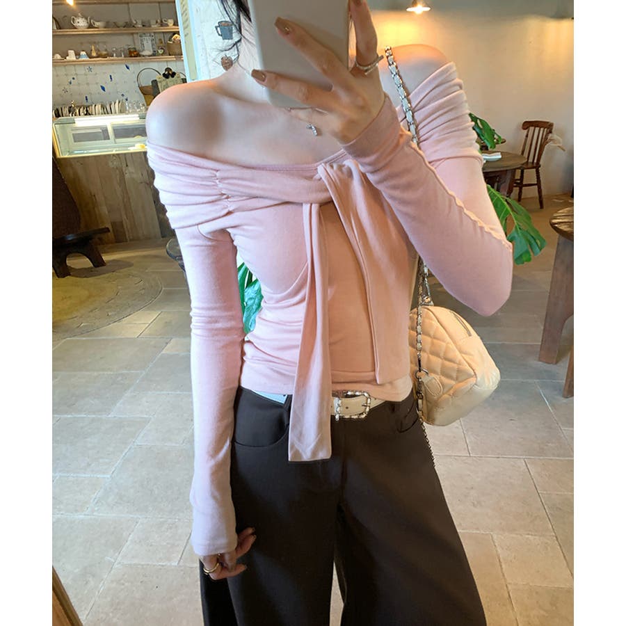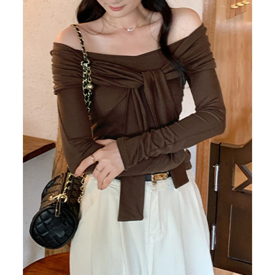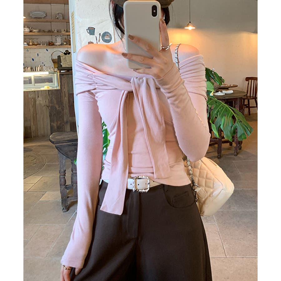 オフショルフロントリボントップス