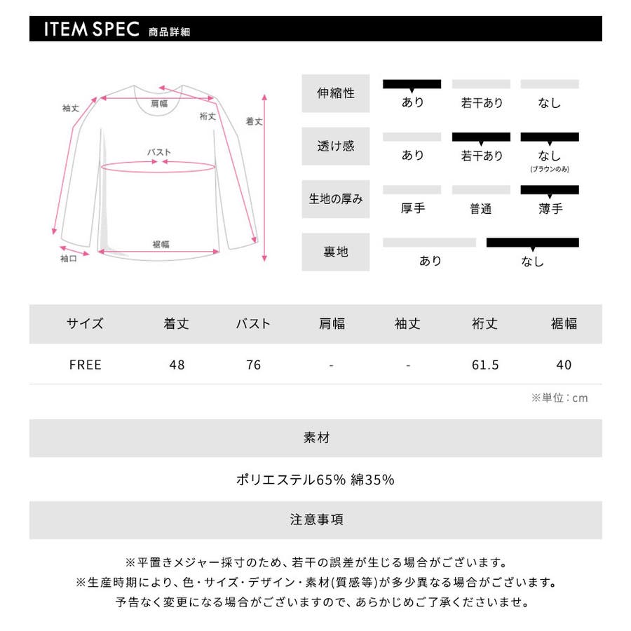 生地の厚み:薄手 / 裏地:なし