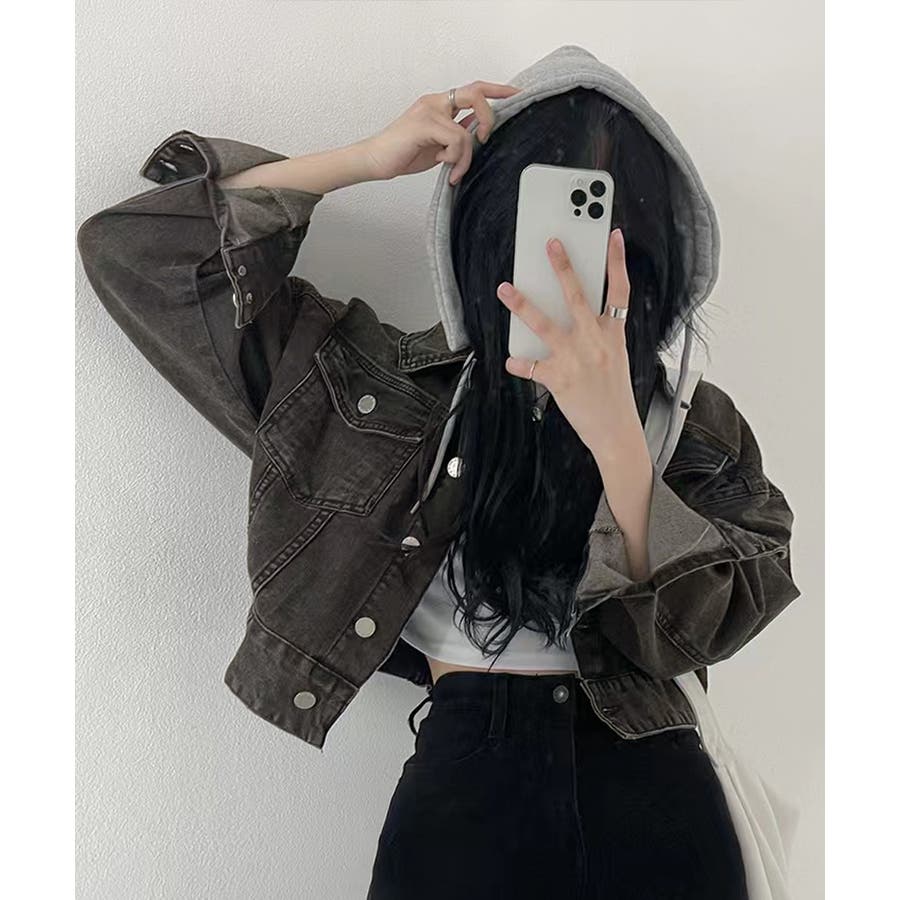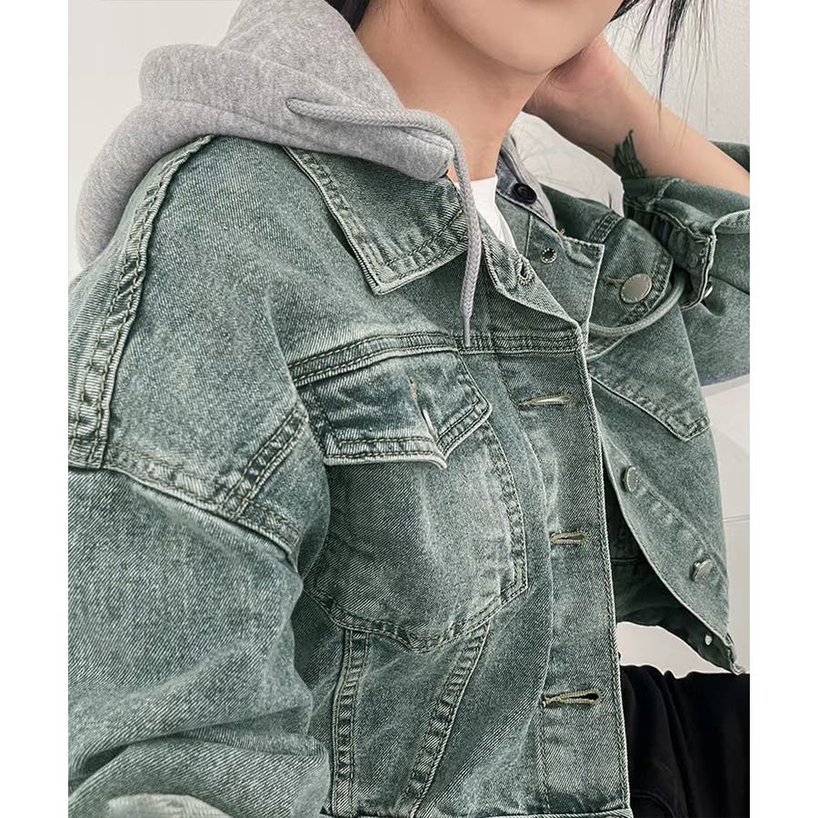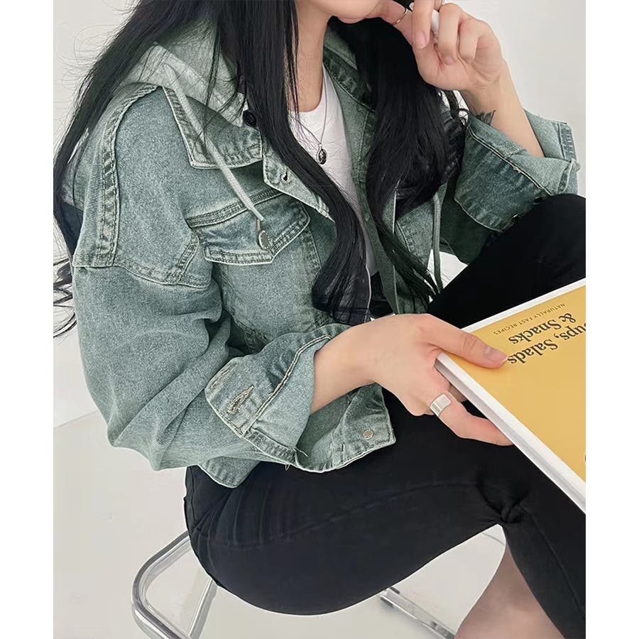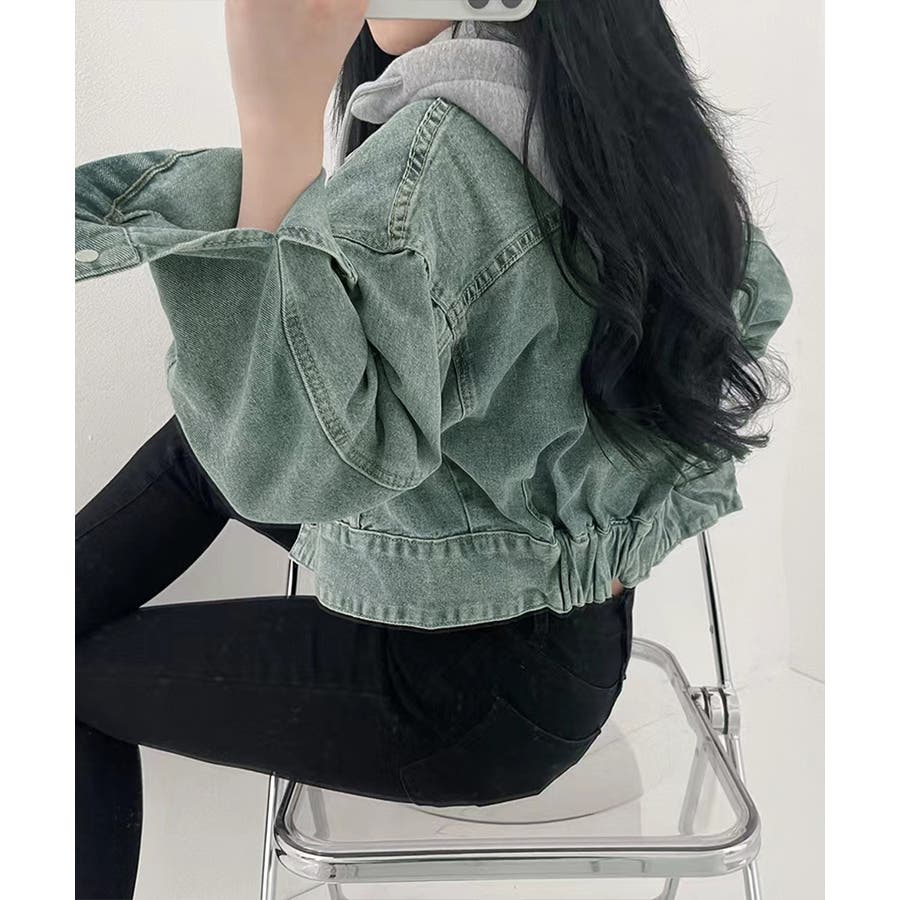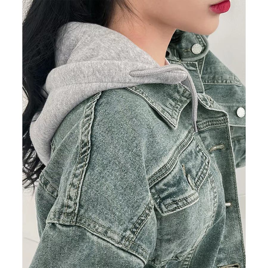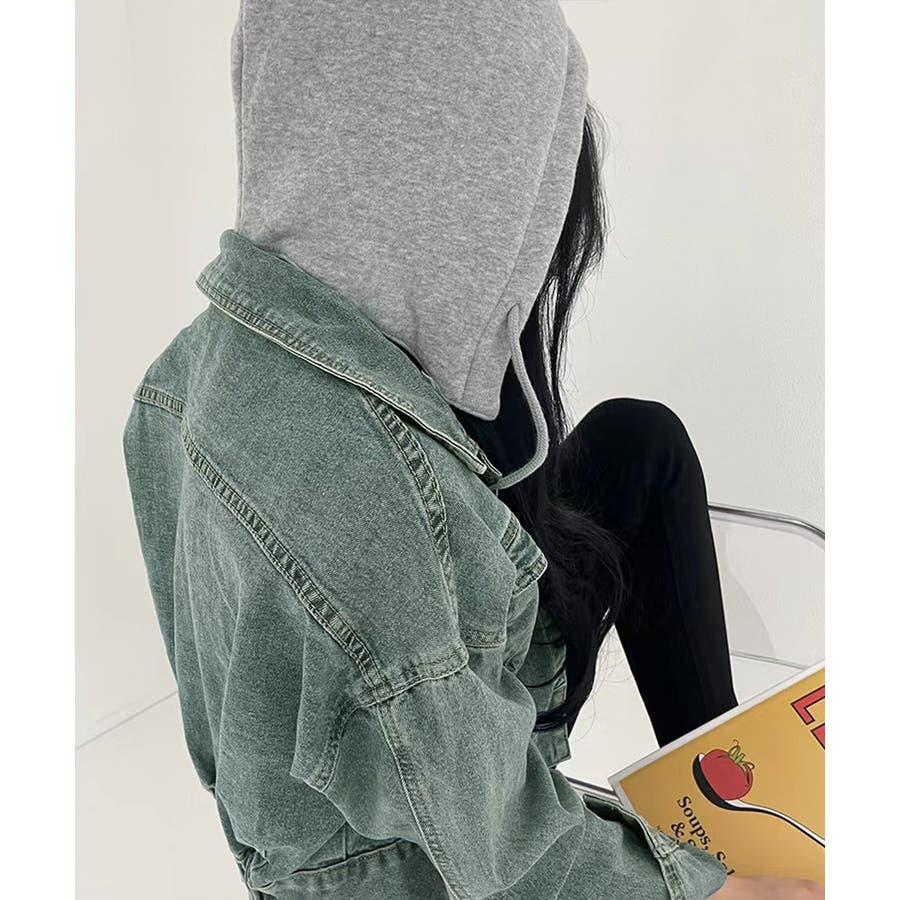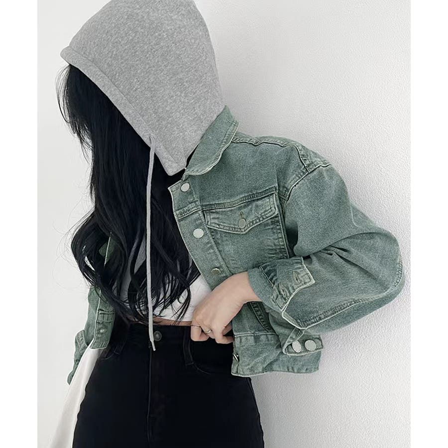 クロップドフード付きデニムジャケット Gジャン ジャンパー
