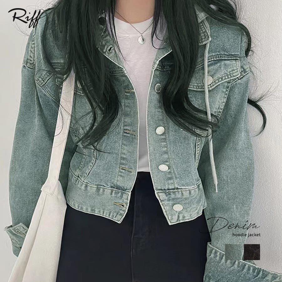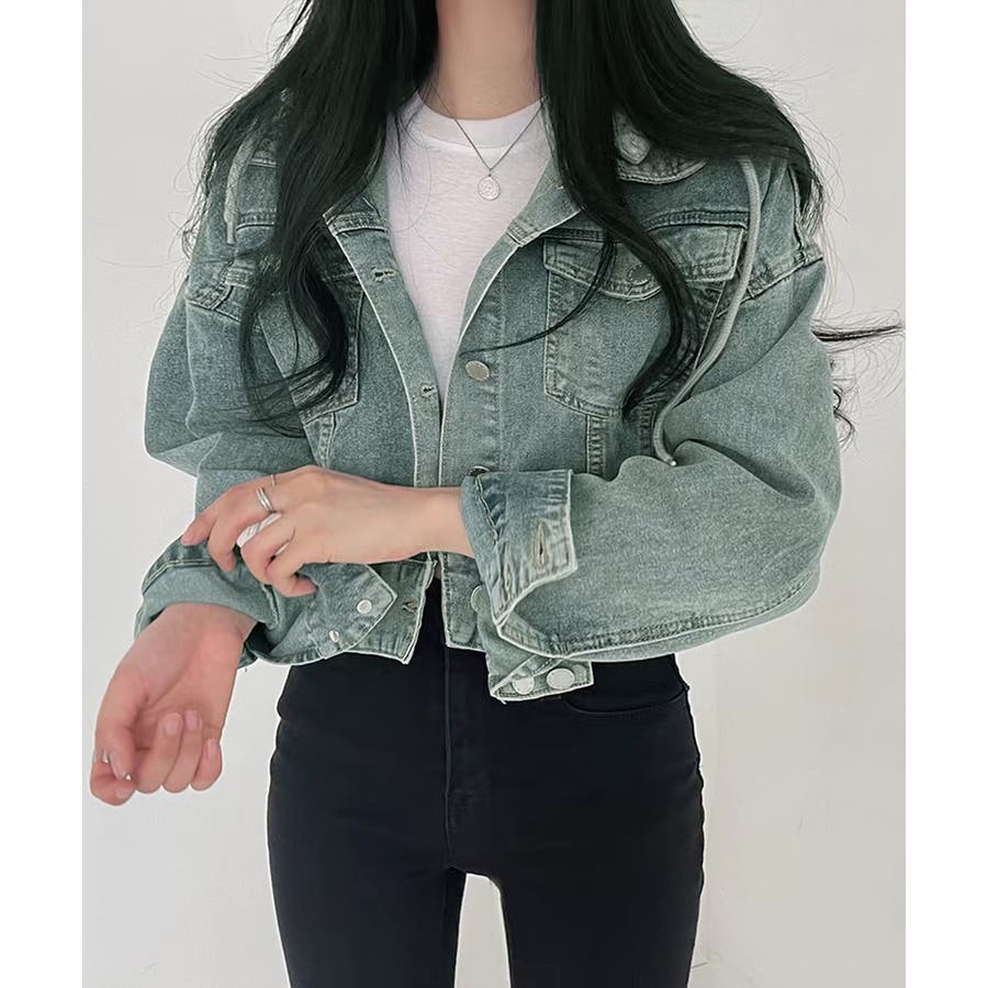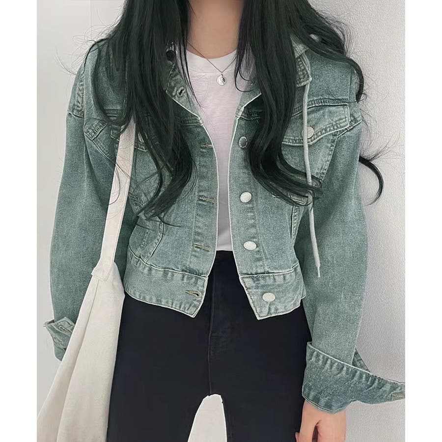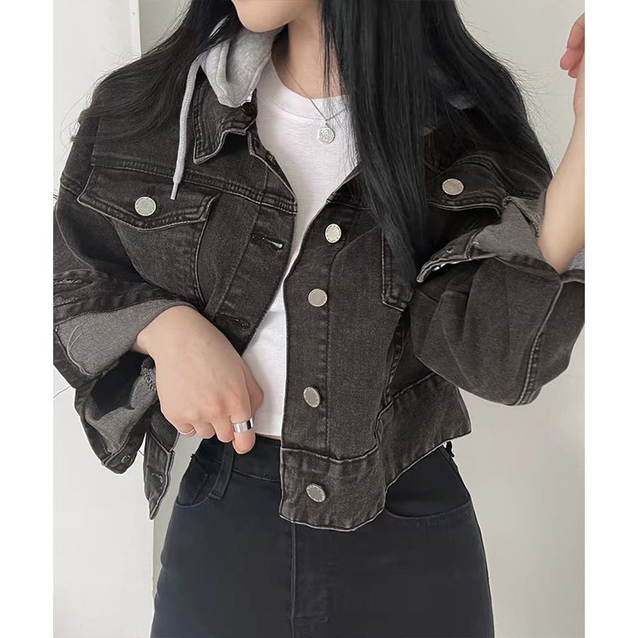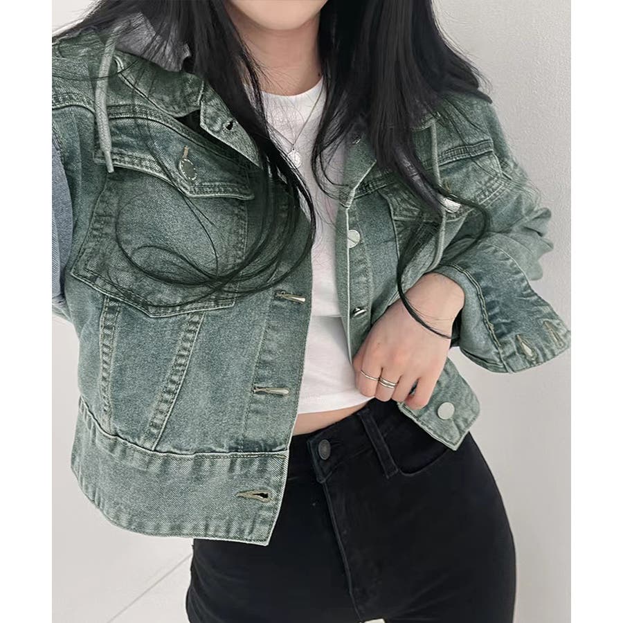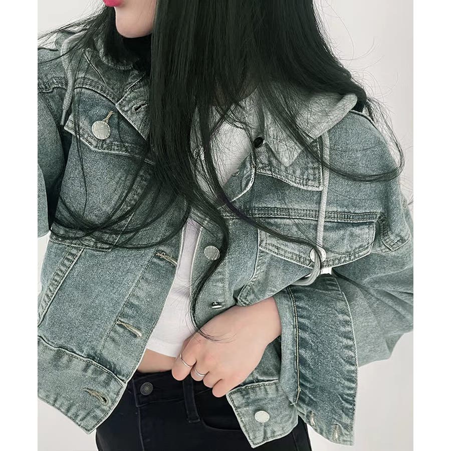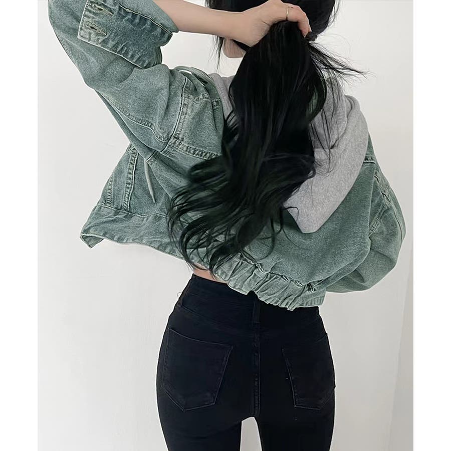 クロップドフード付きデニムジャケット Gジャン ジャンパー