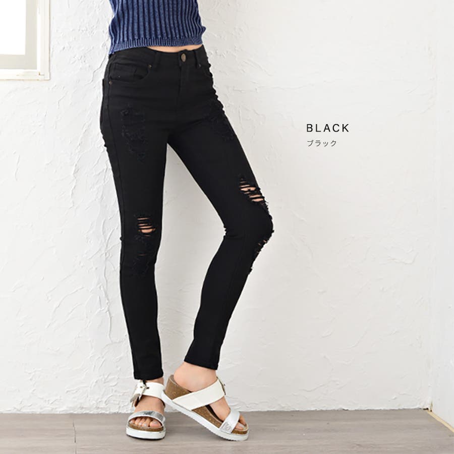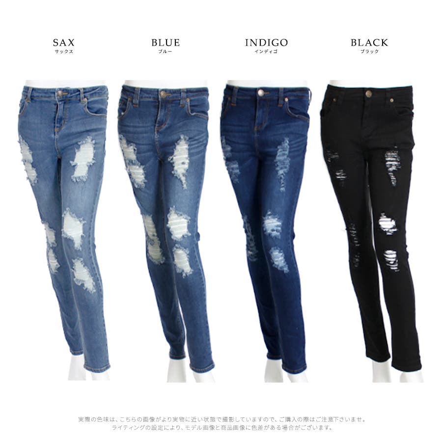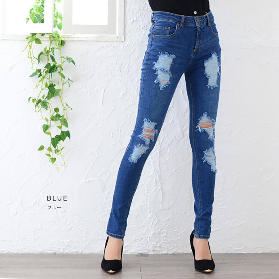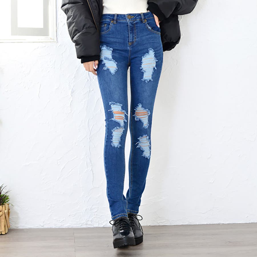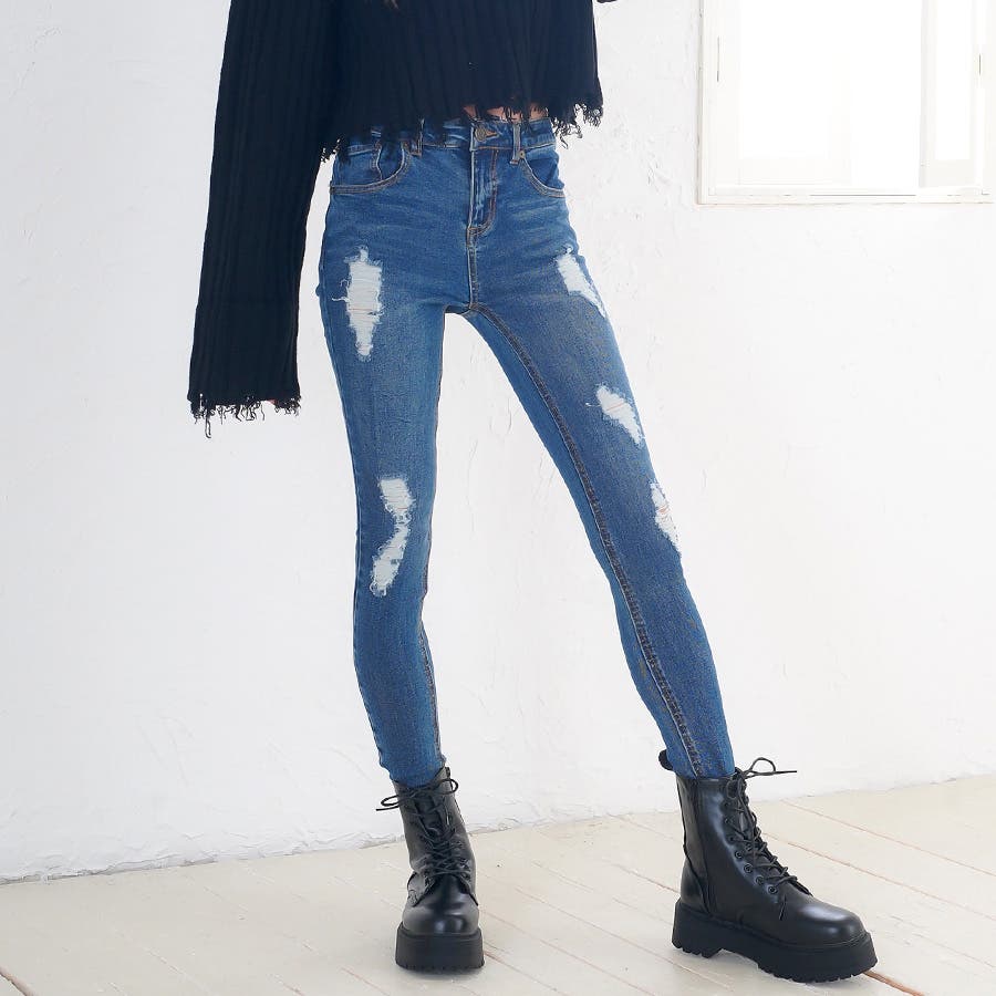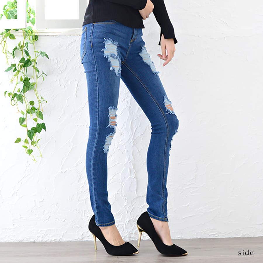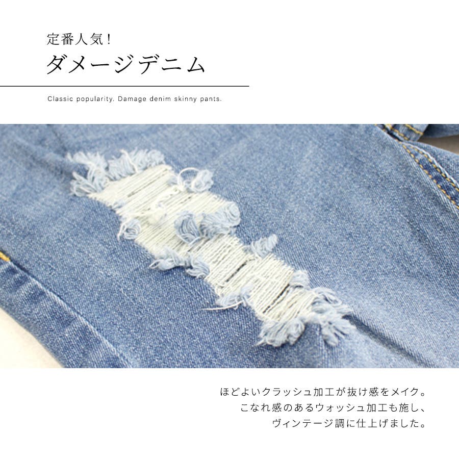 コーデにエッジを効かせる、ストレッチダメージデニムスキニーパンツ ロングパンツ …