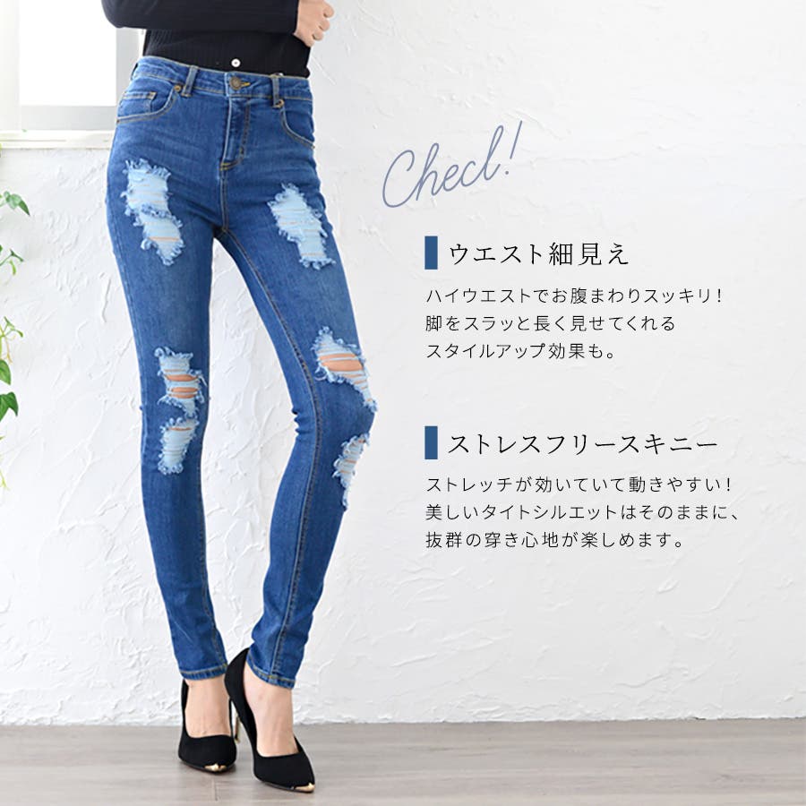 大人女子のためのダメージスキニーデニム