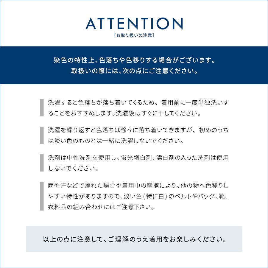 ※染料の特性上、特有のニオイが残る場合があります。洗濯や風通しのよい所での乾燥、密閉されない環境での保管等で徐々に軽減されていきますが、ニオイの感じ方には個人差がありますので、あらかじめご了承ください。