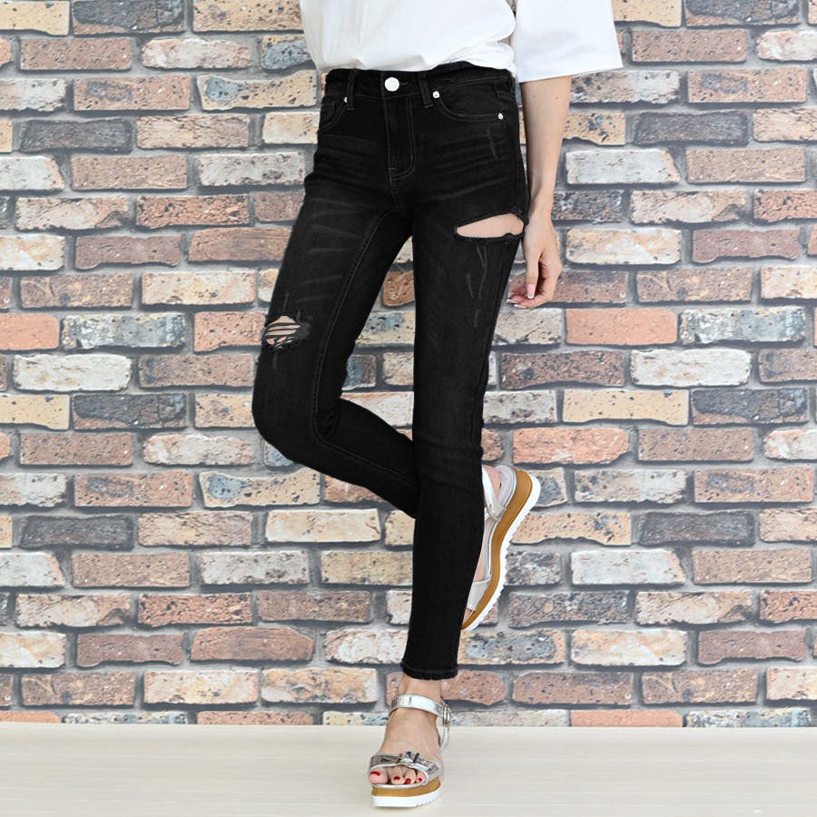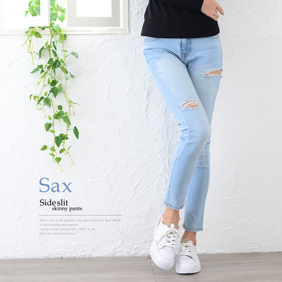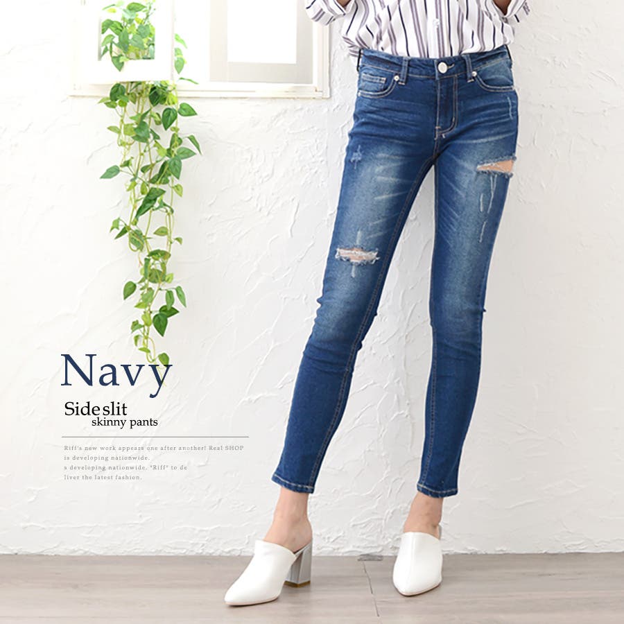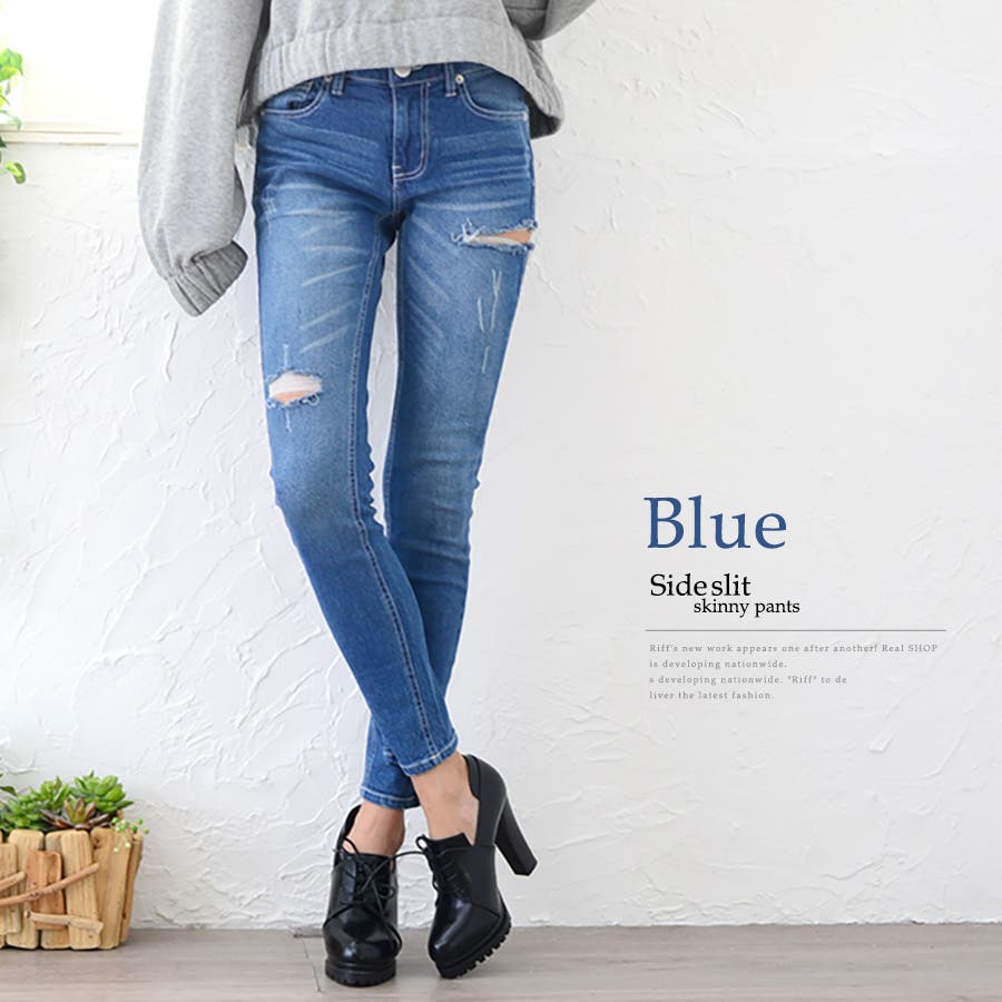 サイドスリットスキニーパンツ クラッシュ ダメージ
