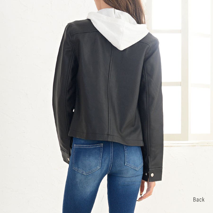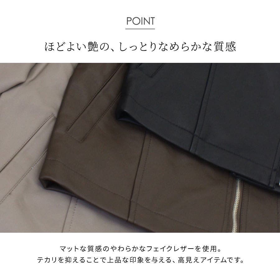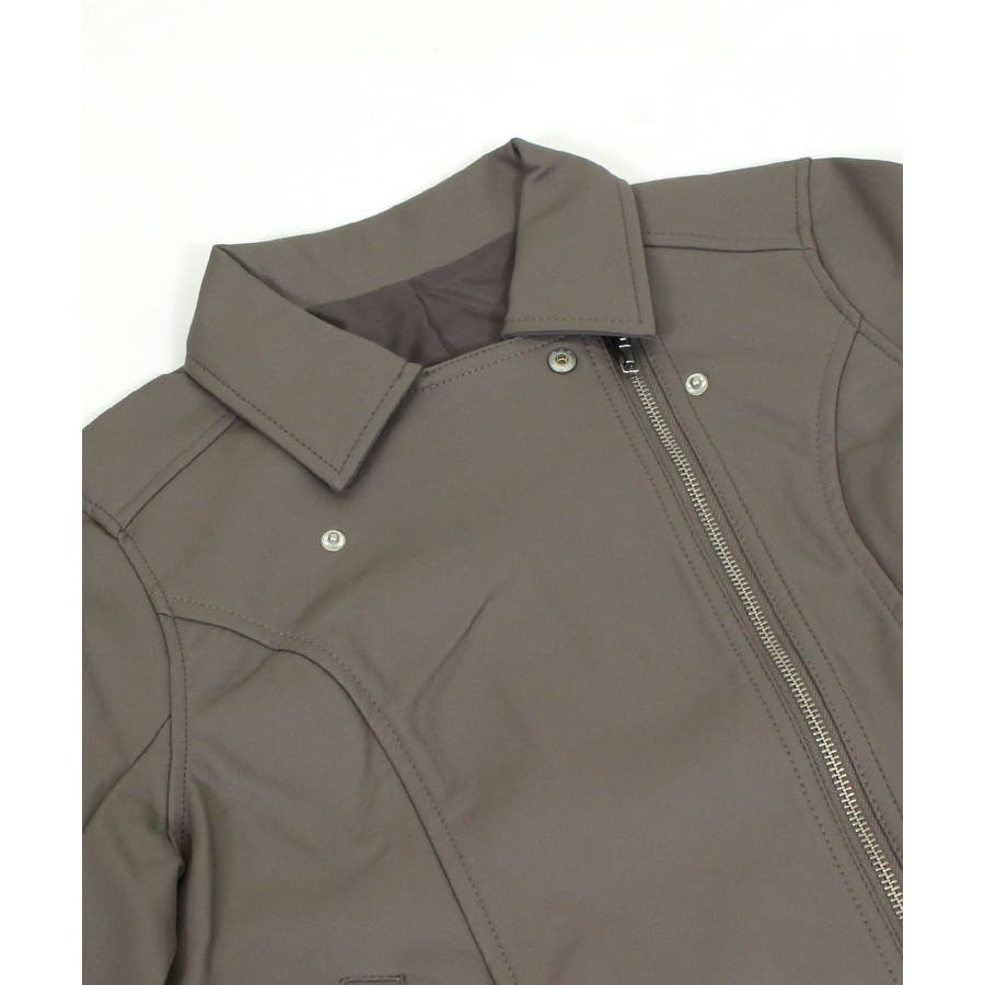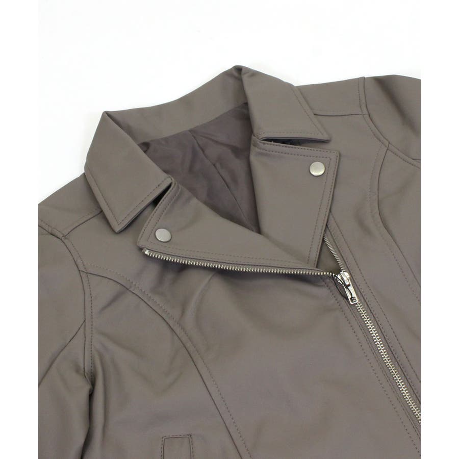 すっきりと無駄のない人気のダブルライダース。ショート丈でスッキリとした着こなしをアシスト。自然とスタイルアップを演出します。合皮なのにリアルレザーのような質感。軽量で羽織りやすいのも魅力です。フェイクレザーなのでお手入れも楽チンで、デイリーに気兼ねなく使えます。定番デザインなのでカジュアルコーデはもちろん、ガーリー・フェミニン系の甘辛MIXスタイルにもピッタリです。