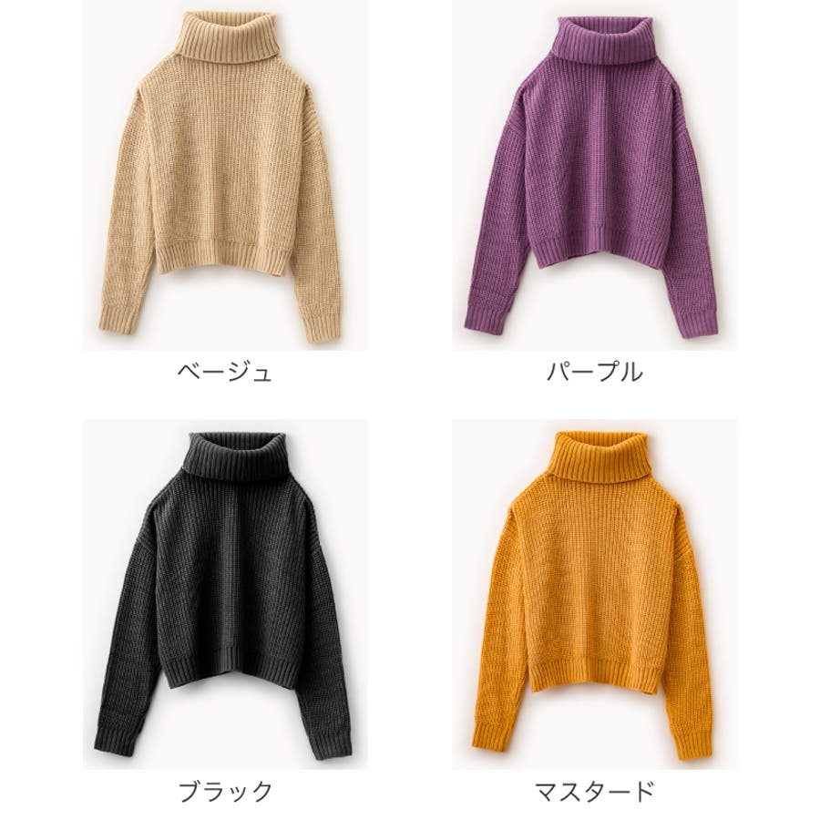 レディースファッション通販 レディース RIm.z リムズ トップス ニット セーター リブニット タートルネック ボリュームネック ロング袖 黒 紫 黄 肌色 秋 冬 韓国 オルチャン ガーリー かわいい パンツコーデ スカートコーデ シンプル