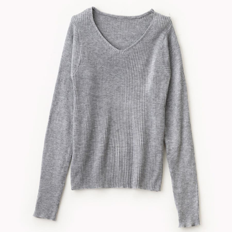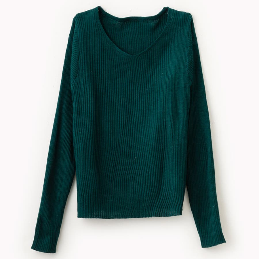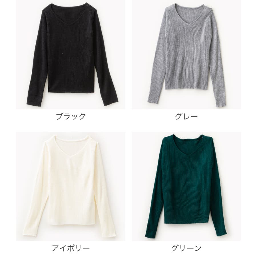 レディースファッション通販 レディース RIm.z リムズ トップス ニット セーター 長袖 リブニット 薄手ニット Vネック インナー プルオーバー 黒 灰 白 緑 ピンク 桃 黄 春 秋 冬 韓国 オルチャン ガーリー かわいい パンツコーデ スカートコーデ シンプル